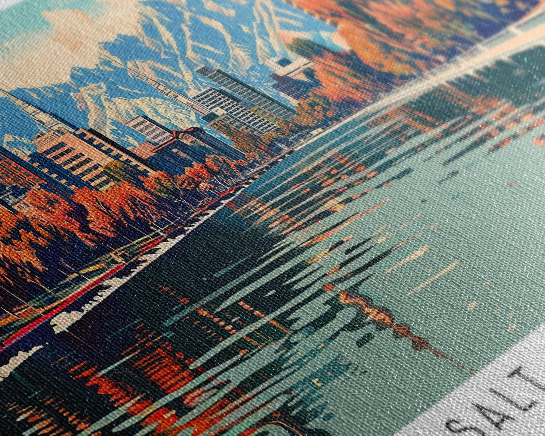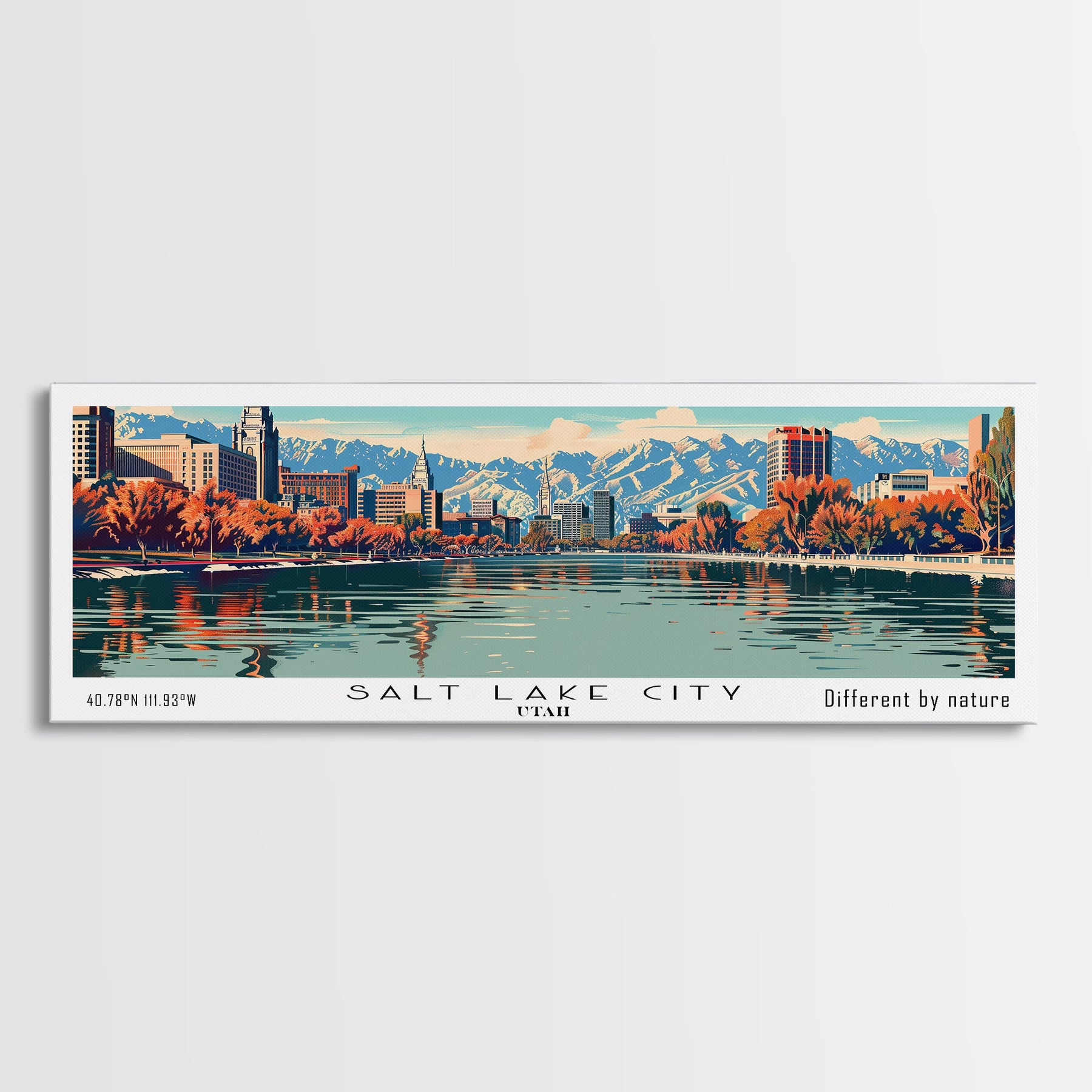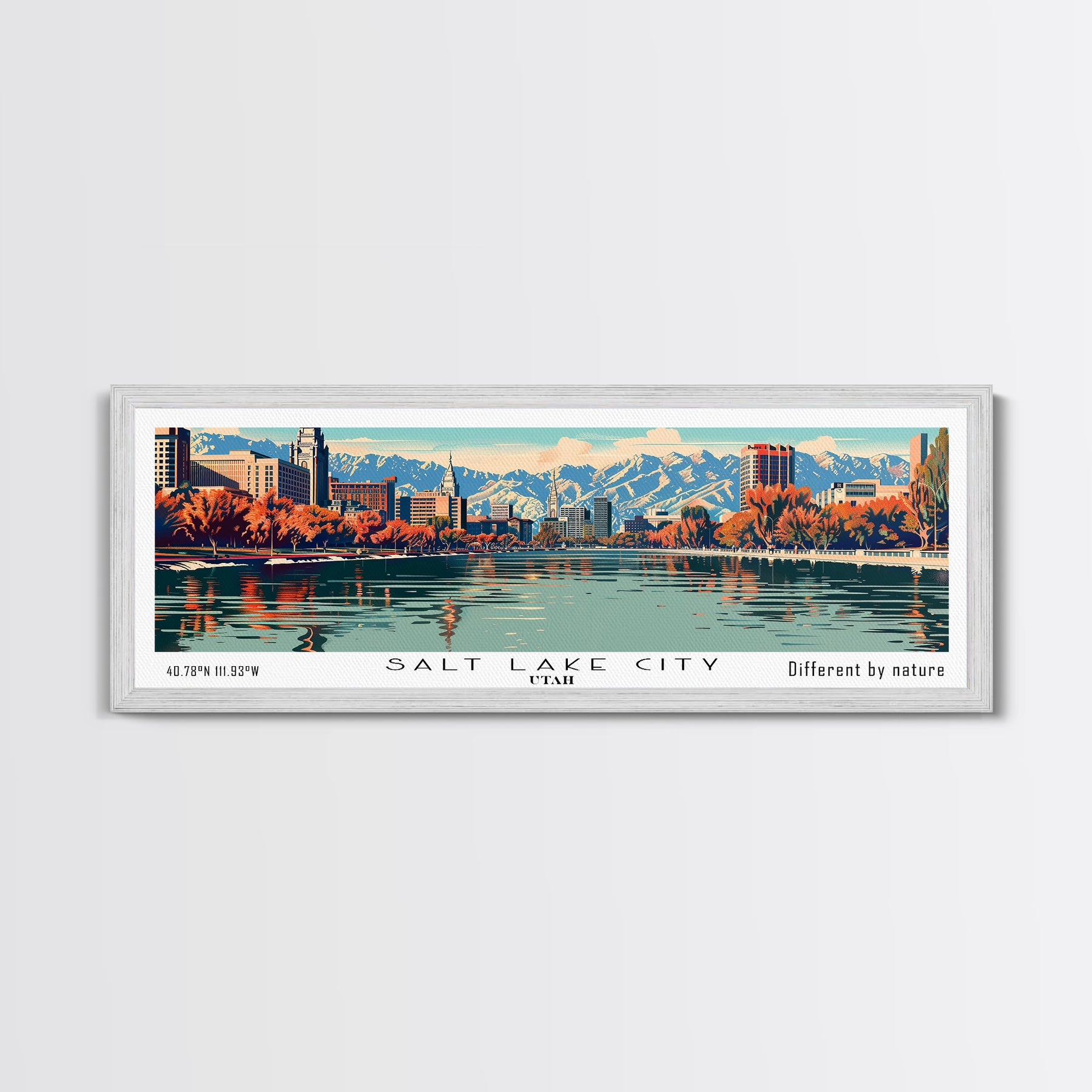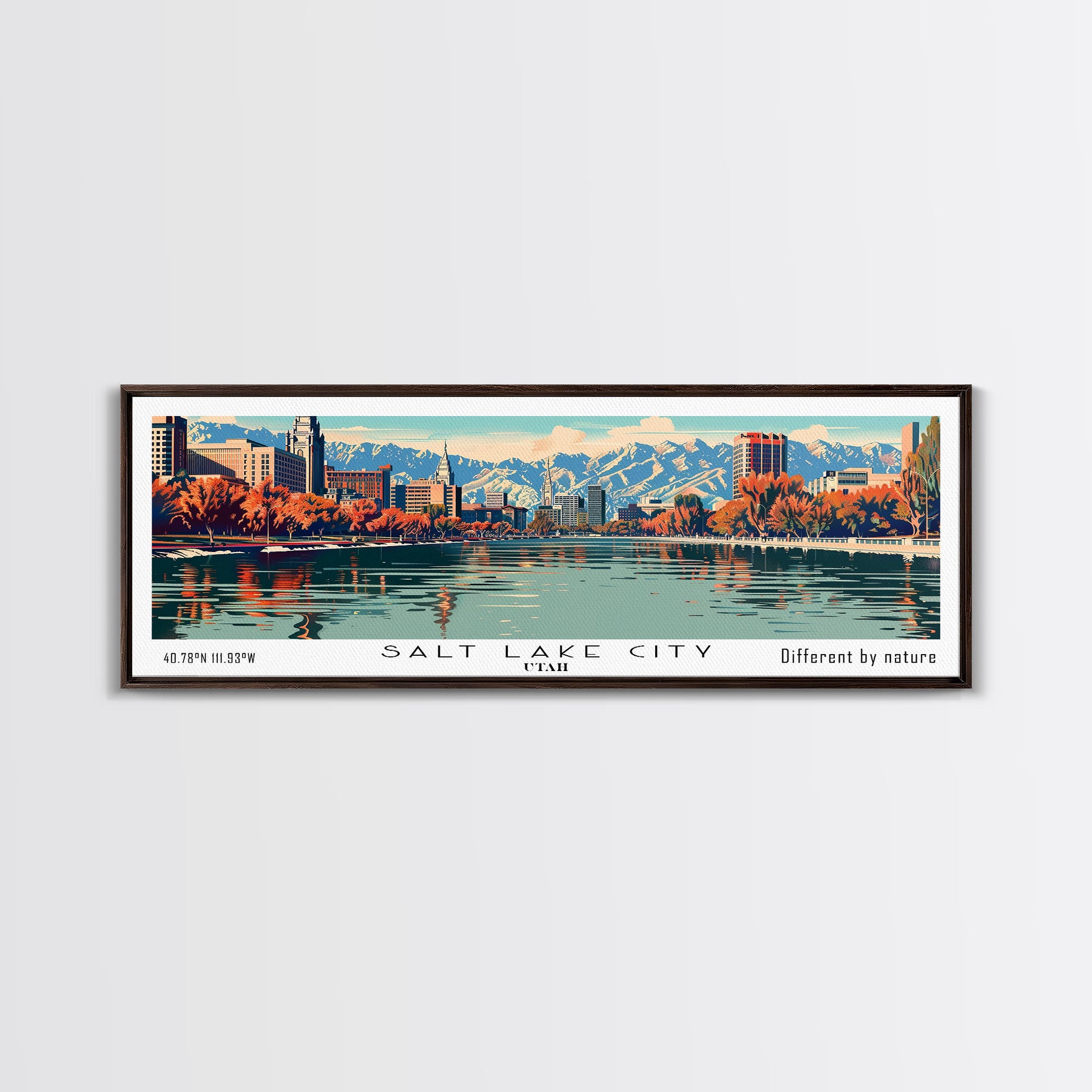 Salt Lake City Utah Panoramic Wall Art, Mid Century Modern Framed Canvas Print, Retro Pop Art Cityscape, Travel Poster, Living Room Decor