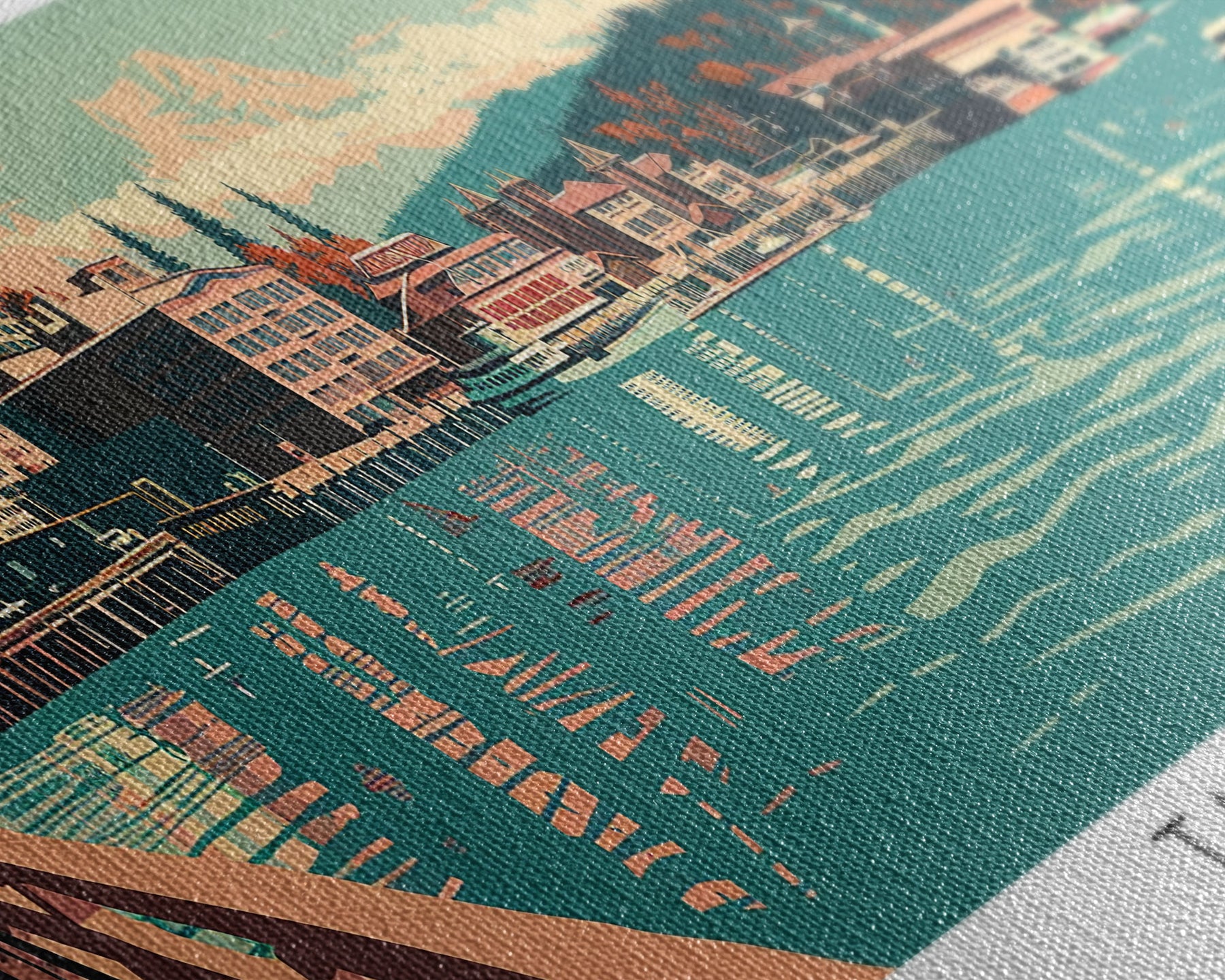 Most of our canvases are made in the USA, with the exception of canvases ordered with the light oak unstained frames, and any large canvases (24x48, 30x60, 16x48 and 20x60) ordered WITH a frame. These are temporarily made in and shipped from Europe, while we try to find a more consistent supplier in the USA.