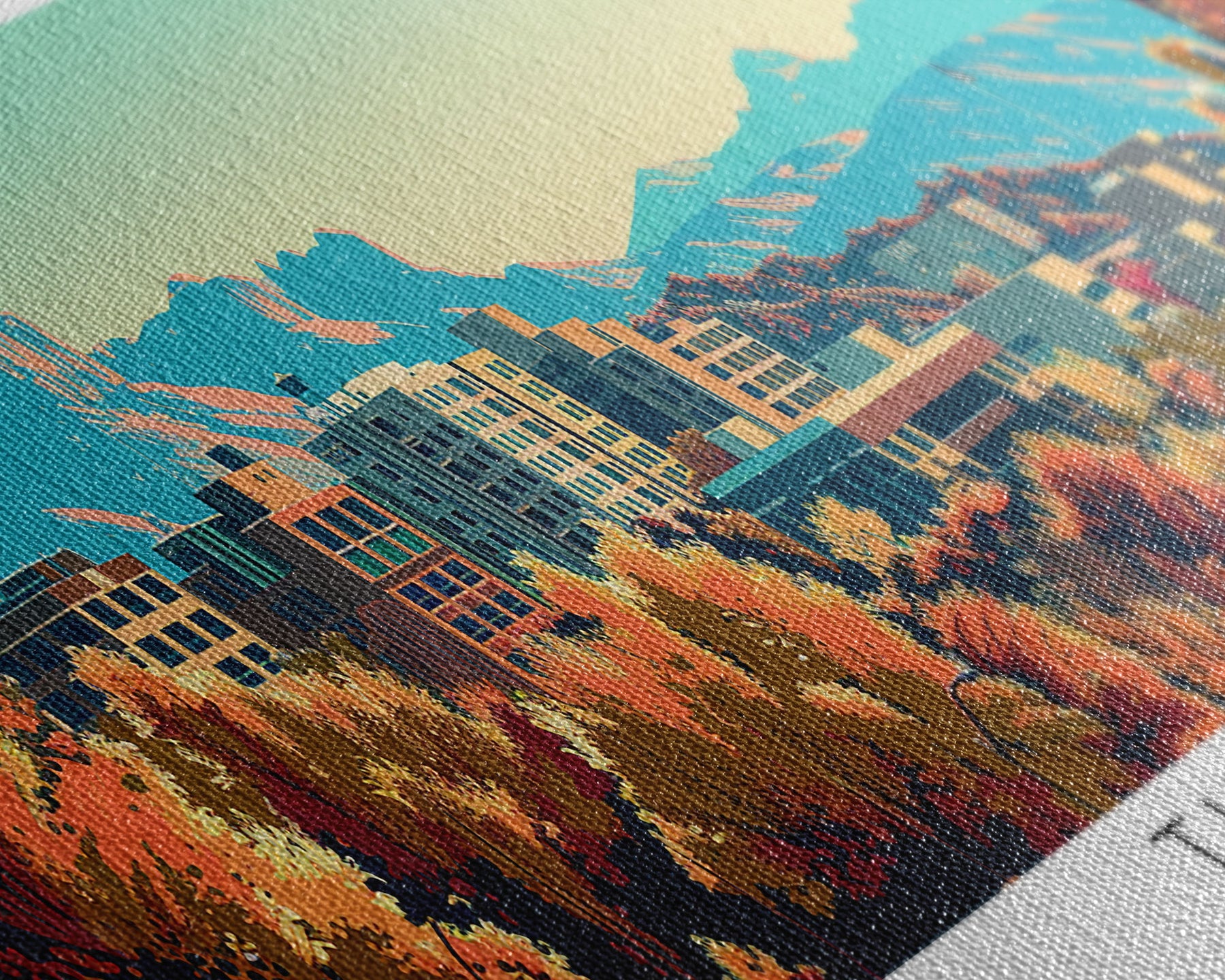 Tucson Arizona Panoramic Painting, Mid Century Modern Framed Canvas Print, Retro Pop Art Travel Poster, Cityscape, Home Decor, Office Wall Art