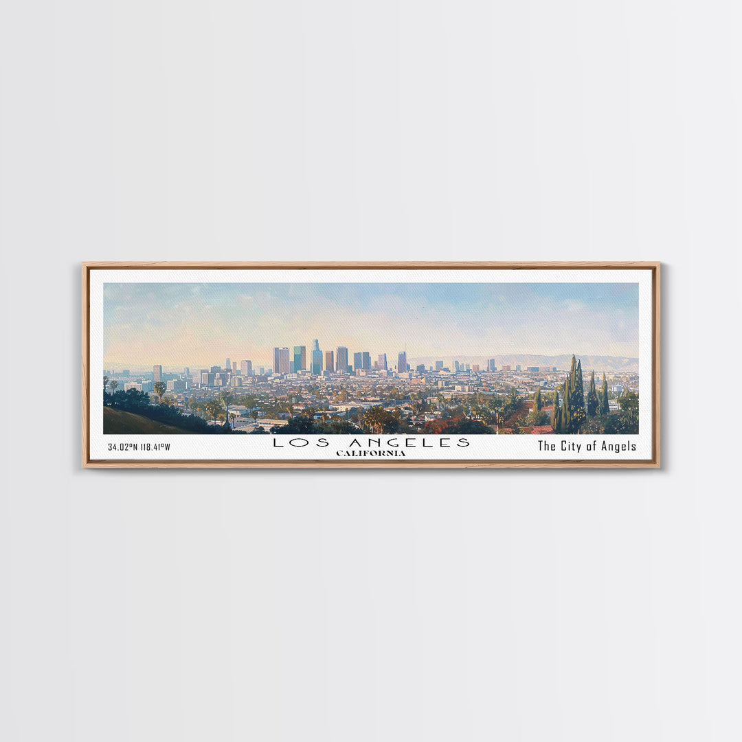 Los Angeles California Panoramic Cityscape Wall Art, Watercolor Framed Canvas Print, Urban Painting for Living Room, Office Decor, Travel Poster