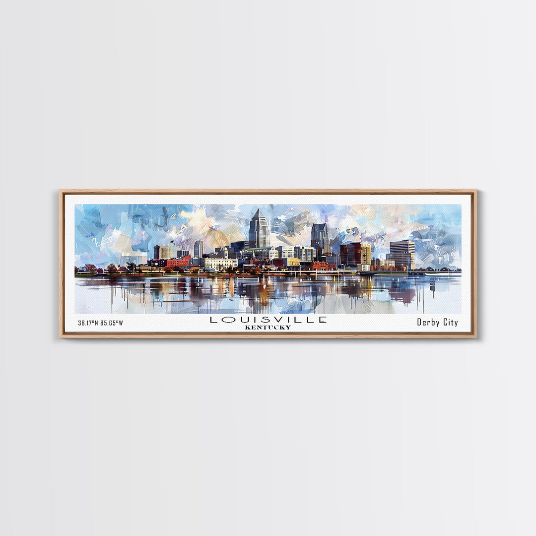 Louisville Kentucky Panoramic Watercolor Cityscape, Framed Canvas Print for Living Room, Office Wall Art, Urban Decor, Travel Poster