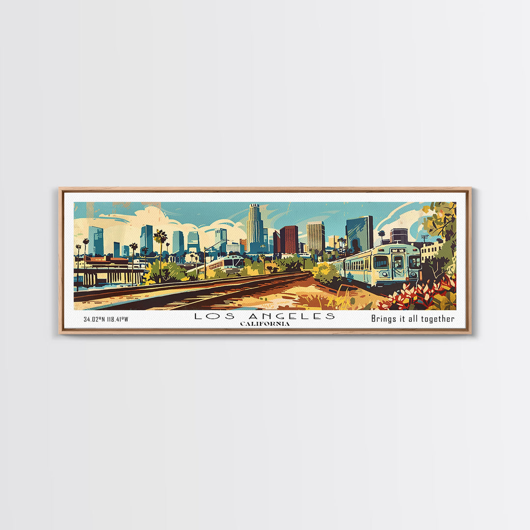 Los Angeles California Panoramic Wall Art Framed Canvas Print, Travel Poster, Mid Century Modern Art, Pop Art Style, Home Decor, Living Room Art