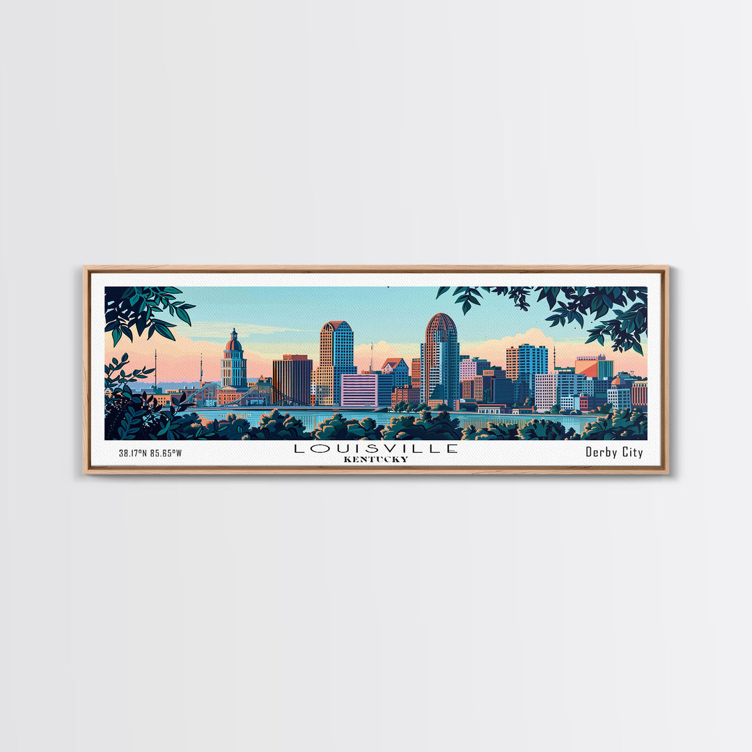 Louisville Kentucky Panoramic Wall Art, Mid Century Modern Framed Canvas Print, Retro Pop Art Travel Poster, Home Decor