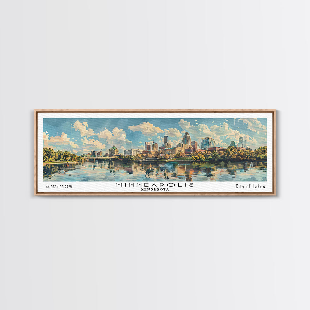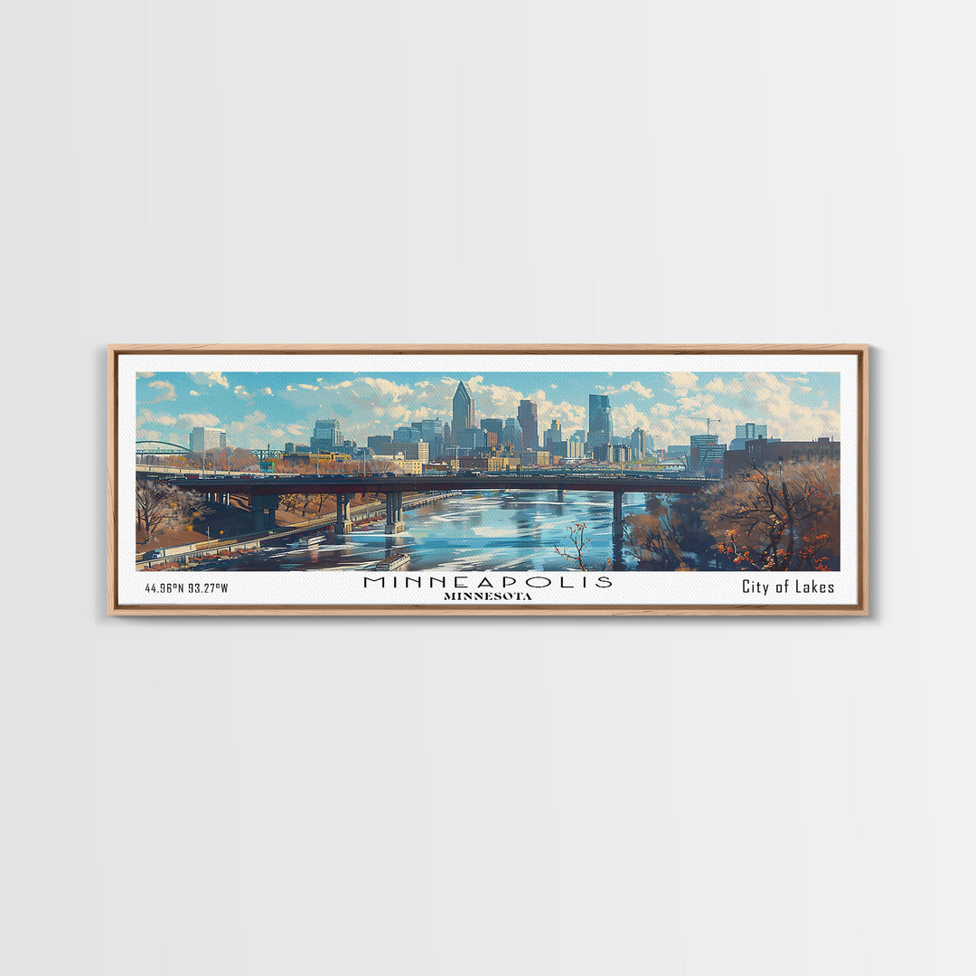 Minneapolis Minnesota Panoramic Wall Art Framed Canvas Print, Travel Poster, Mid Century Modern Art, Pop Art Style, Home Decor, Office Art