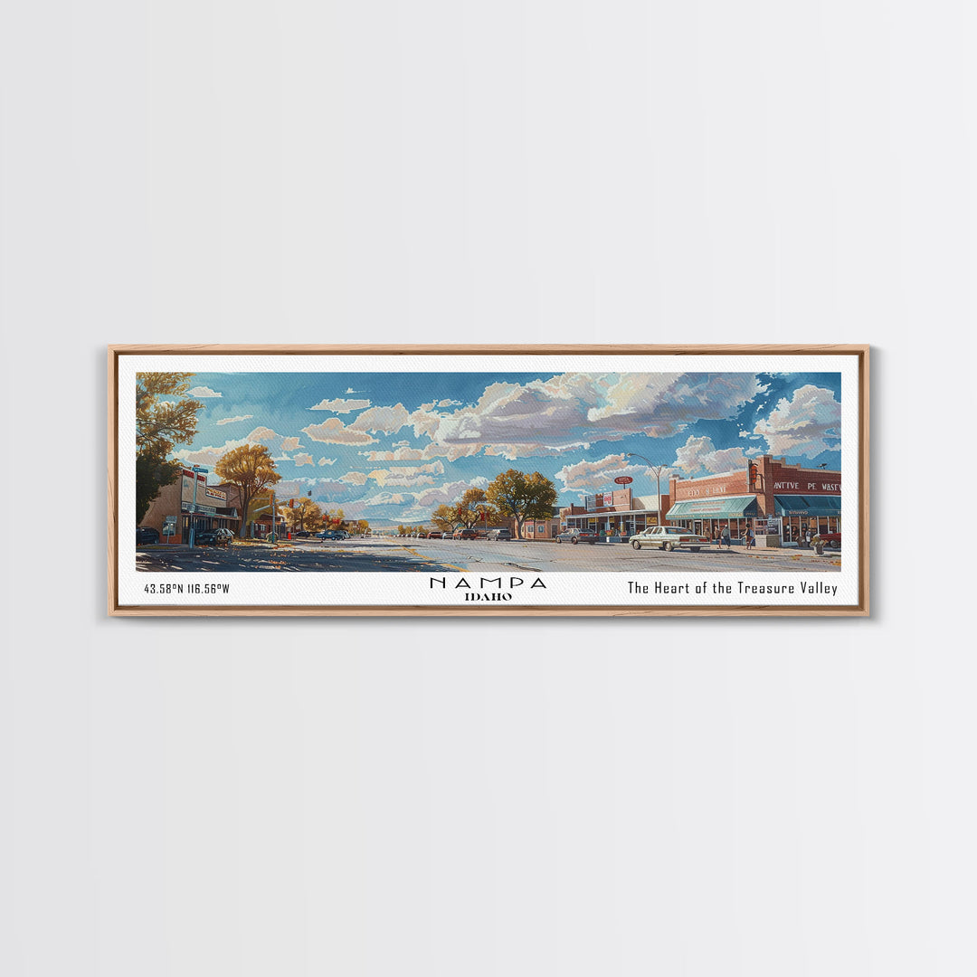 Nampa Idaho Panoramic Framed Canvas Print, Beautiful Watercolor Painting, Office Wall Art, Travel Poster, Home Decor, City Art
