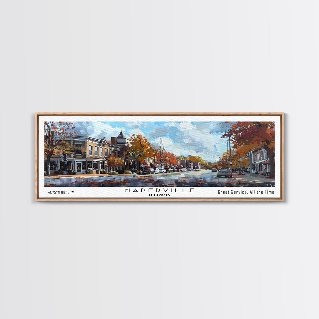 Naperville Illinois Panoramic Framed Canvas Print, Watercolor Cityscape, Office Wall Art, Travel Poster, Living Room Decor, City Art