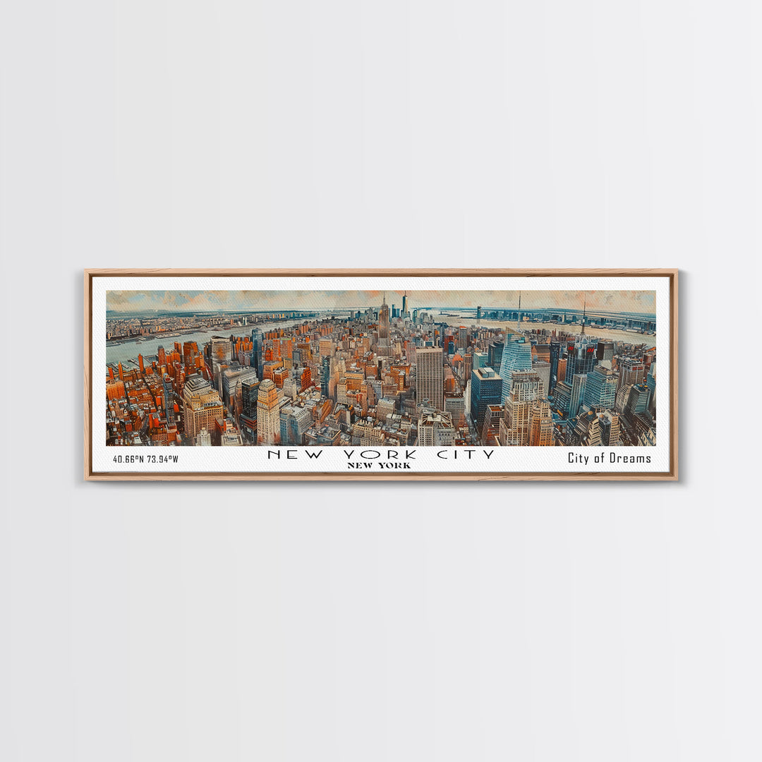 New York New York Panoramic Framed Canvas Print, Watercolor Painting of Cityscape, Home Decor, Travel Poster, Gift Idea for Urban Art Lovers