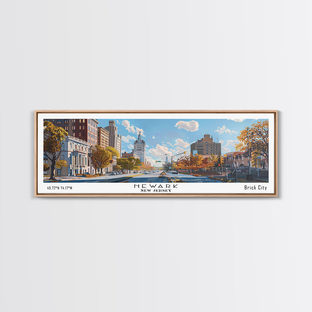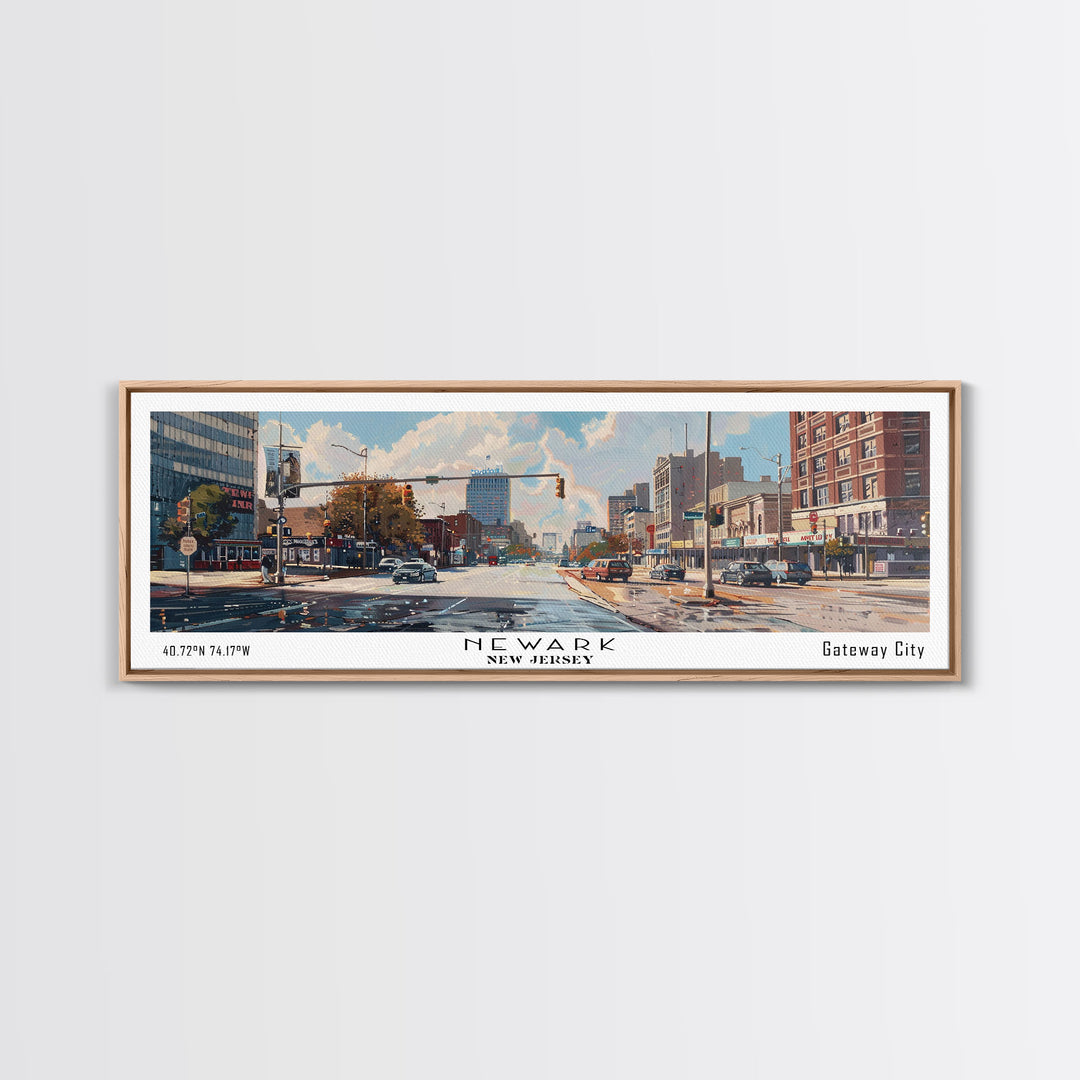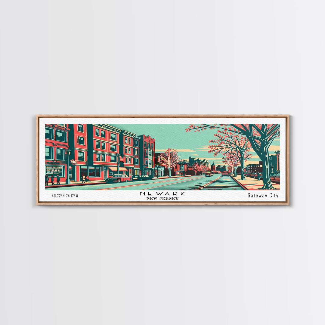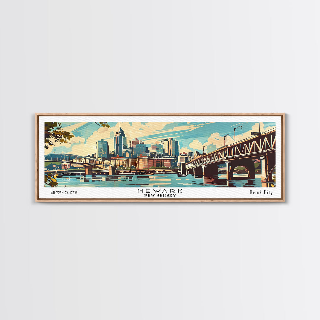 Newark New Jersey Panoramic Wall Art, Mid Century Modern Framed Canvas Print, Retro Pop Art Travel Poster, Office Decor, Gift Idea