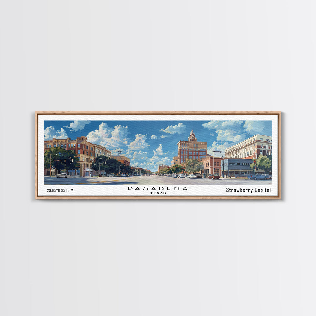 Pasadena Texas Panoramic Painting, Framed Canvas Print, Beautiful Cityscape Watercolor Art, Travel Poster for Home Decor, Unique Gift Idea