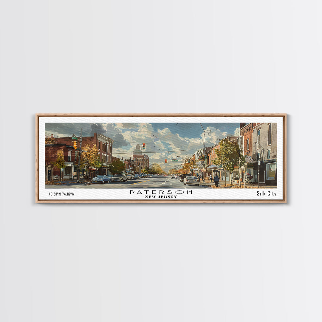 Paterson New Jersey Panoramic Wall Art, Mid Century Modern Framed Canvas Print, Retro Pop Art Travel Poster, City Art, Office Wall Decor, Living Room Art