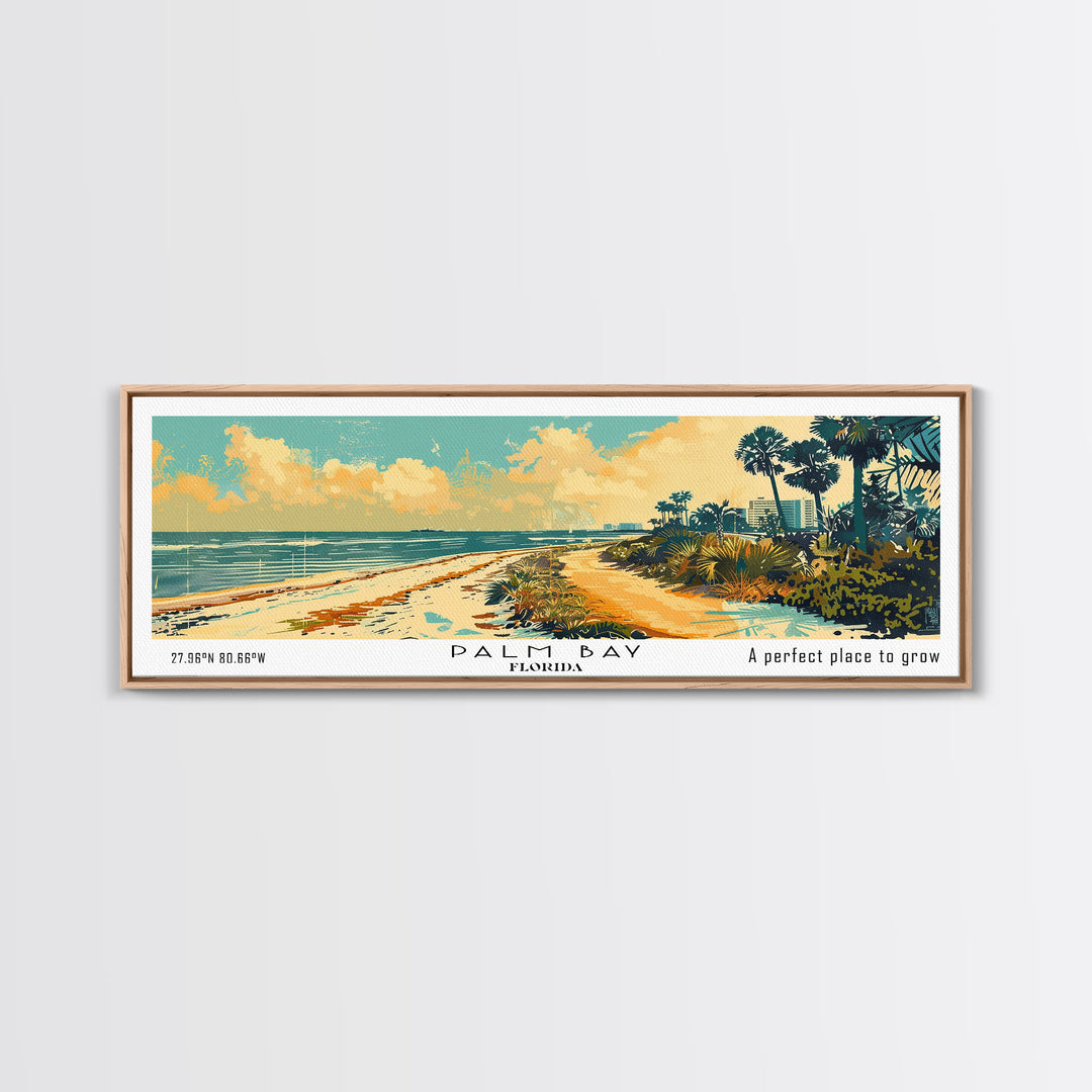 Palm Bay Florida Panoramic Wall Art, Mid Century Modern Framed Canvas Print, Retro Pop Art Travel Poster, City Art, Office Wall Decor, Living Room Art
