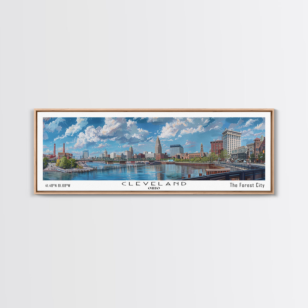 Cleveland Ohio Panoramic Wall Art Framed Canvas Print, Mid Century Modern Art, Pop Art Style, Travel Poster, Home Decor, Retro Style