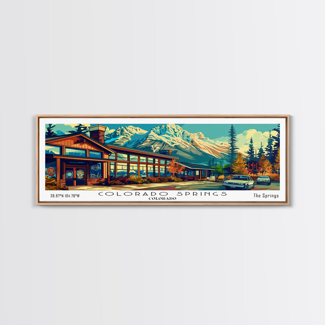 Colorado Springs Colorado Panoramic Wall Art, Retro Pop Art Framed Canvas Print, Mid Century Modern Travel Poster, Living Room Decor, Wall Hanging, Office Art