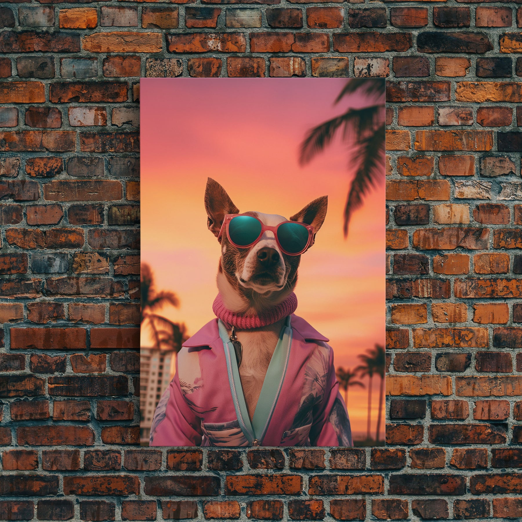 Chihuahua Wall Print, Dog Print, Dog Sunglasses, Dog In Pink Tracksuit, Funny Art, Framed Wall Art, Framed Canvas, Wall Print, Wall Canvas