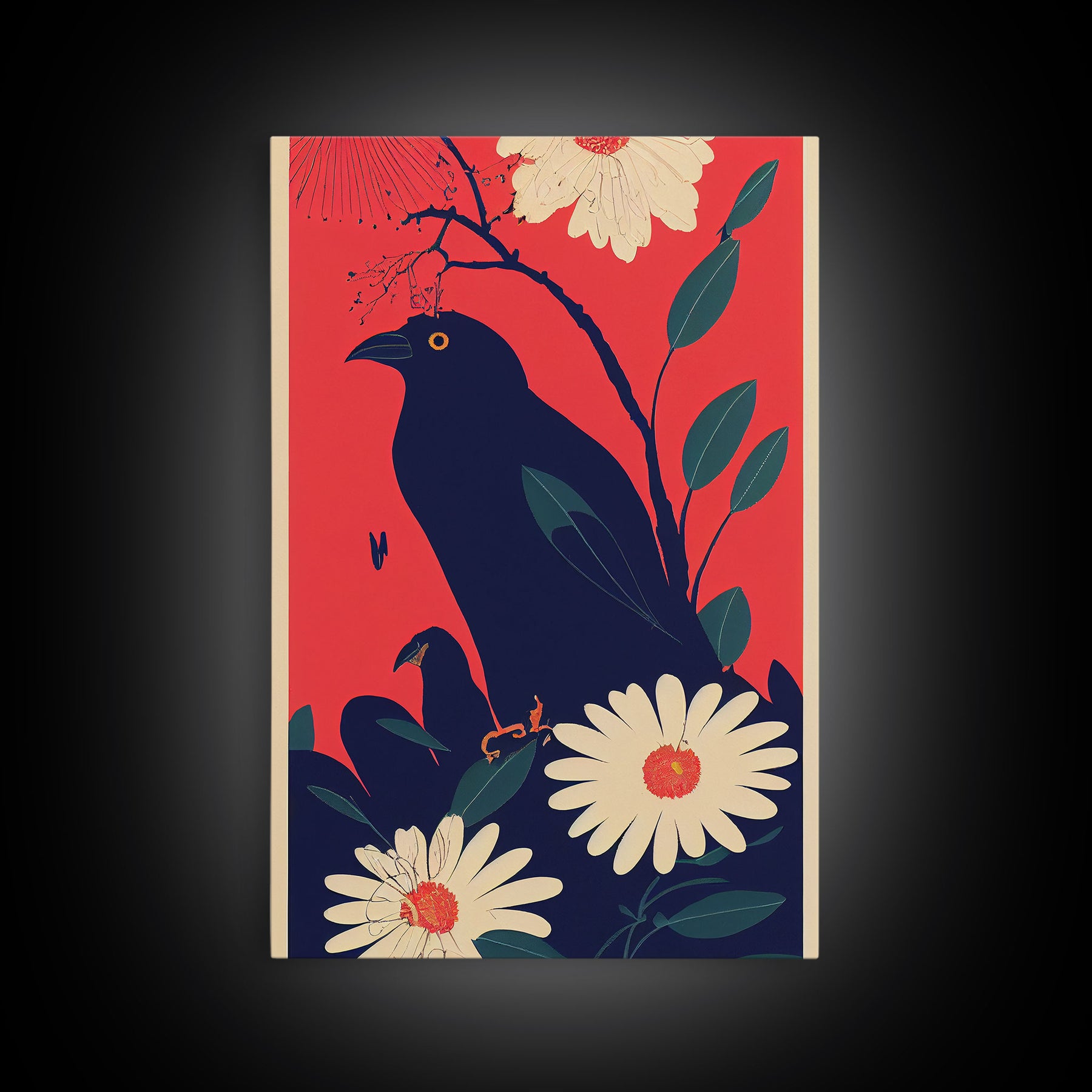 Crow Portrait, surrealist bird art, Framed Canvas Print, Ready To Hang Framed Wall Art, Living Room Decor