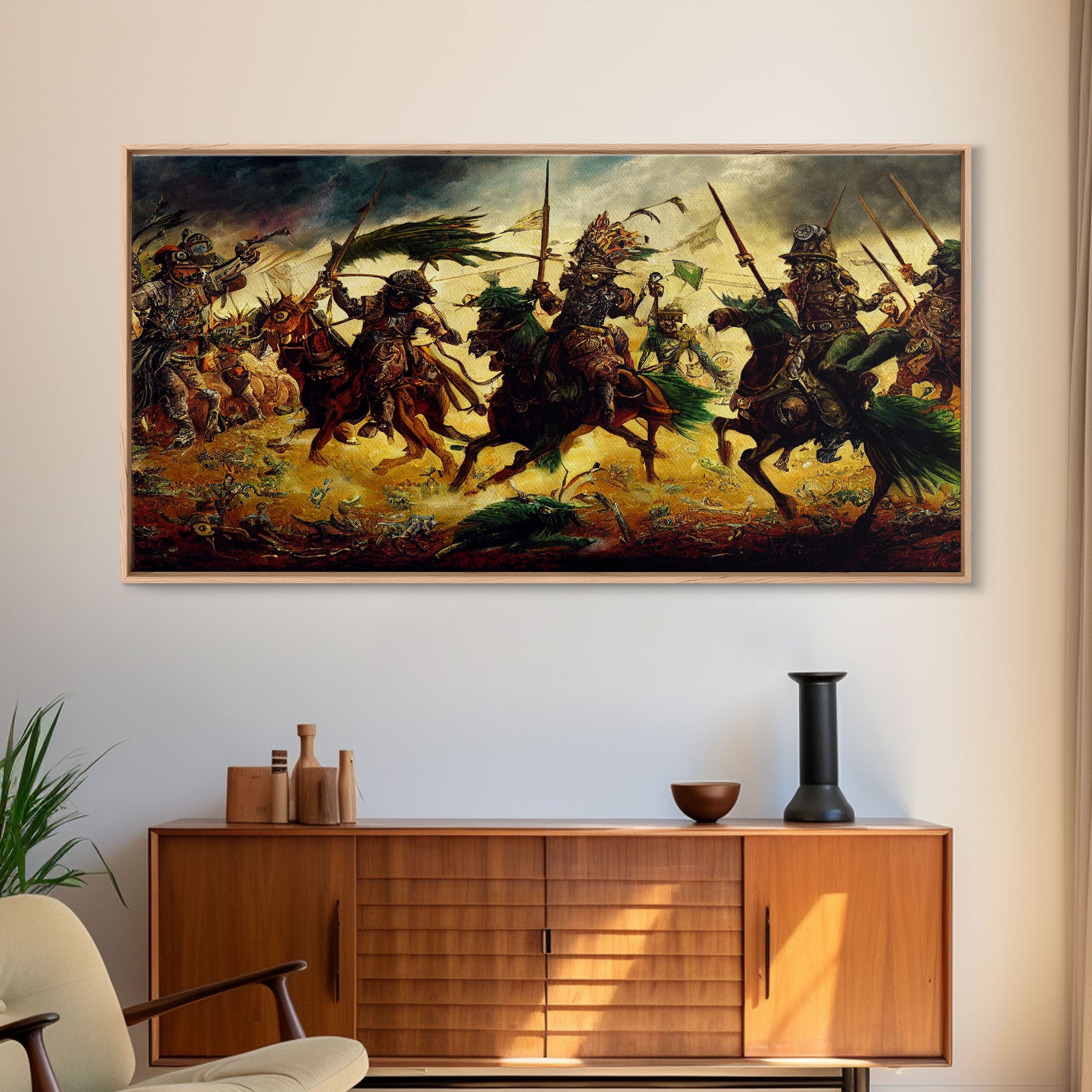 Depiction Of An Ancient Battle, Cool Office Mancave Decor, Wall Decor, Ready To Hang Framed Canvas Print, Oversize Wall Art
