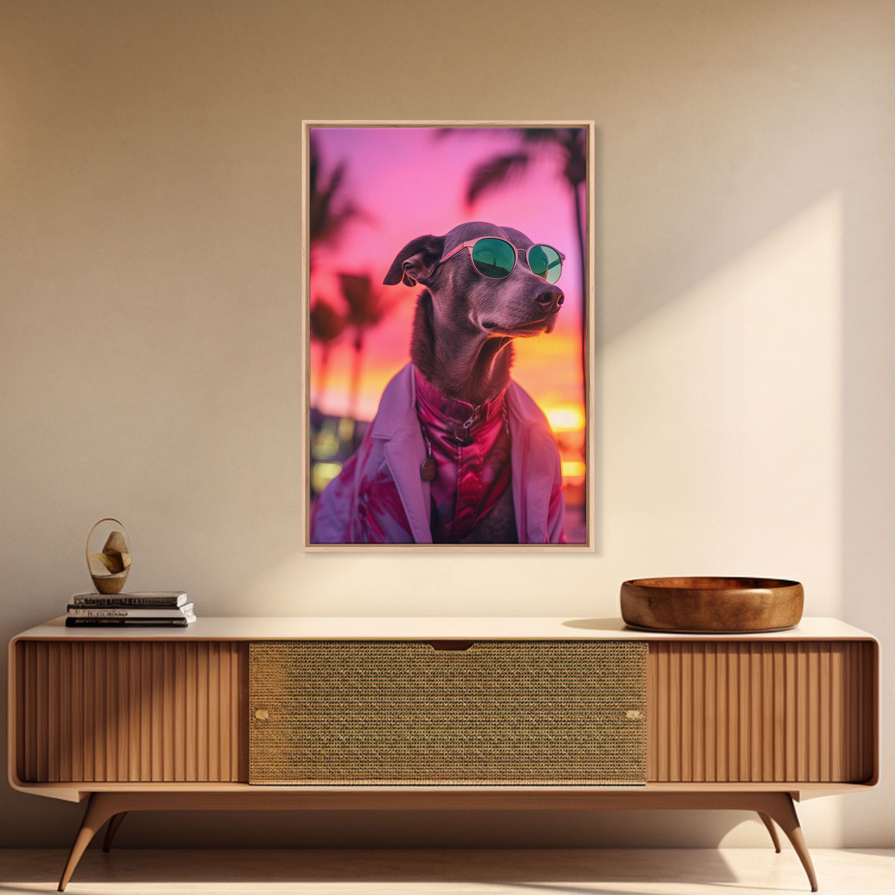 Greyhound Wall Print, Dog Wall Art, Dog Sunglasses, Dog In Pink Suit, Funny Art, Framed Wall Art, Framed Canvas, Wall Print, Wall Canvas