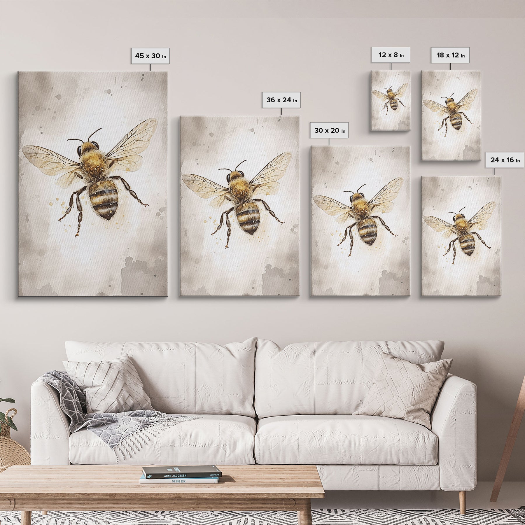 Honey Bee Wall Art, Insect Wall Decor, Nature Art, Bee Painting, Minimalist Wall Art, Wall Decor, Canvas Print, Wall Art, Framed Canvas Art