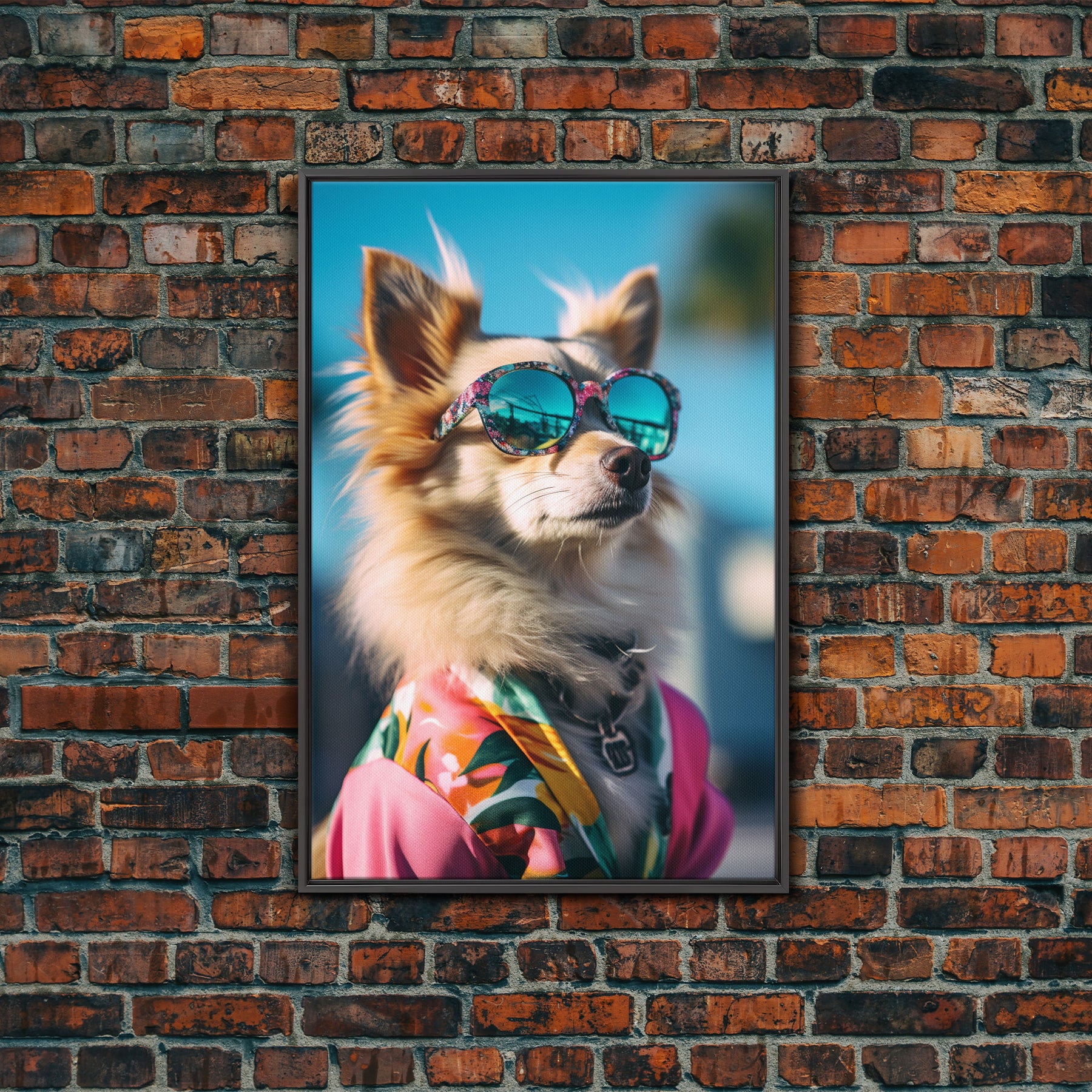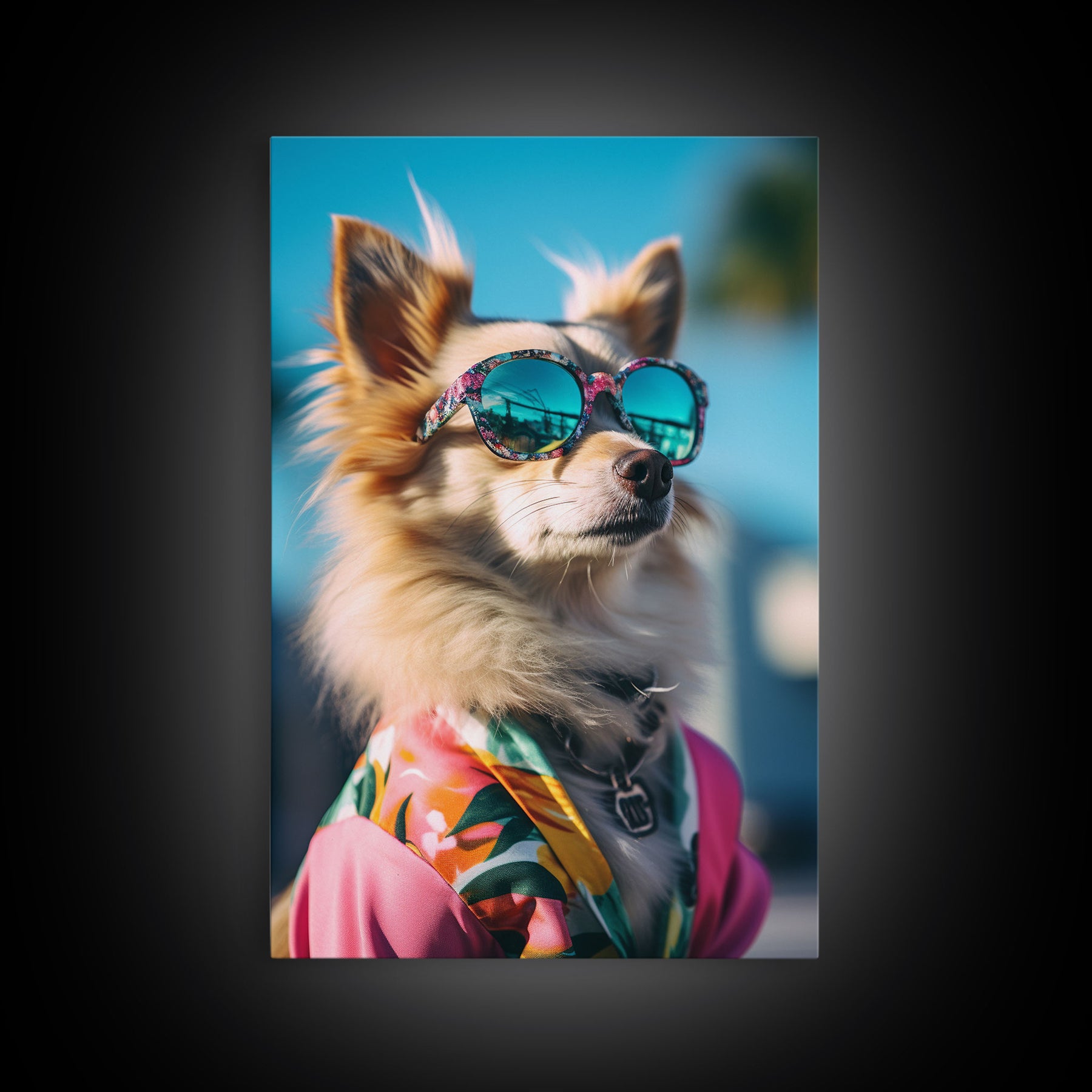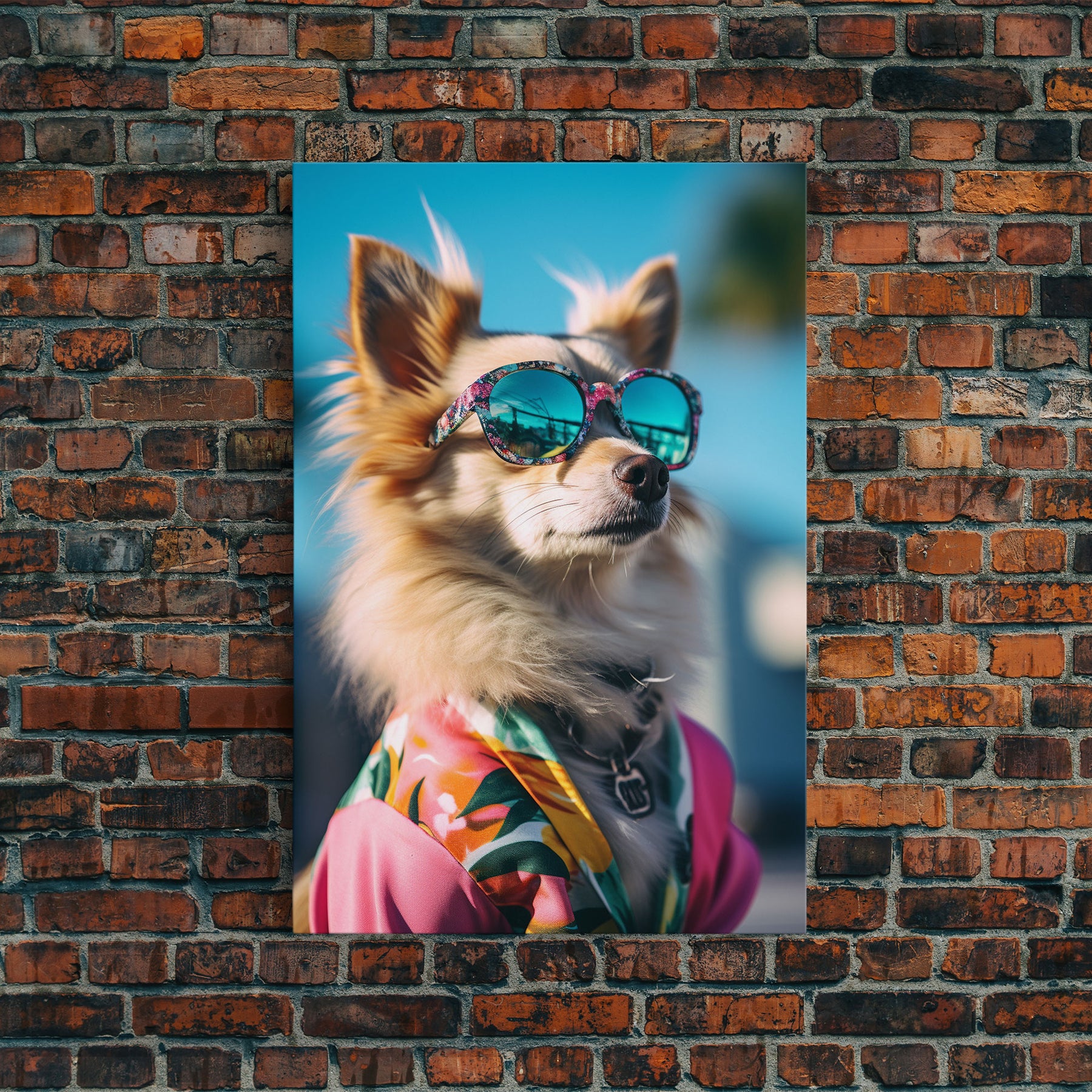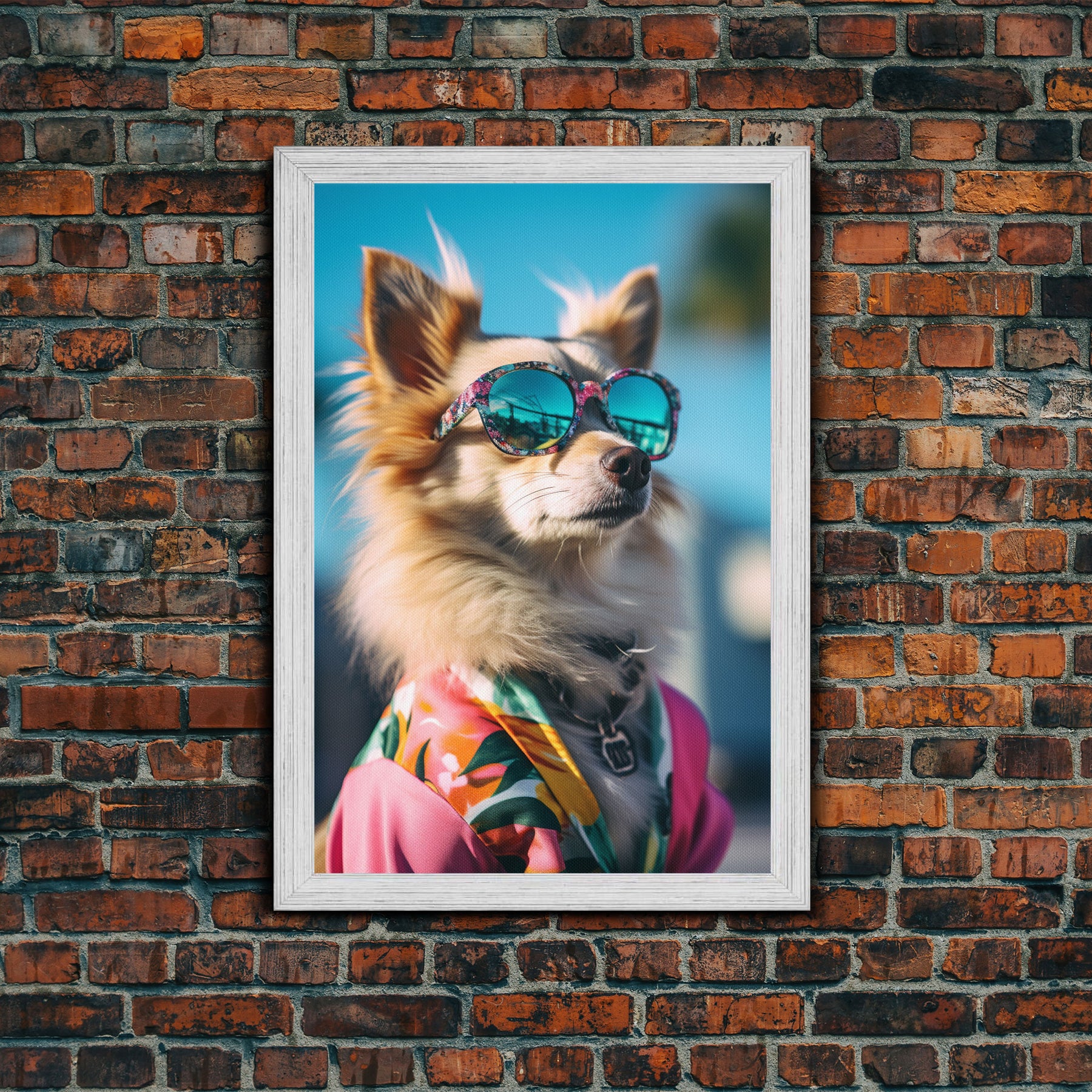Long Haired Chihuahua In Pink Suit Sunglasses Wall Print, Dog Portrait, Dog Print, Framed Wall Art, Framed Canvas, Wall Print, Wall Canvas