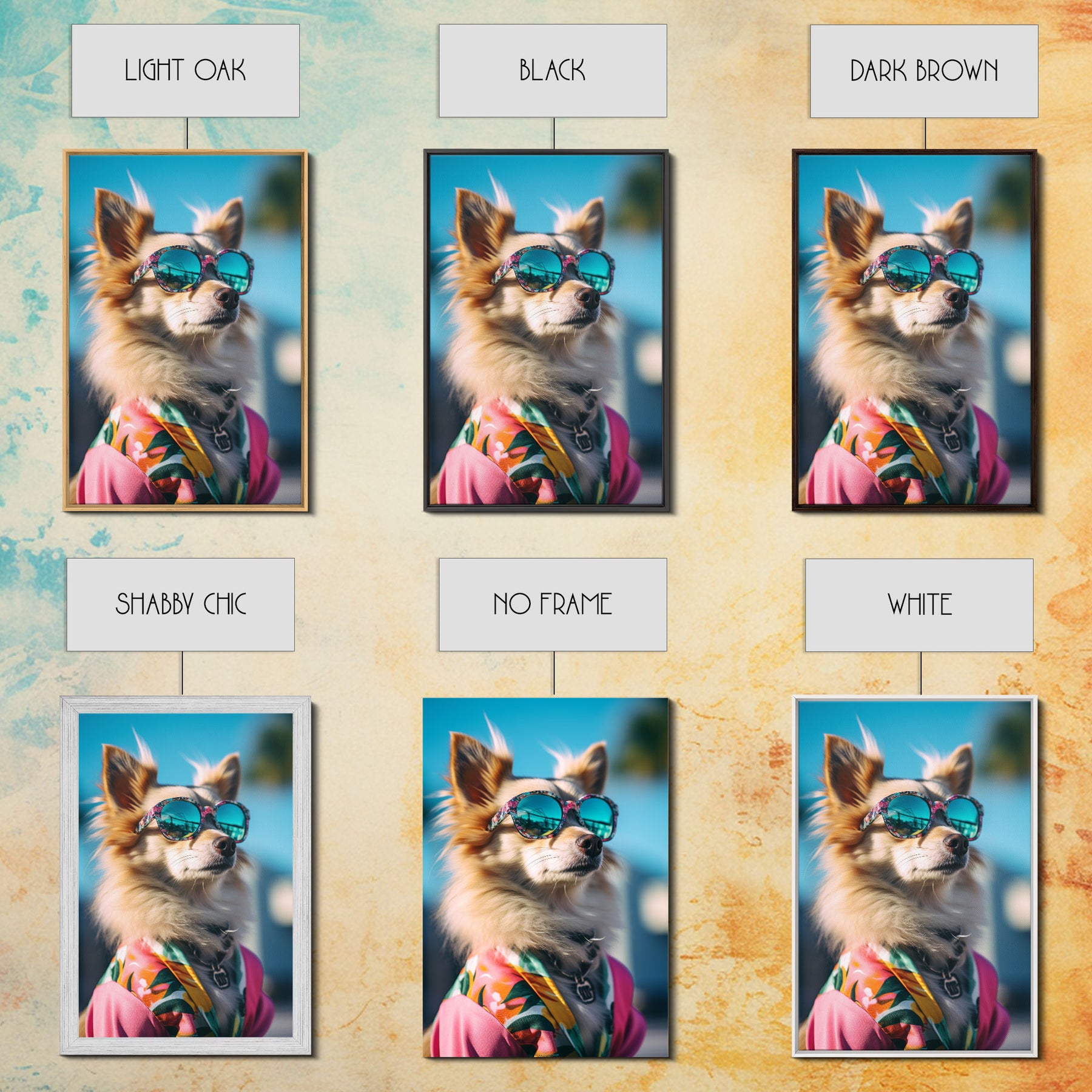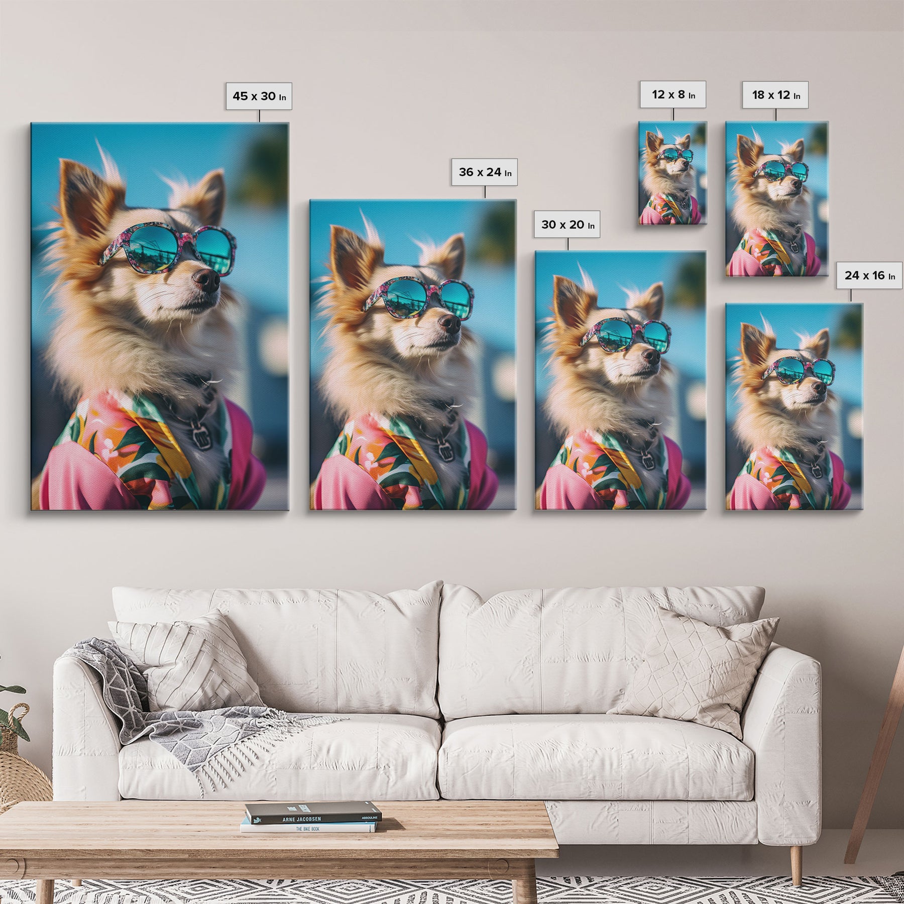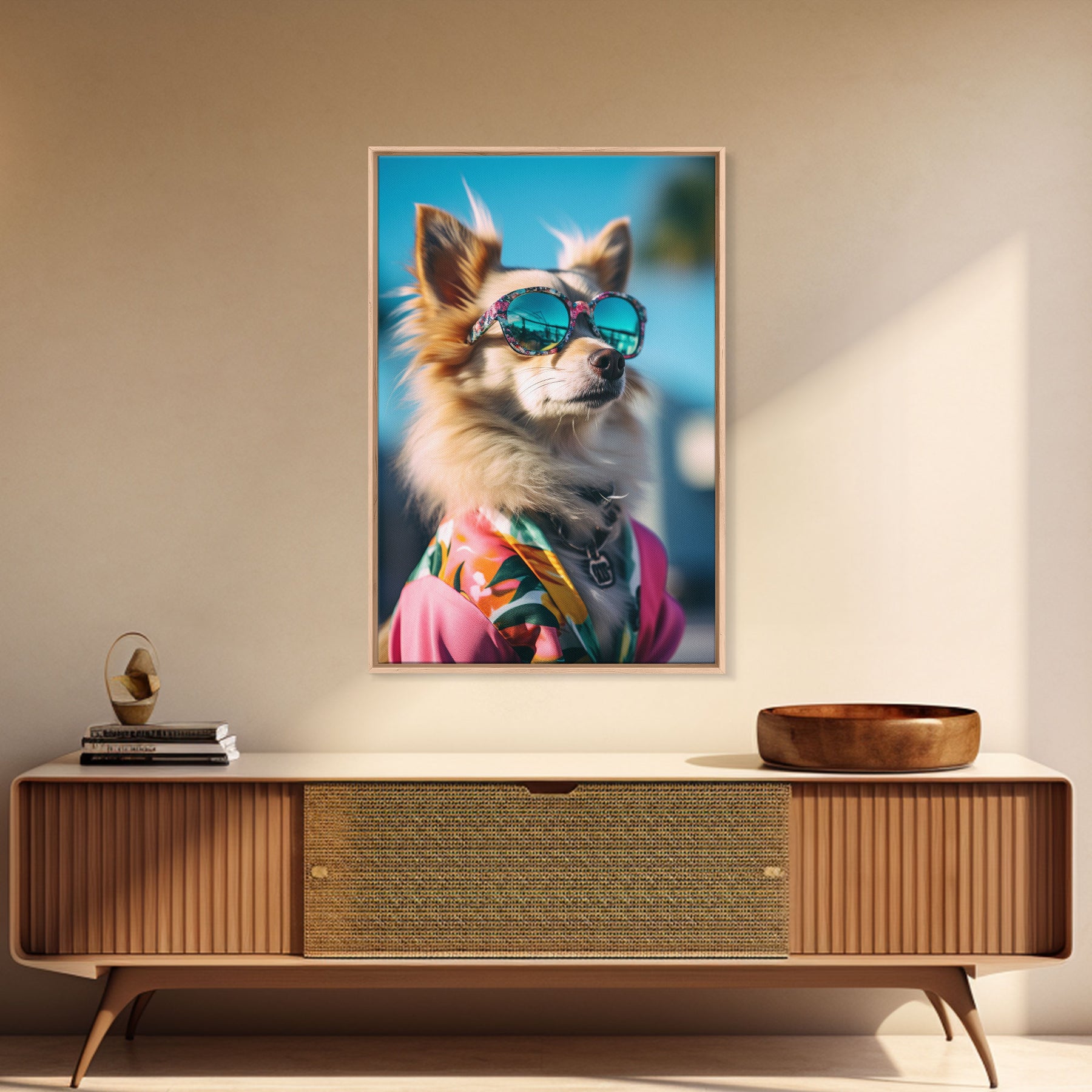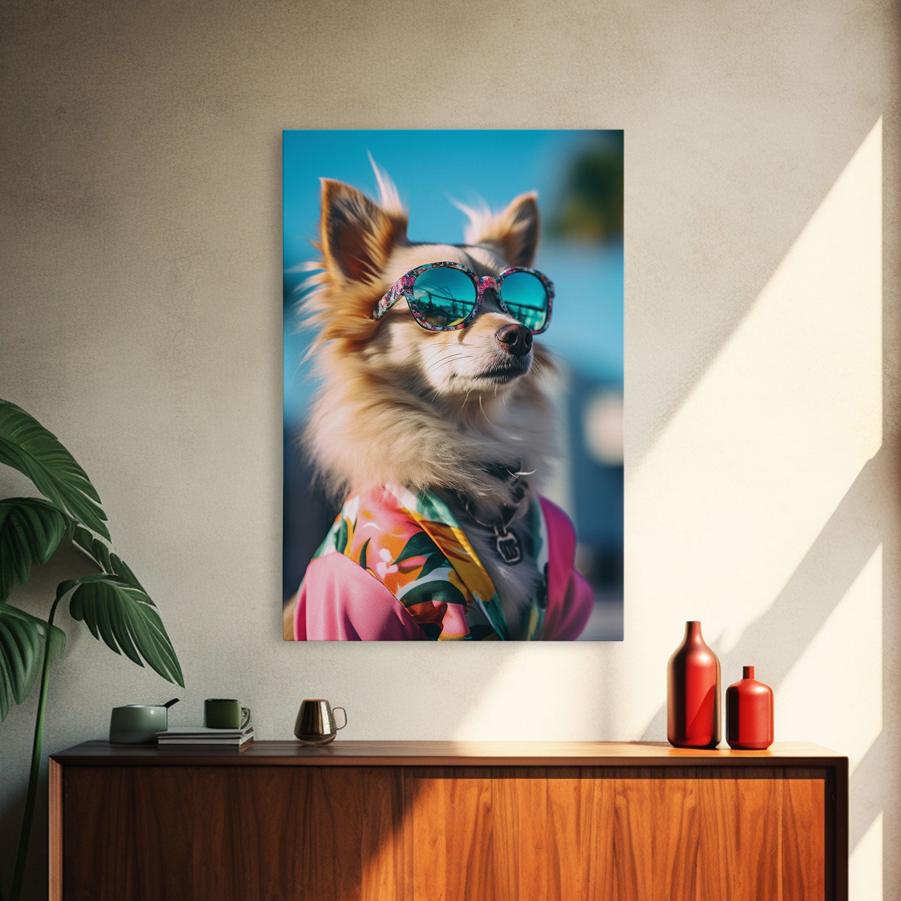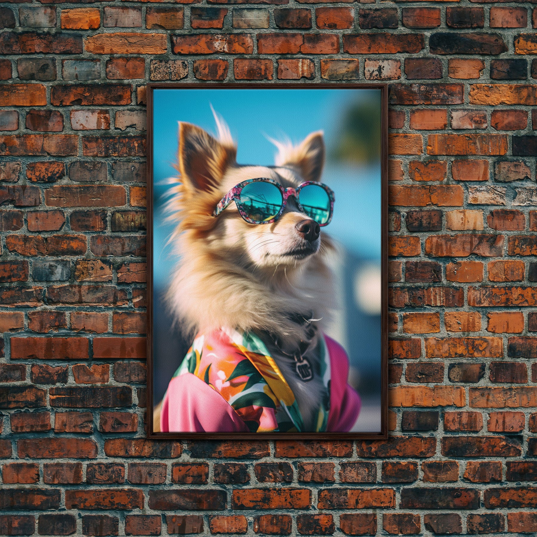 Long Haired Chihuahua In Pink Suit Sunglasses Wall Print, Dog Portrait, Dog Print, Framed Wall Art, Framed Canvas, Wall Print, Wall Canvas