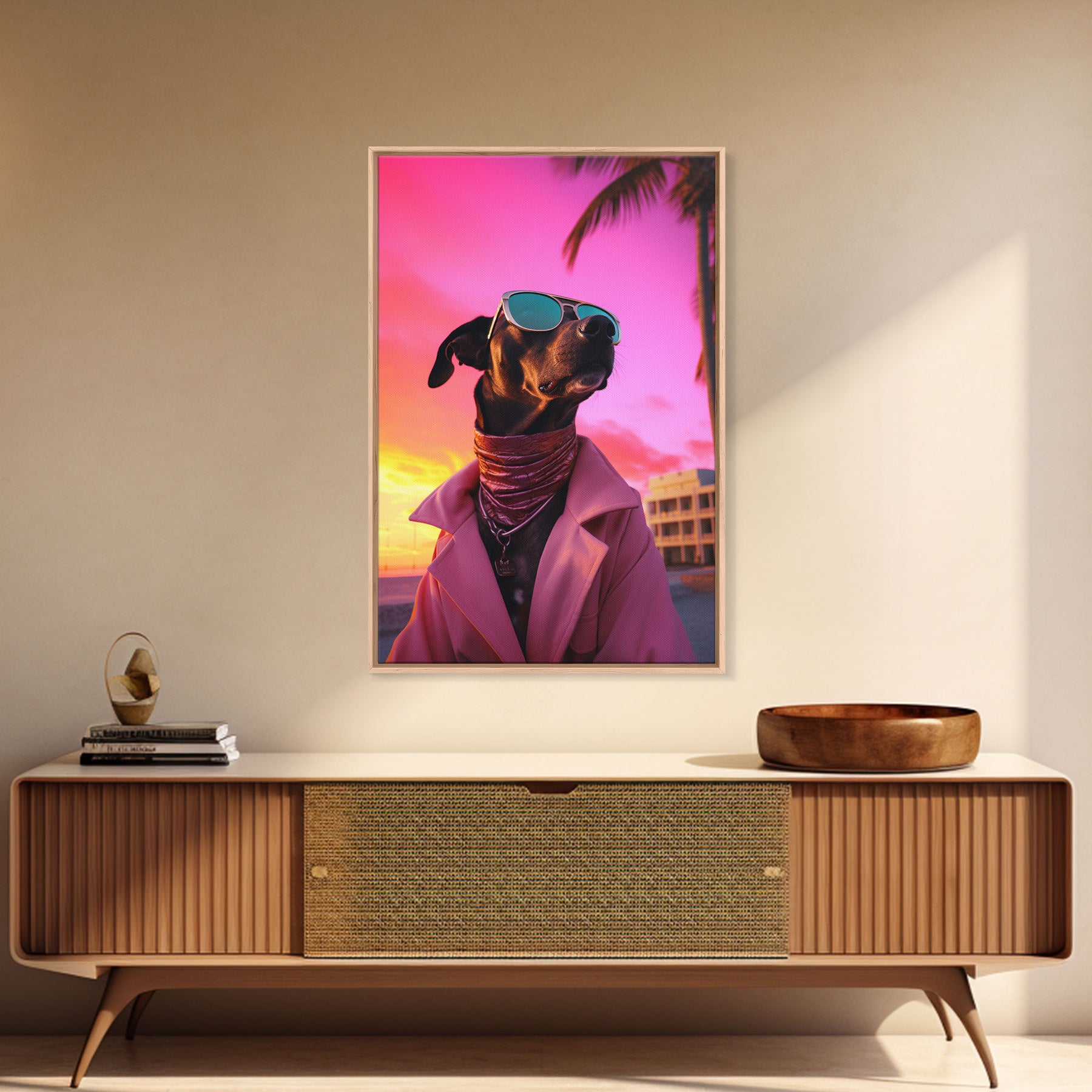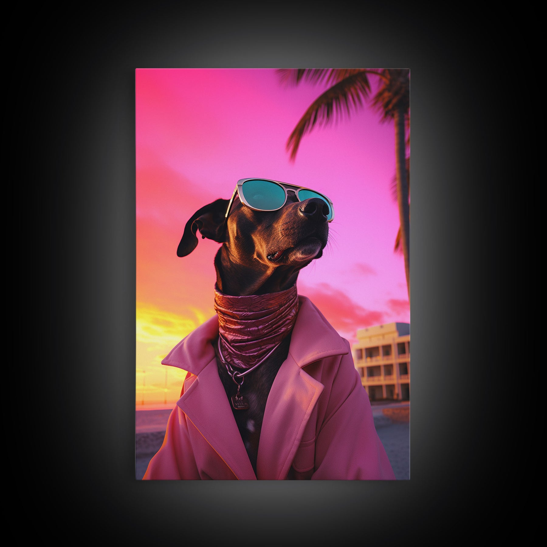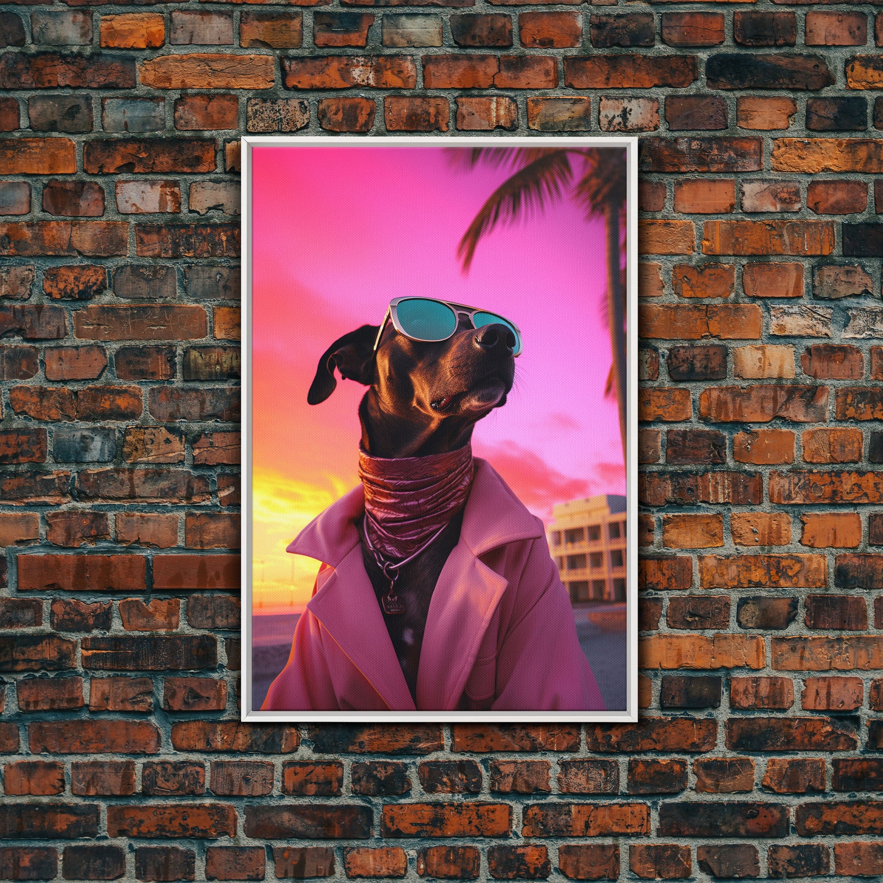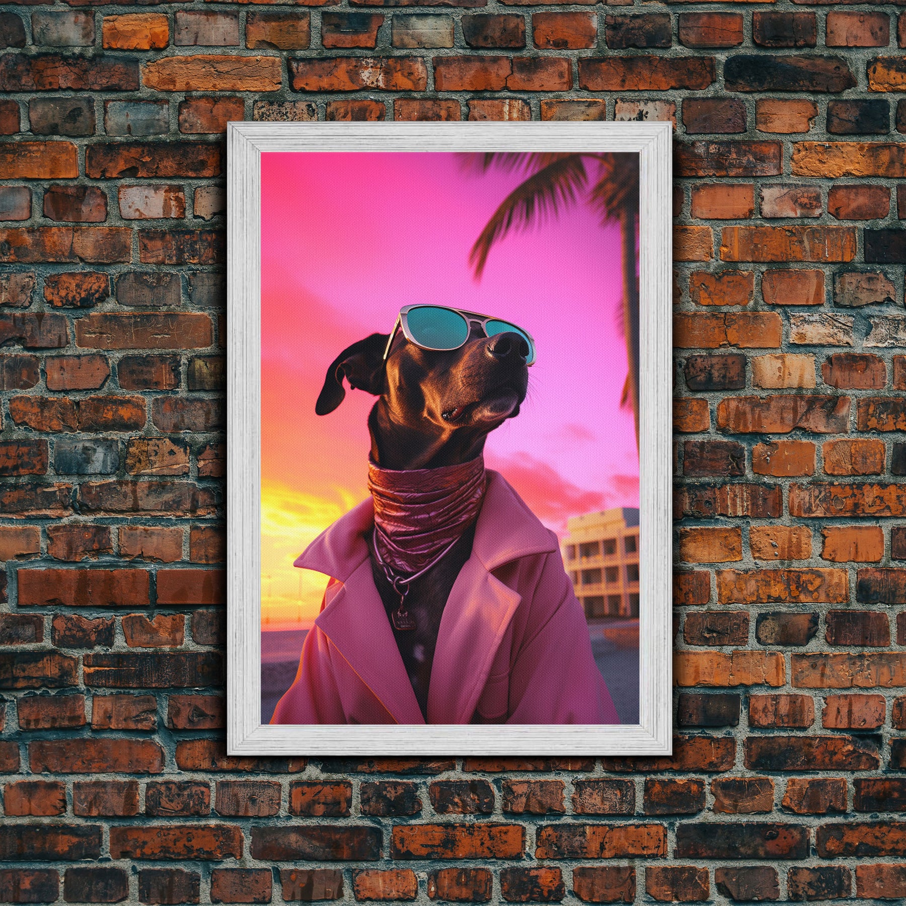 Pinscher Wall Print, Dog Print, Dog Sunglasses, Dog In Pink Suit, Funny Art, Framed Wall Art, Framed Canvas, Wall Print, Wall Canvas