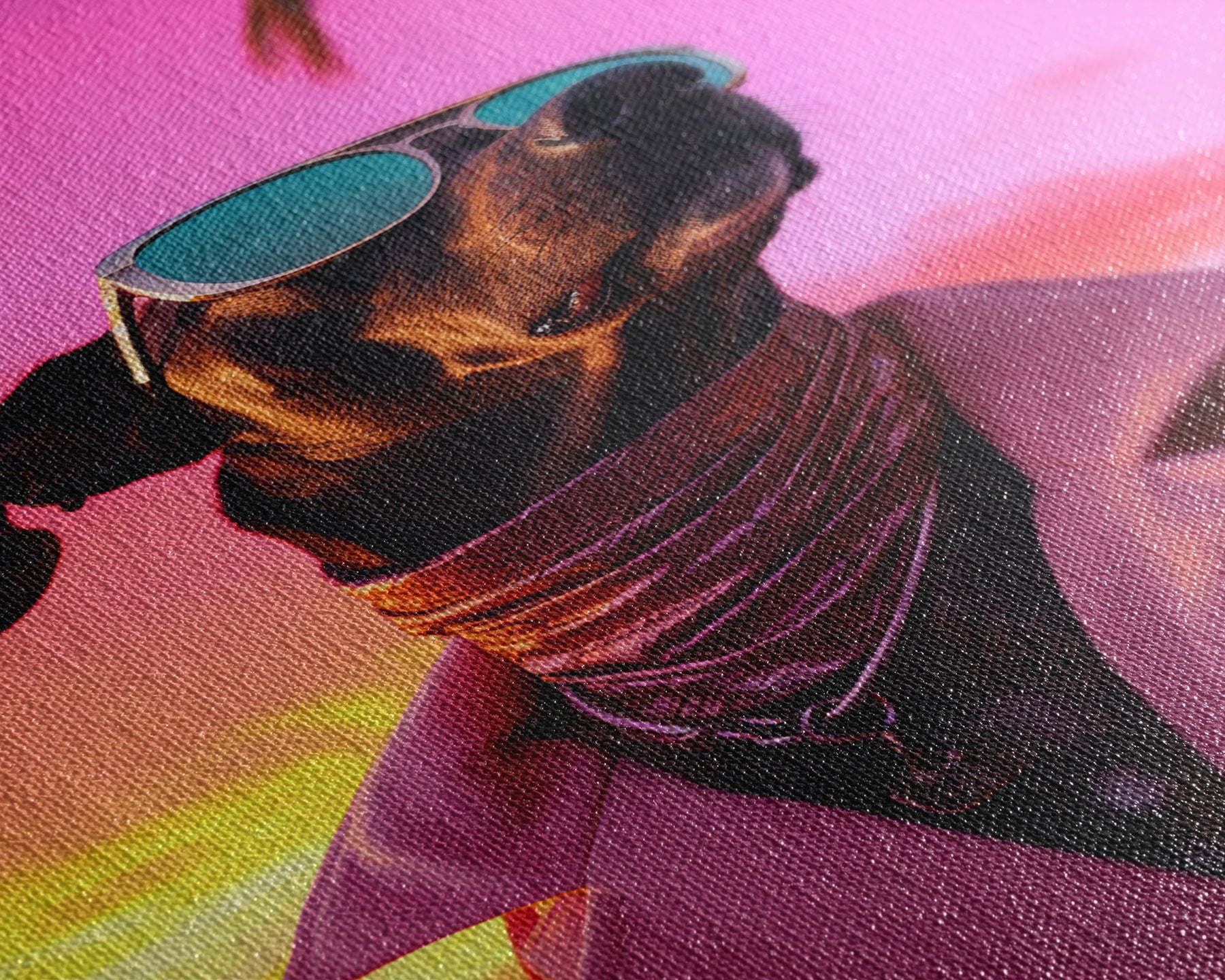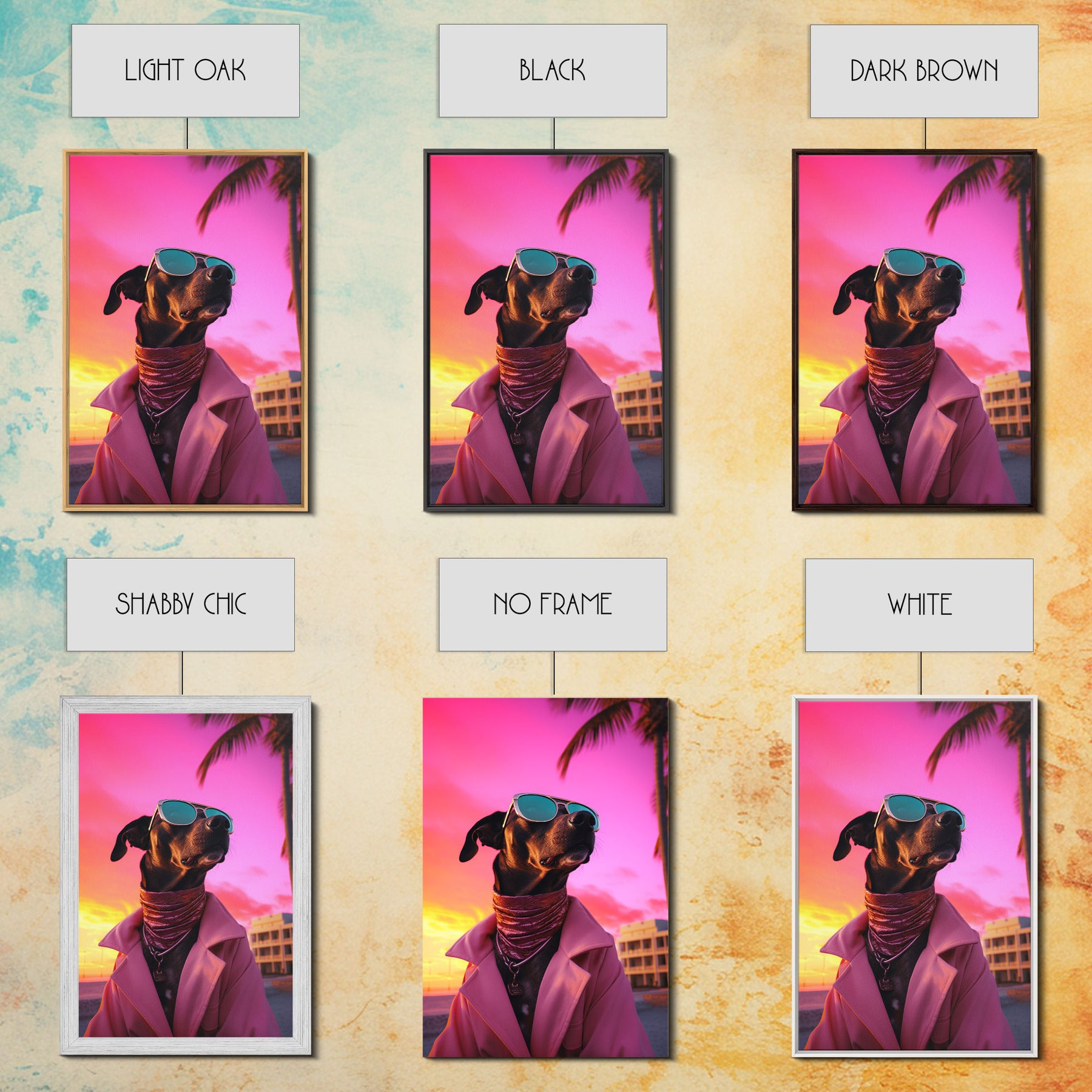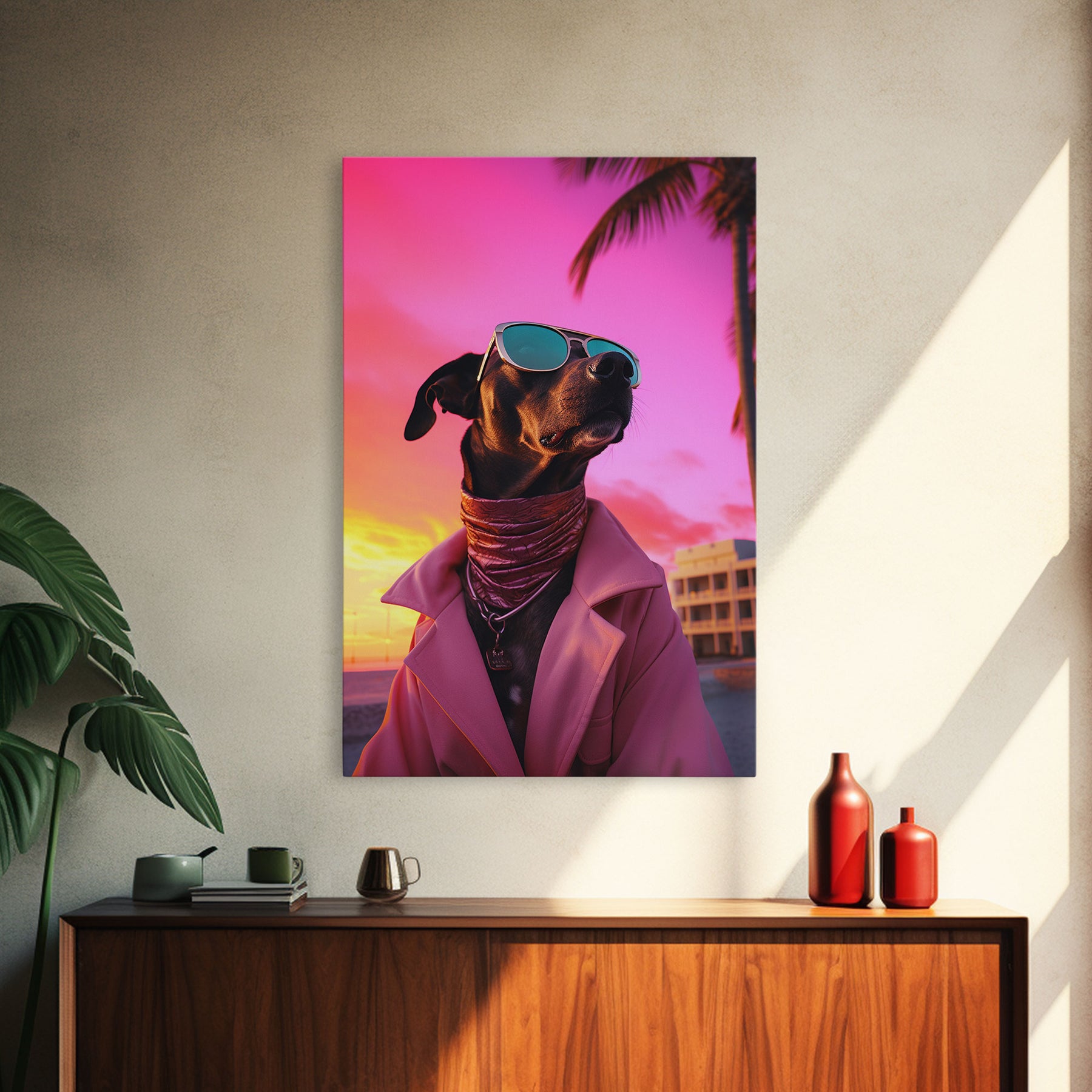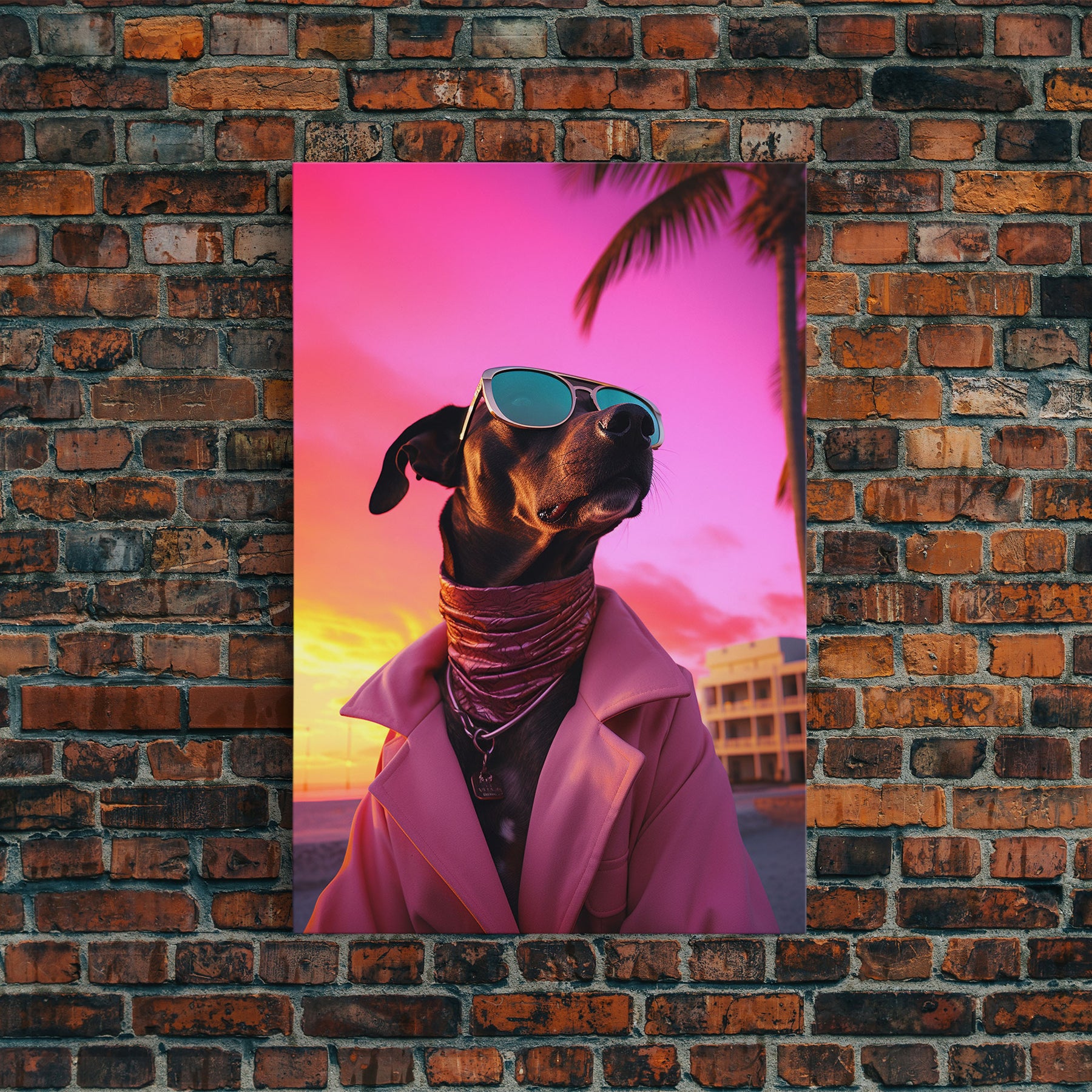 Pinscher Wall Print, Dog Print, Dog Sunglasses, Dog In Pink Suit, Funny Art, Framed Wall Art, Framed Canvas, Wall Print, Wall Canvas