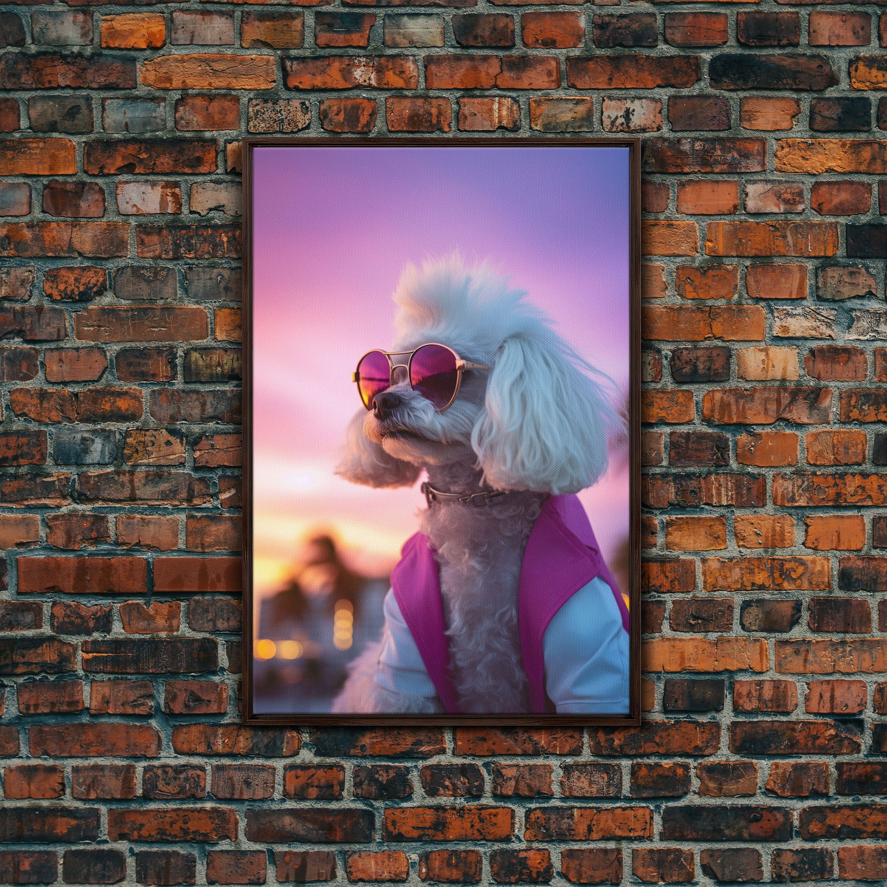 Poodle Wall Print, Dog Wall Art, Dog Sunglasses, Dog In Pink White Suit, Funny Art, Framed Wall Art, Framed Canvas, Wall Print, Wall Canvas
