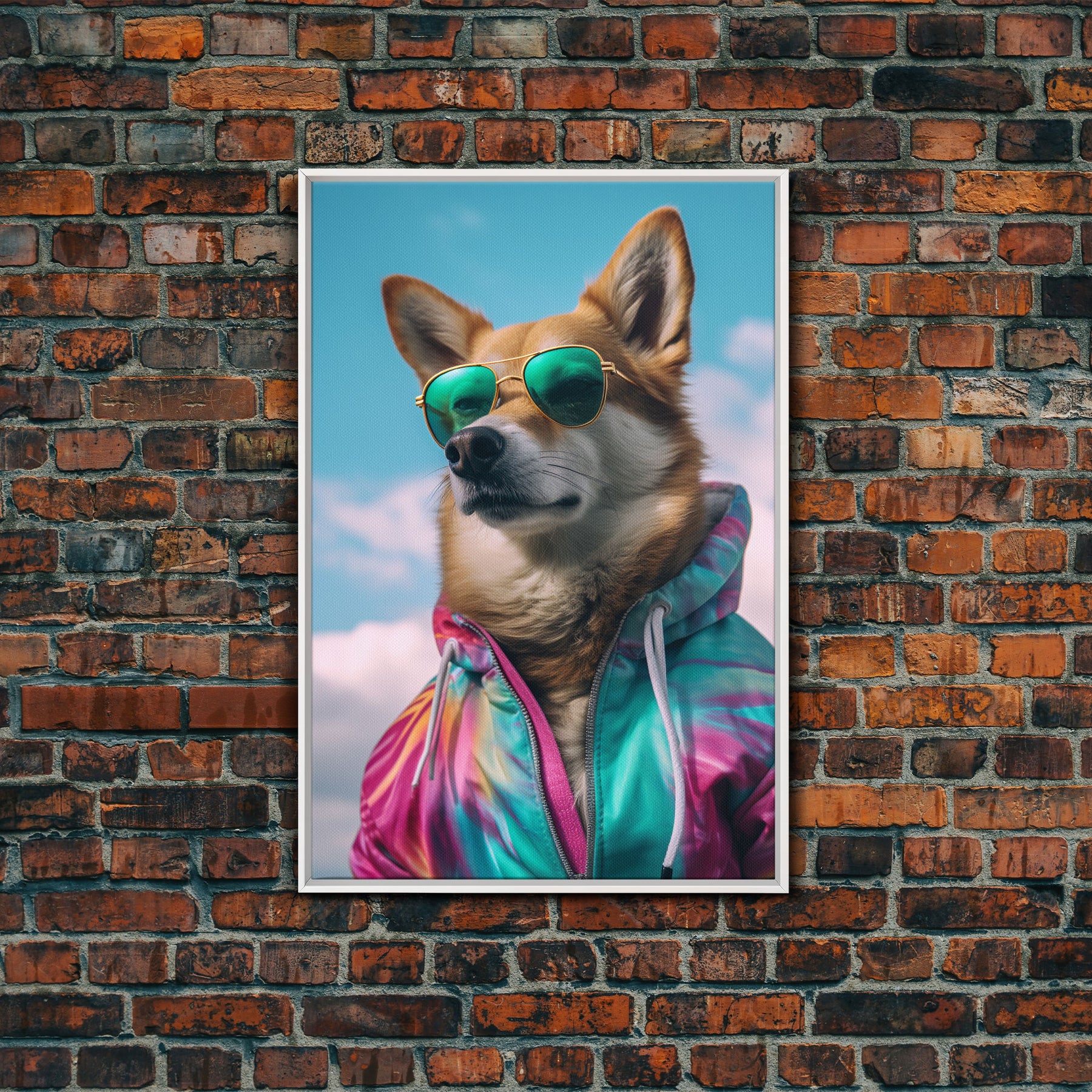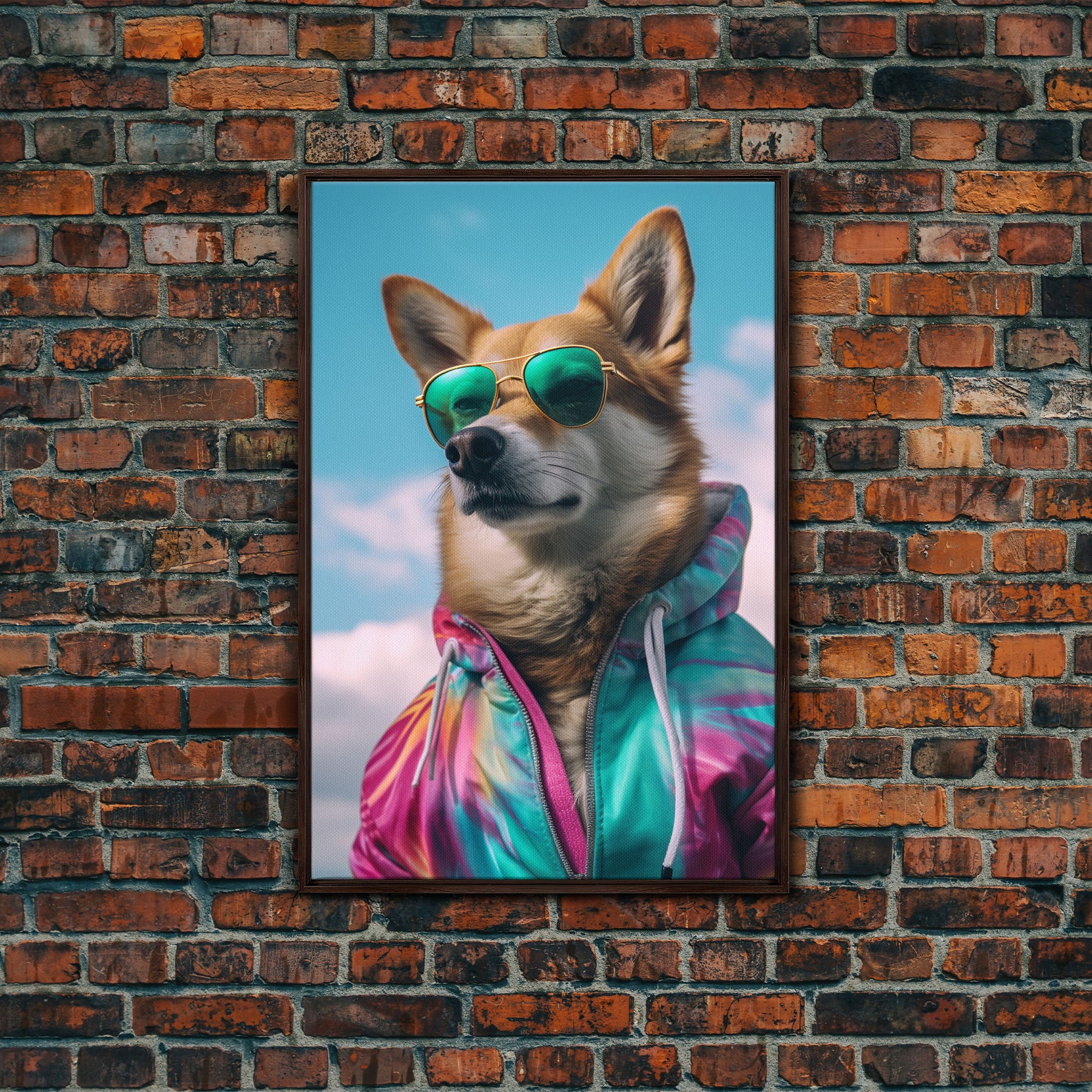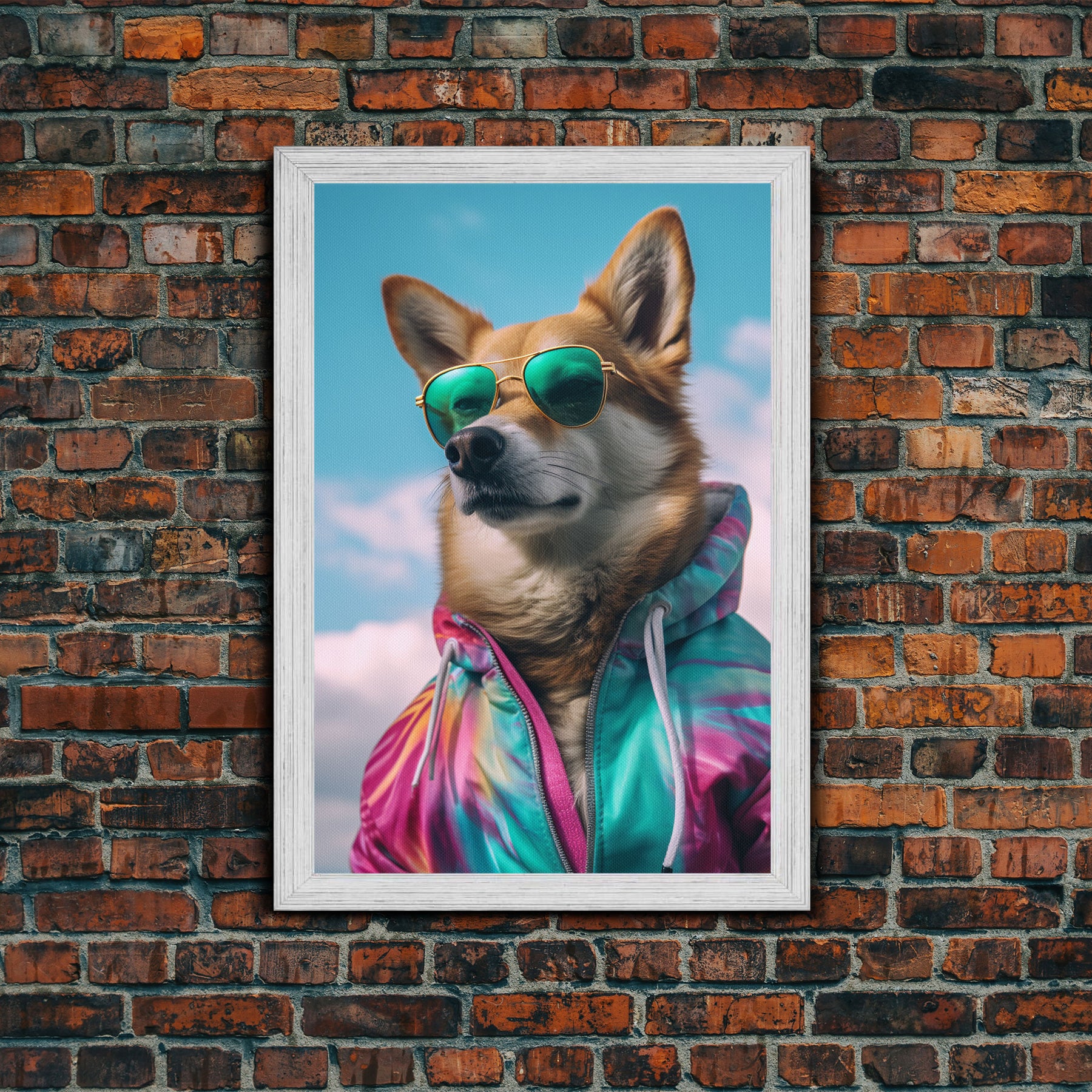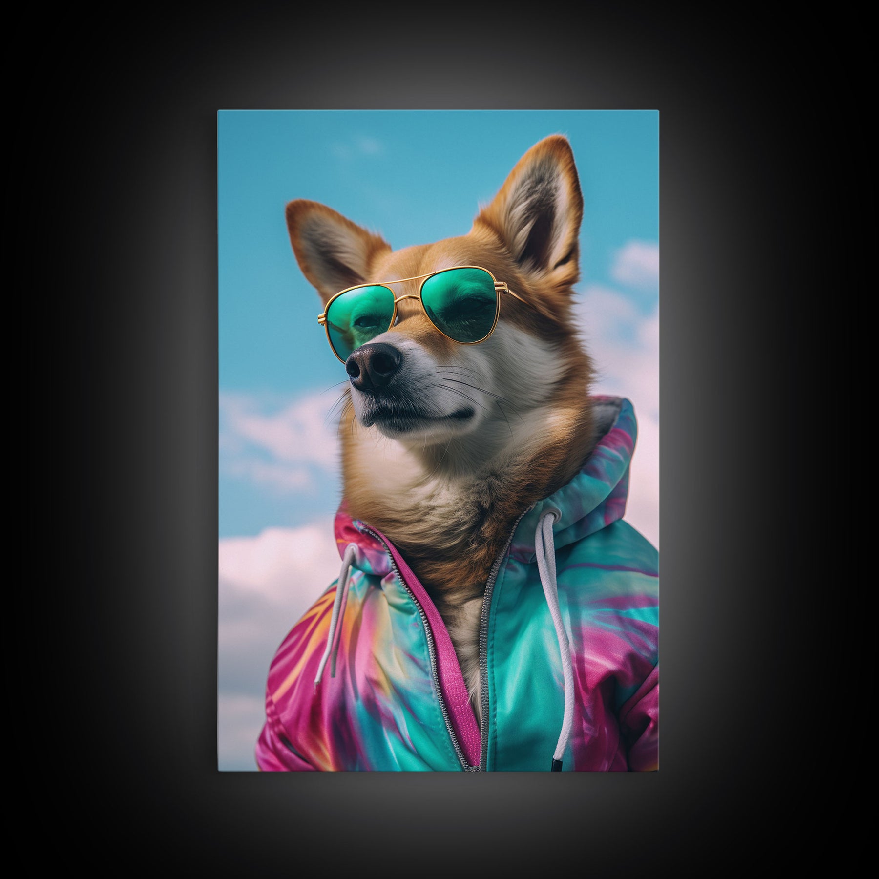Shiba Inu Wall Print, Dog Wall Art, Dog With Shades, Colorful Hoodie, Funny Art, Framed Wall Art, Framed Canvas, Wall Print, Wall Canvas