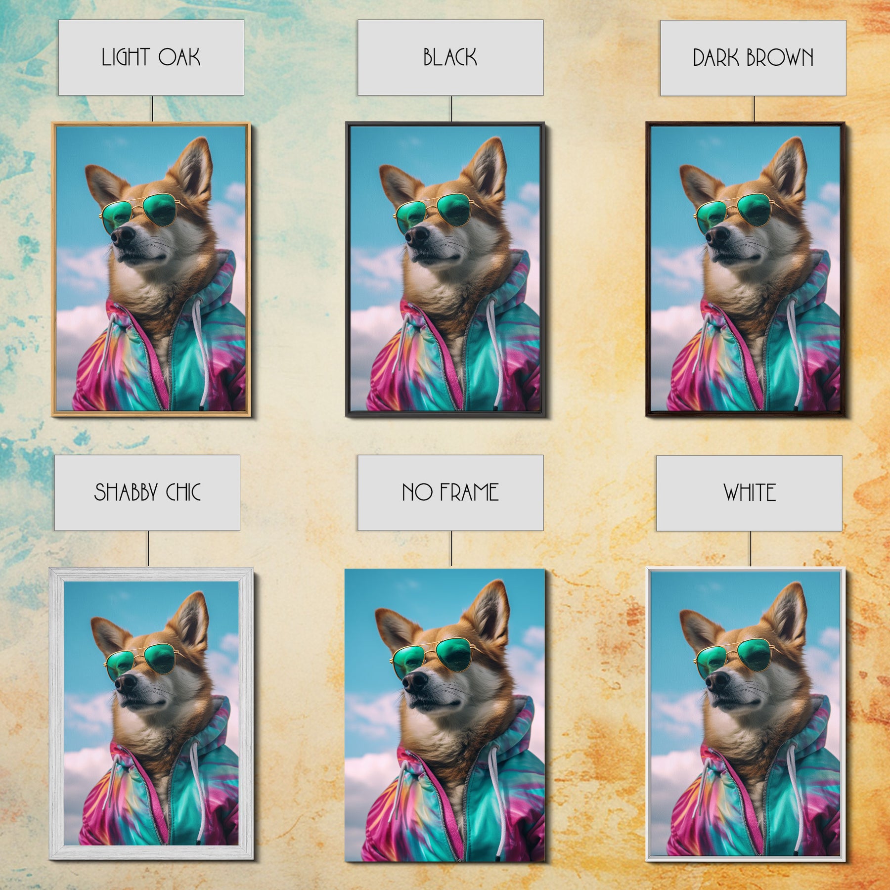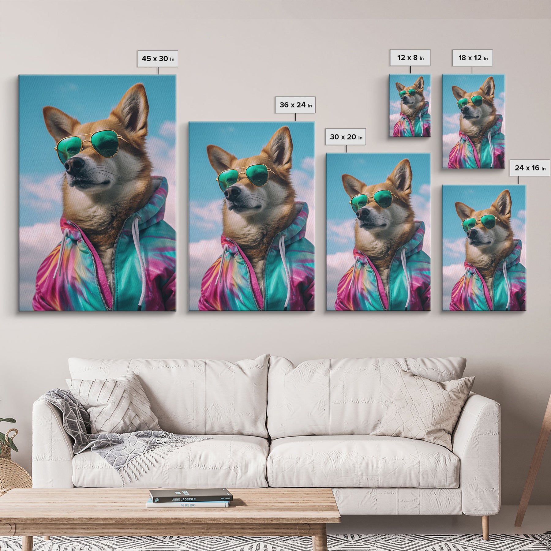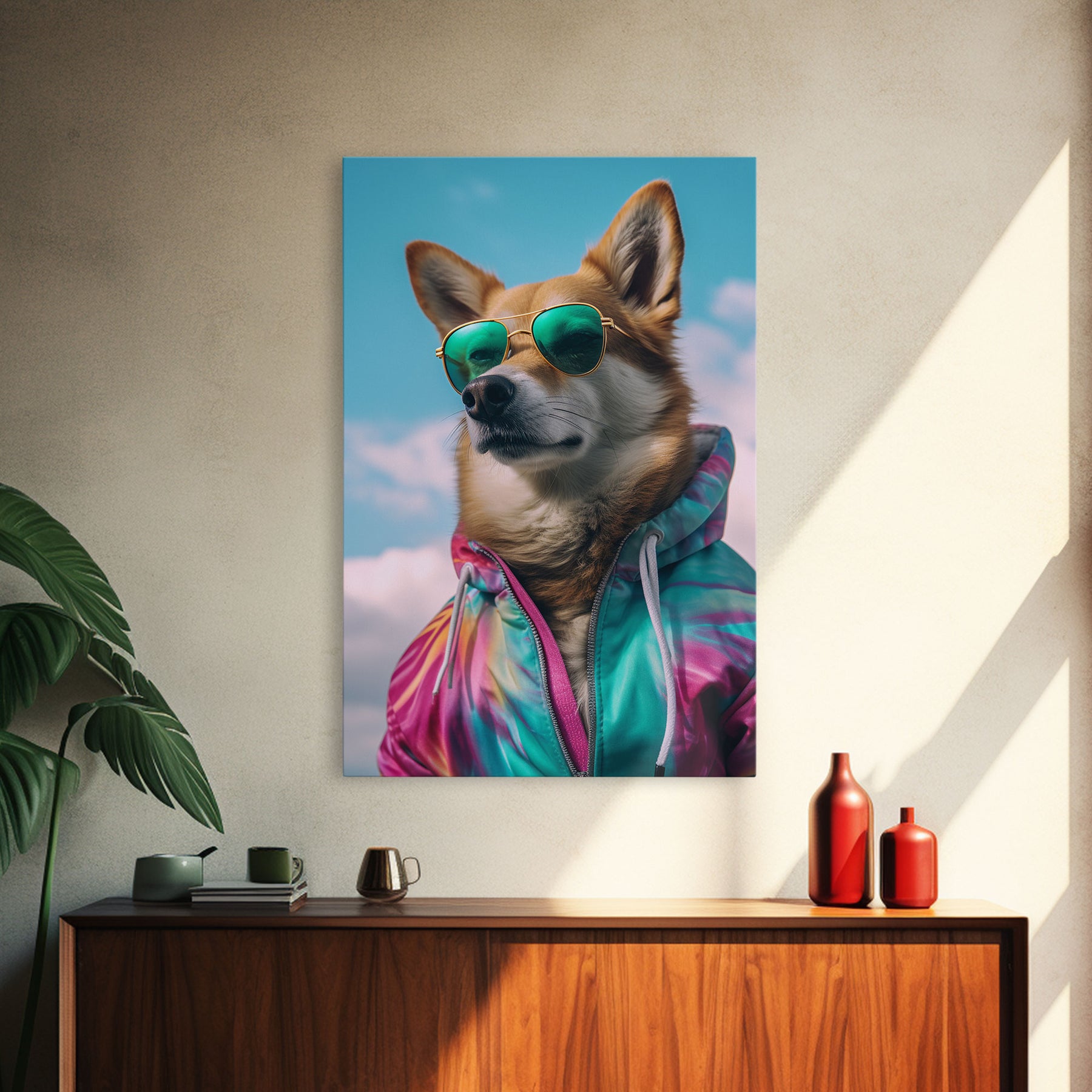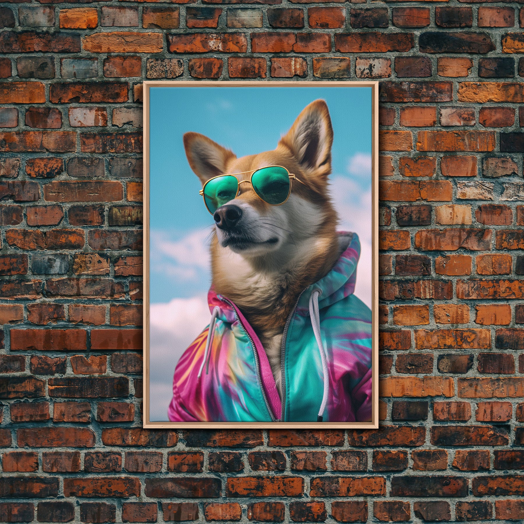 Shiba Inu Wall Print, Dog Wall Art, Dog With Shades, Colorful Hoodie, Funny Art, Framed Wall Art, Framed Canvas, Wall Print, Wall Canvas