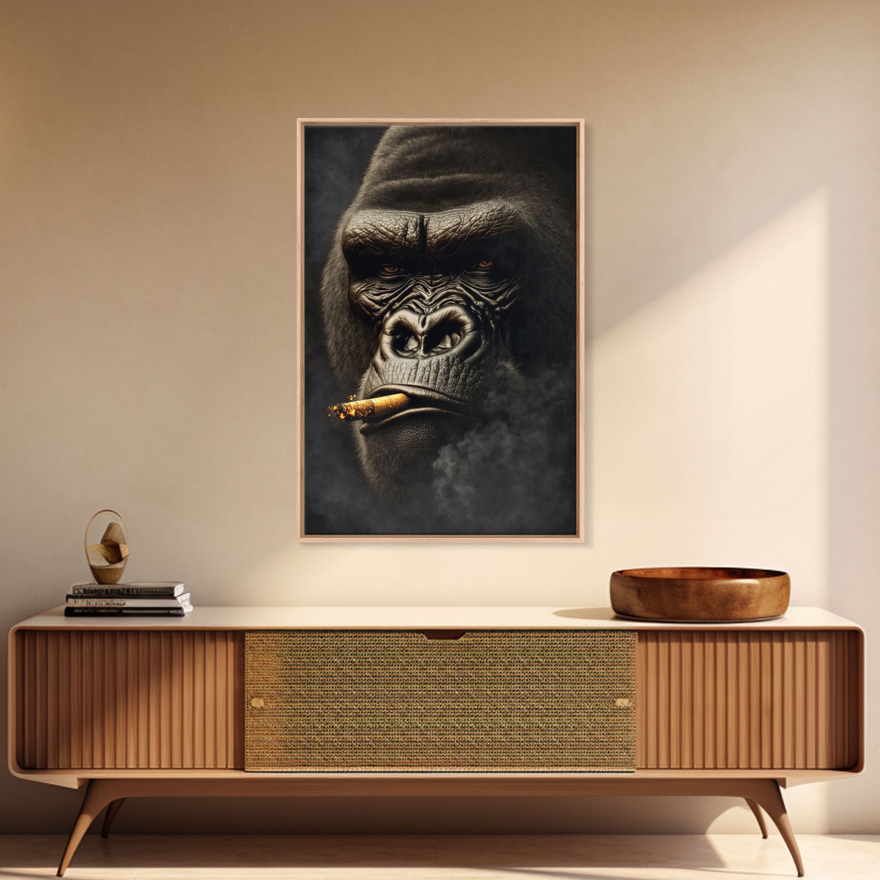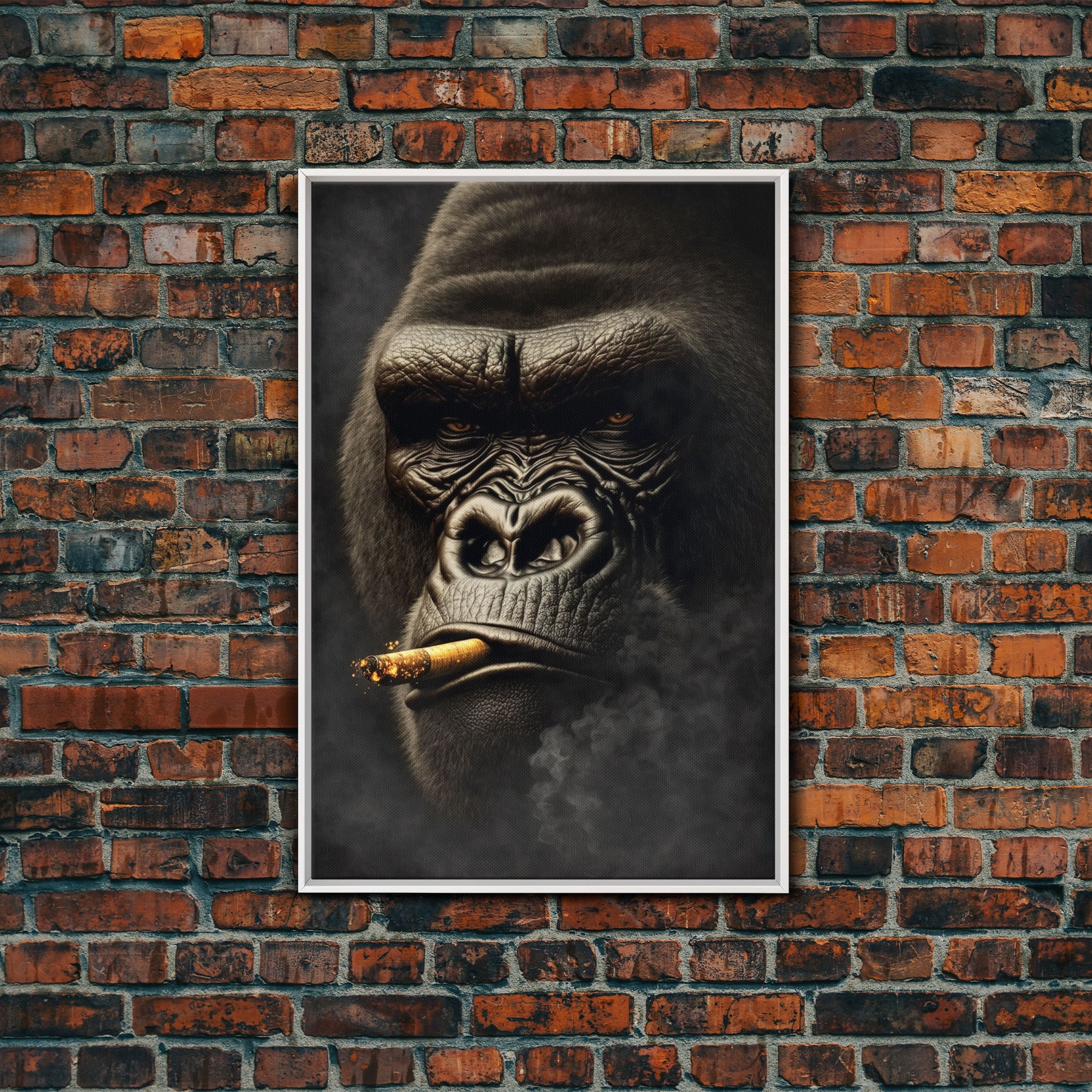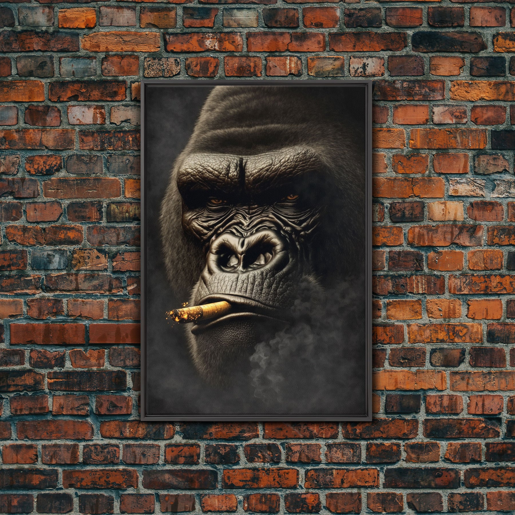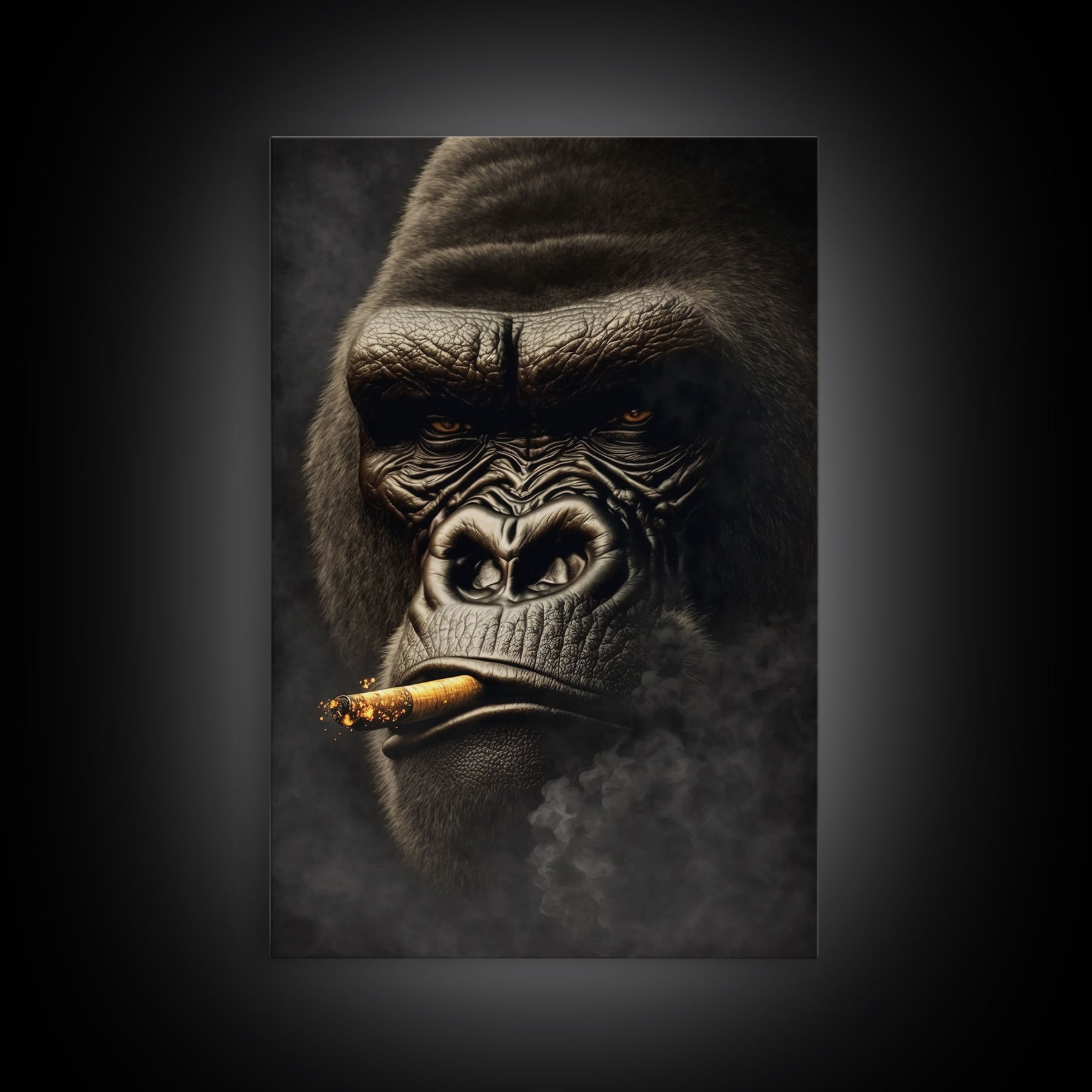 Smoking Gorilla canvas framed wall art, Gorilla Smoking print, Animal Print, Monkey Canvas print, Wall Decor