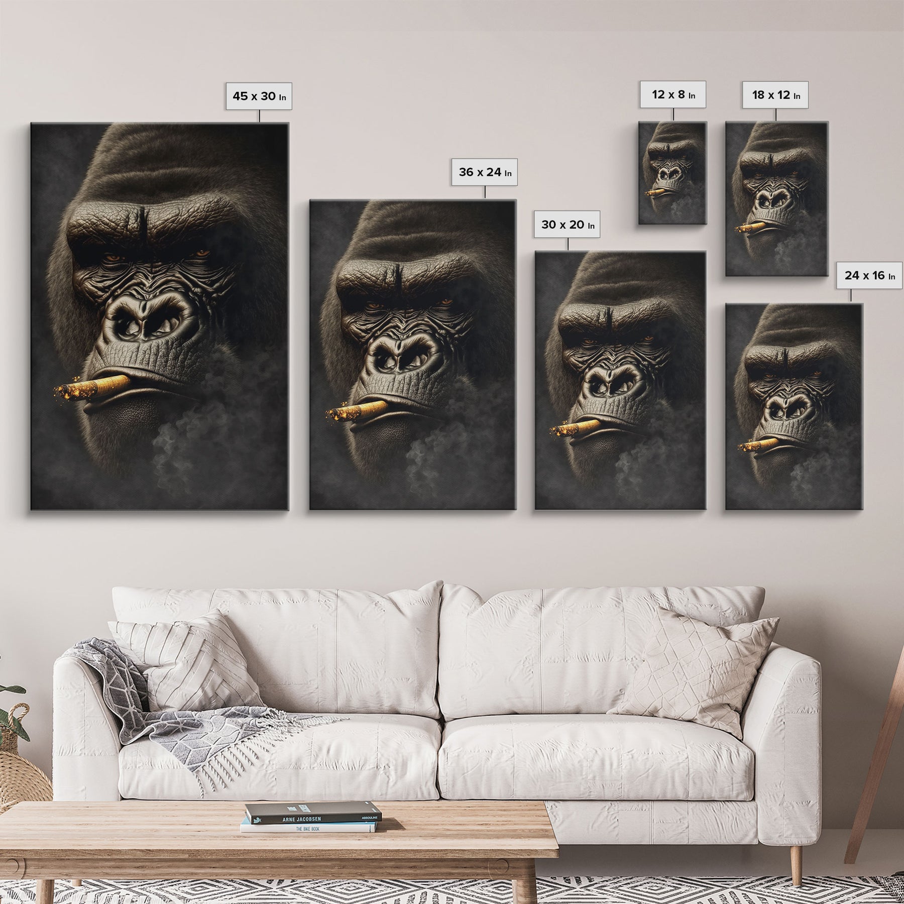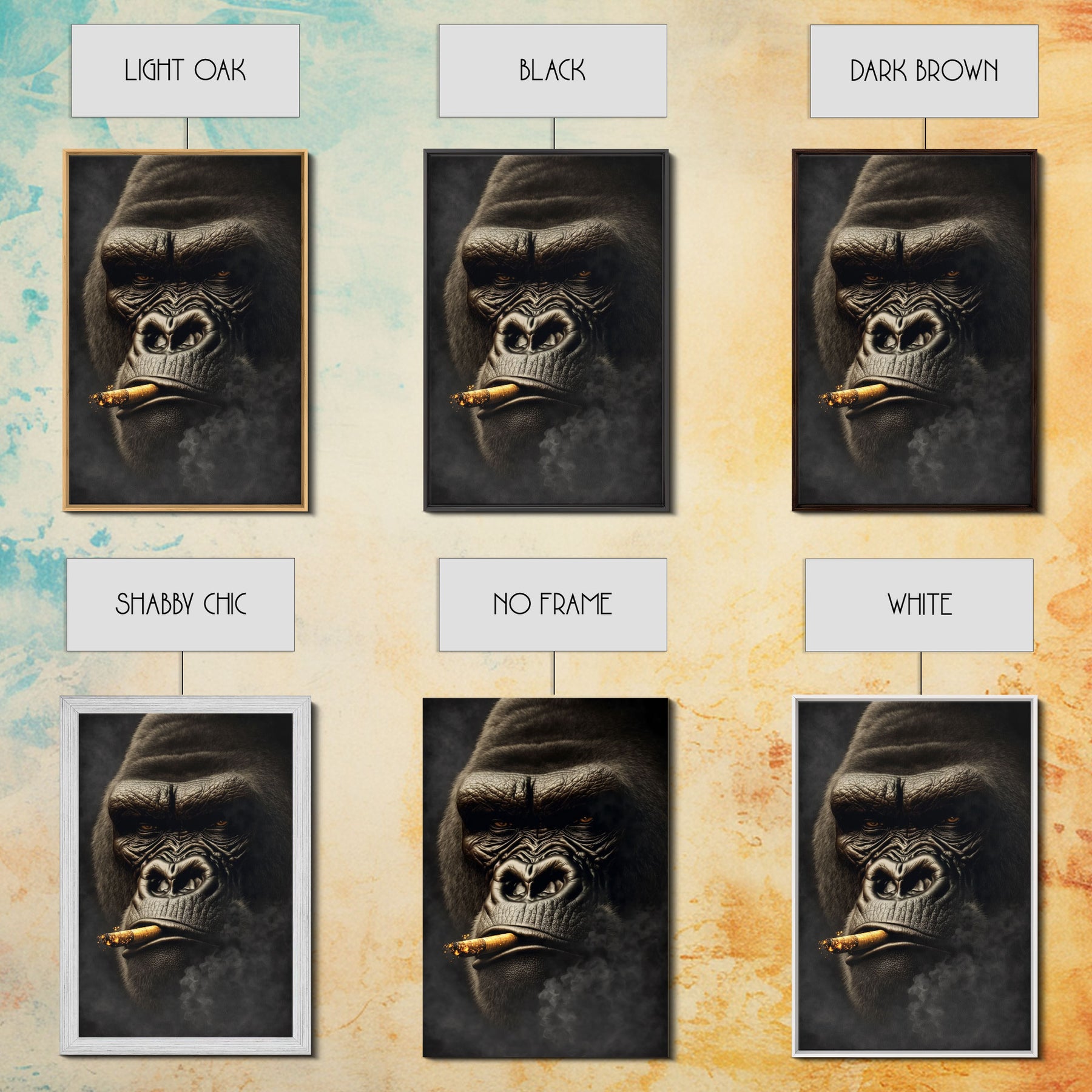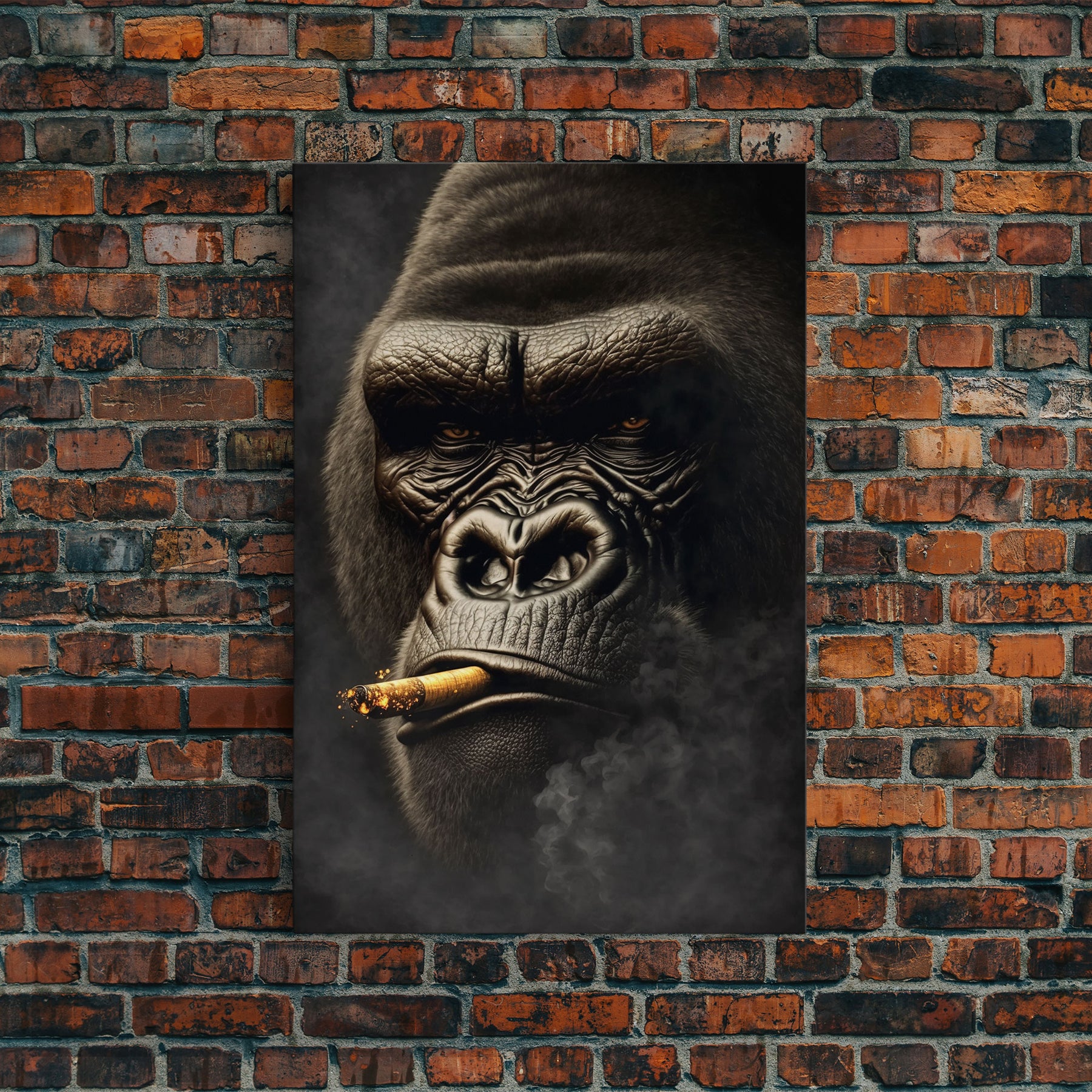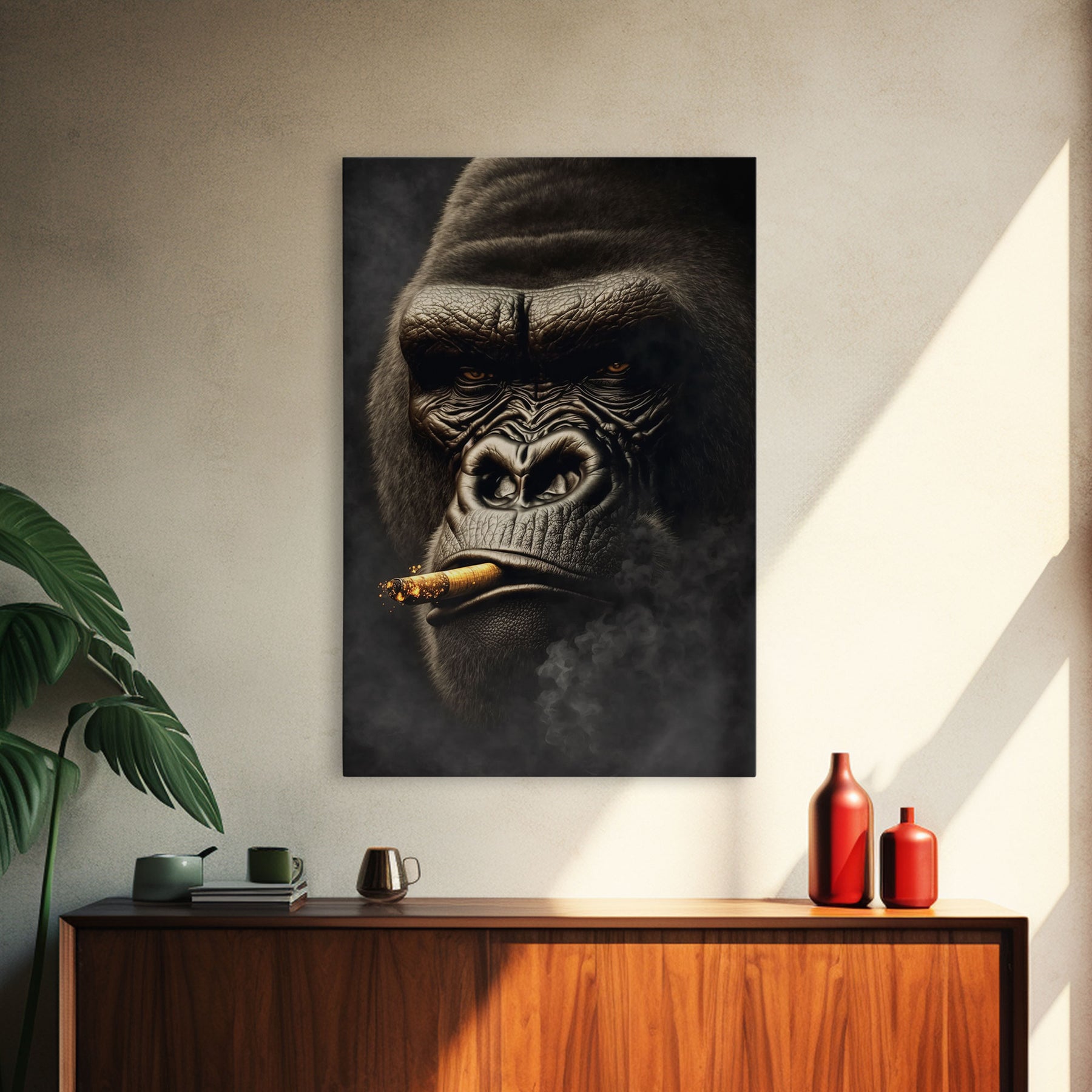 Smoking Gorilla canvas framed wall art, Gorilla Smoking print, Animal Print, Monkey Canvas print, Wall Decor