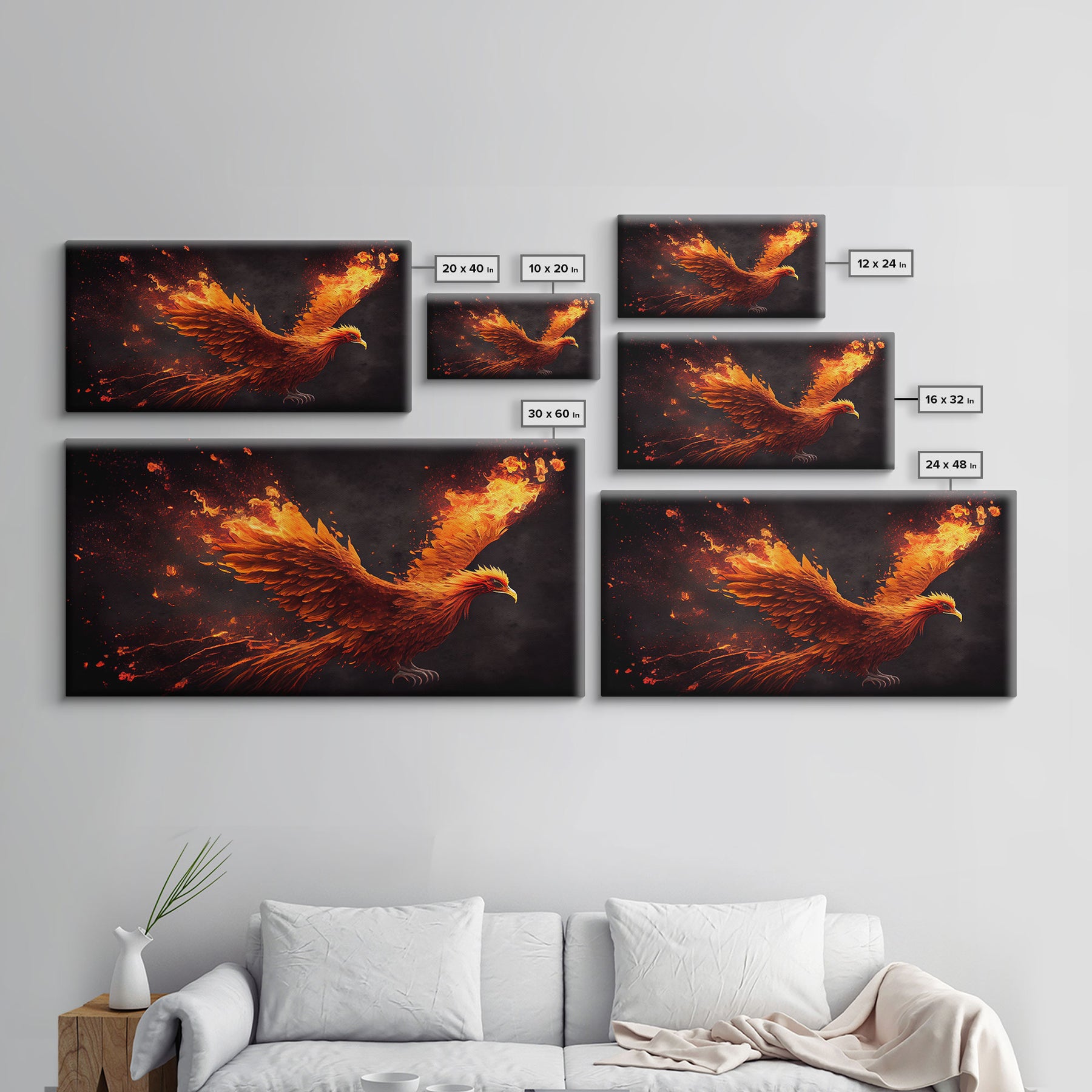 *Optional frames add a total of 1.5 inches to each dimension, for example a 10x20 canvas with a frame will be 11.5 by 21.5 inches total. All framed canvas are 1.5" total depth.