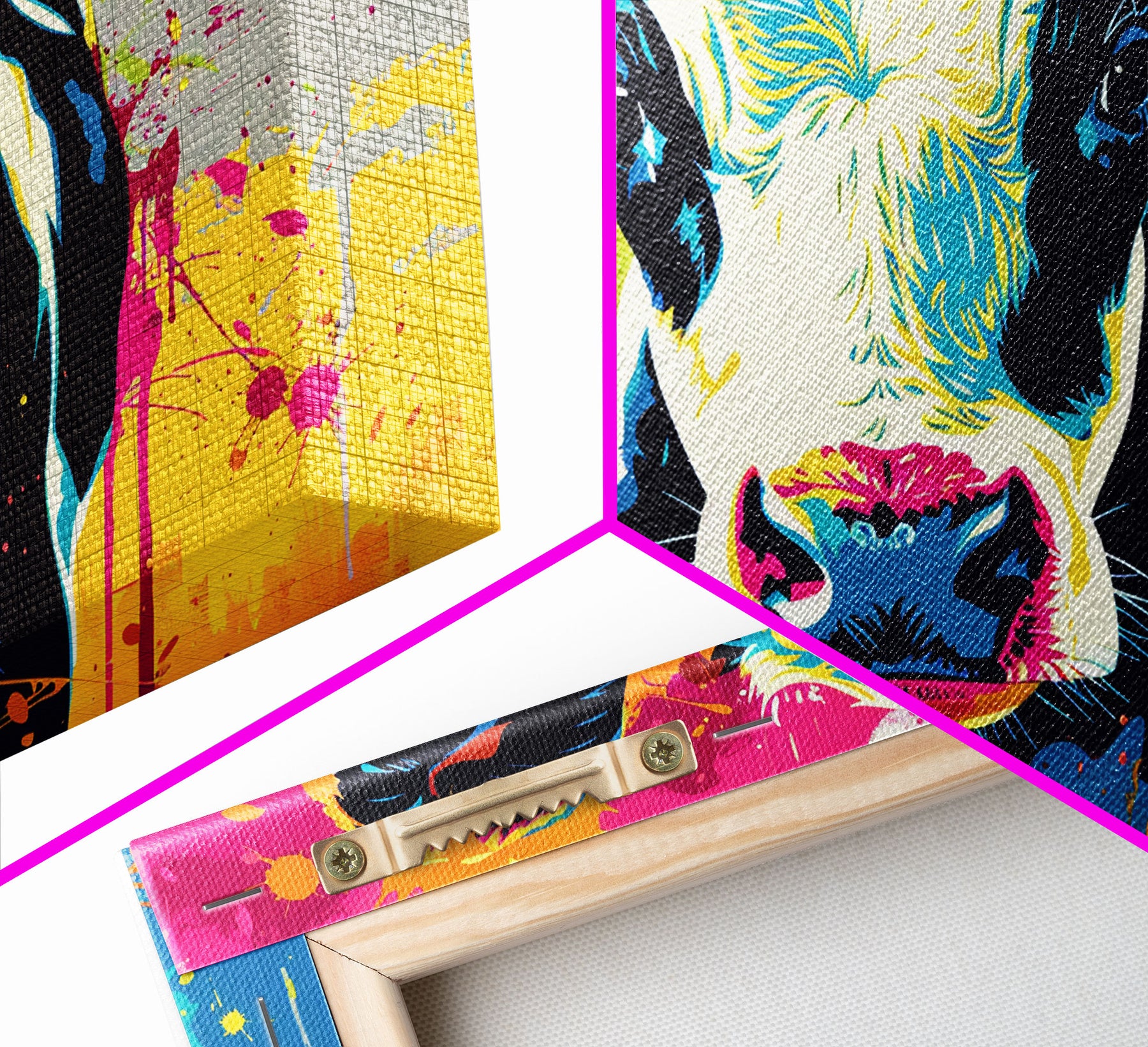 Hello and thank you for taking the time to view our modern high quality giclée artwork! We offer both posters and stretched canvas prints. Our posters are printed on Ultra Matte 60 lb / 230 GSM high quality photo paper, with a thickness of 10 mil. Our canvases are printed on museum grade 350 GSM canvas material with ECO friendly archival grade ink, then hand stretched and stapled over premium, FSC certified and shrink resistant frames. Designed and built to last a lifetime.