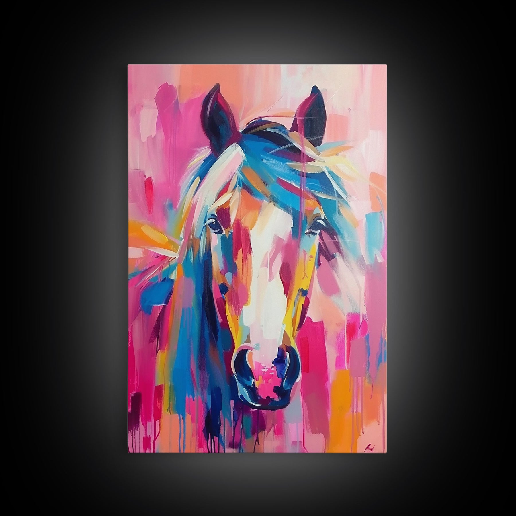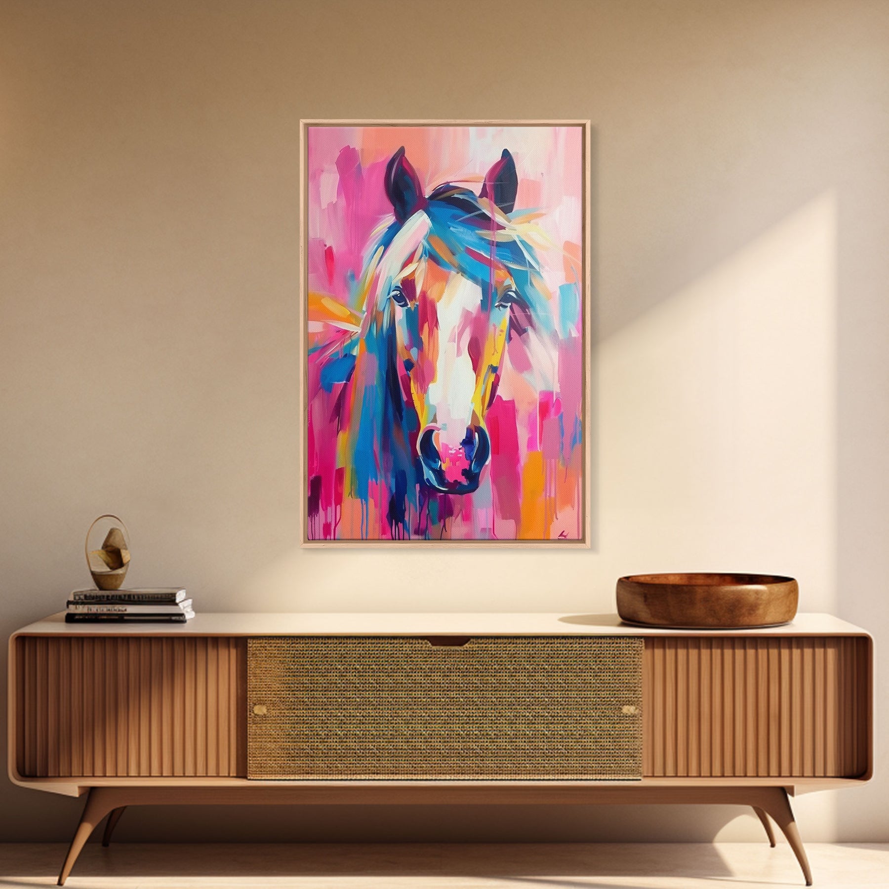 Colorful Horse Portrait Art - Framed Canvas Print, Vibrant Living Room Decor, Unique Wall Art, Bedroom Decor