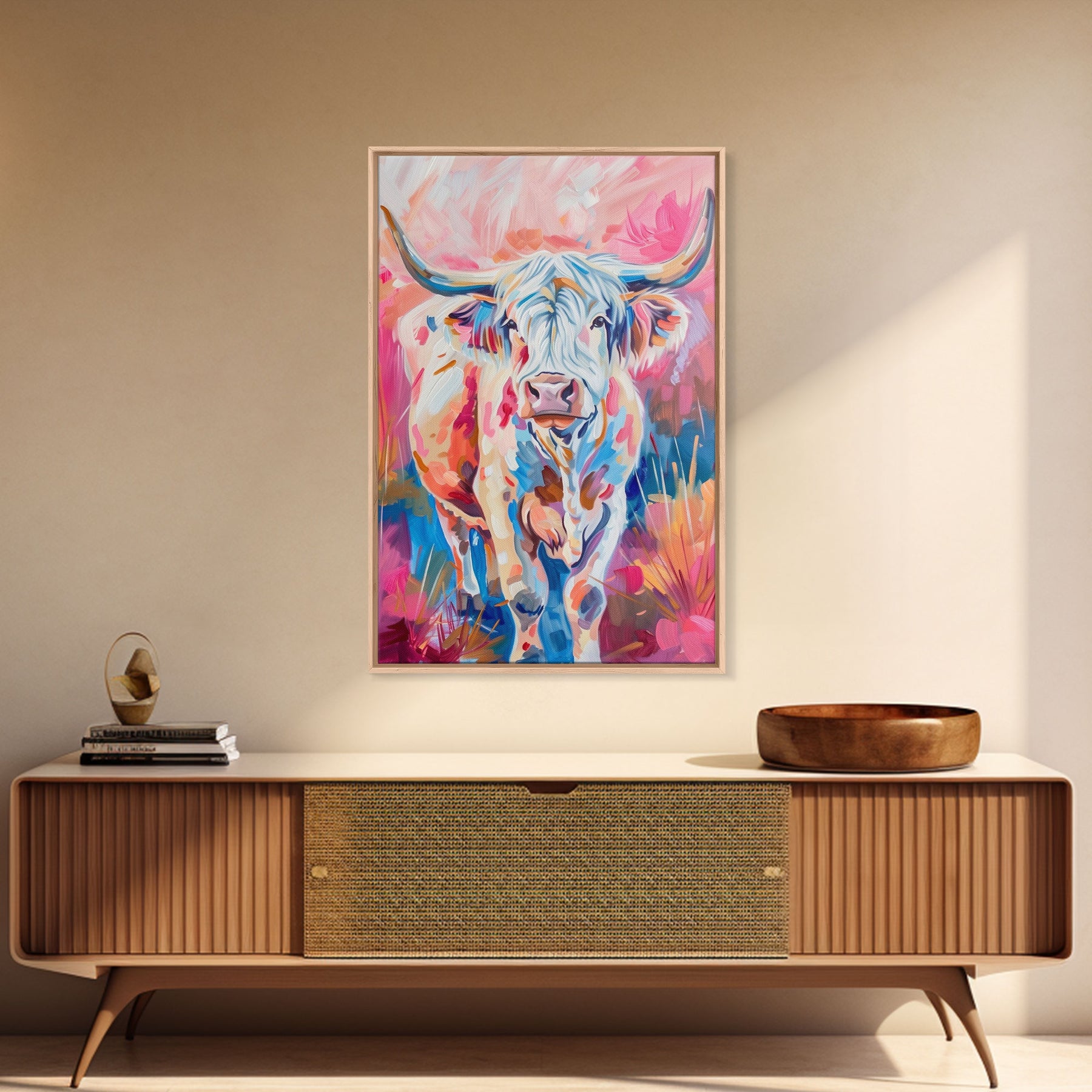 Colorful Highland Cow Art - Rustic Farmhouse Wall Decor, Vibrant Animal Painting, Living Room Art, Highland Cow Canvas Print