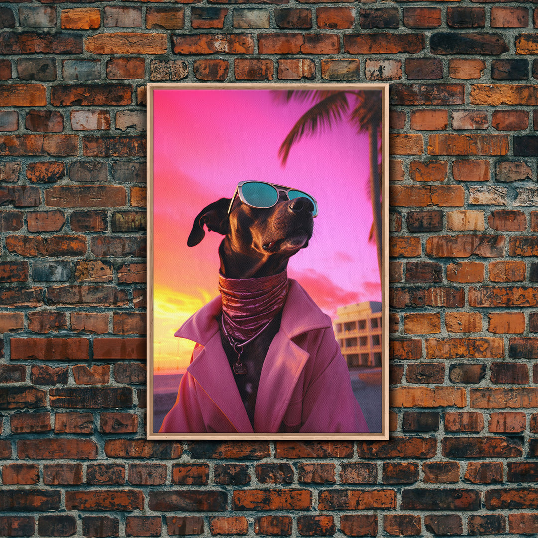 Pinscher Wall Print, Dog Print, Dog Sunglasses, Dog In Pink Suit, Funny Art, Framed Wall Art, Framed Canvas, Wall Print, Wall Canvas