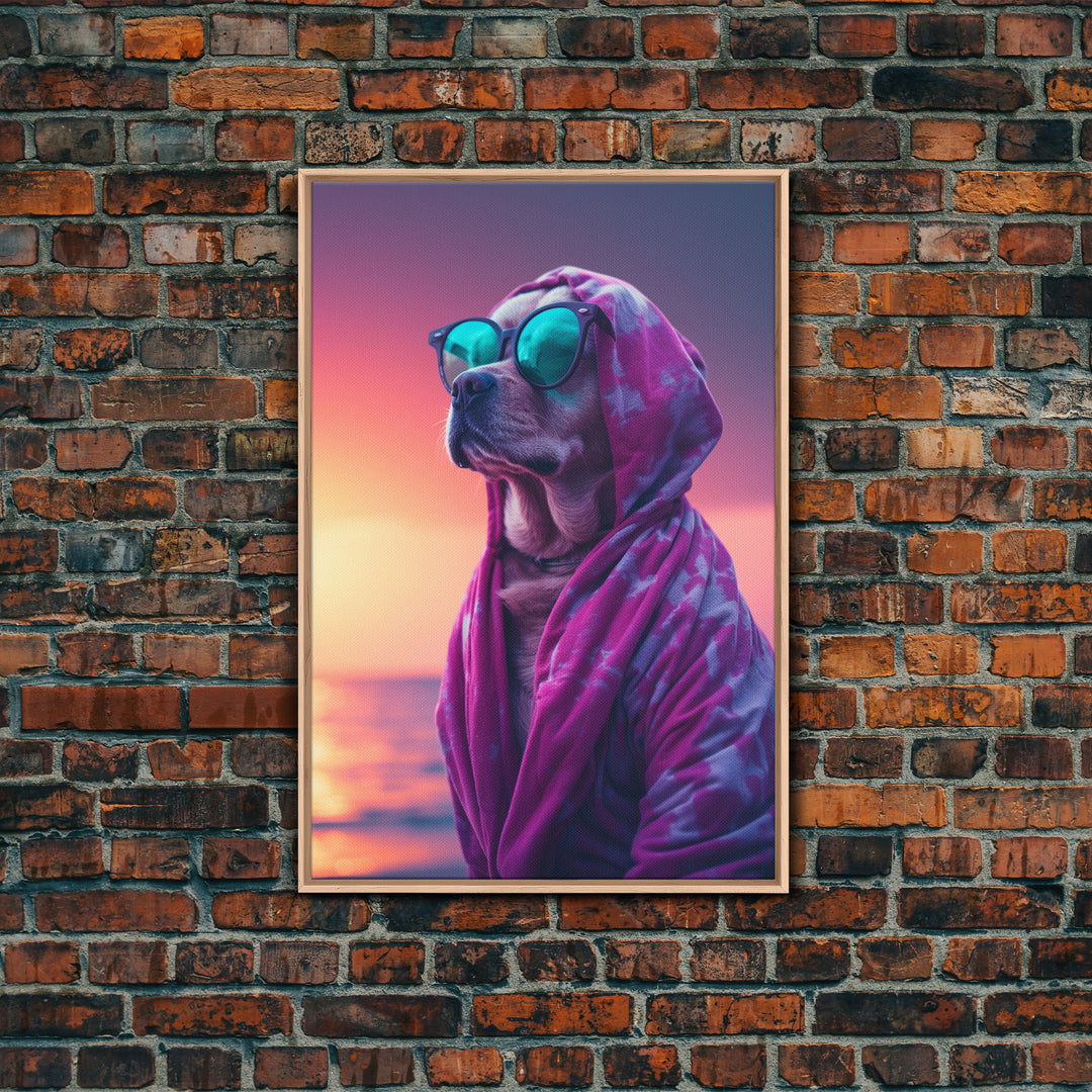 Pit Bull In Pink Hoodie Sunglasses Wall Print, Beach Art, Dog Print, Dog Portrait, Framed Wall Art, Framed Canvas, Wall Print, Wall Canvas
