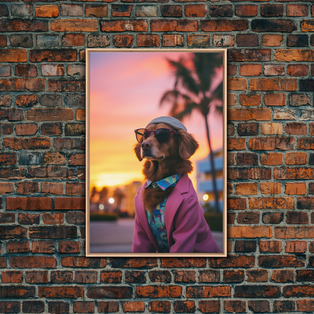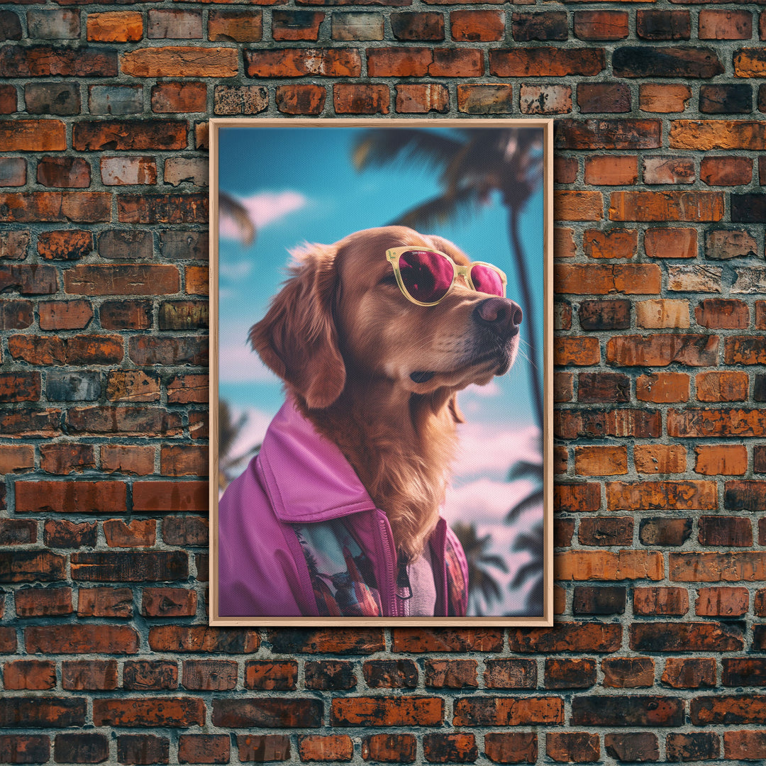 Golden Retriever Wall Print, Dog Art, Dog Sunglasses, Dog In Pink Suit, Funny Art, Framed Wall Art, Framed Canvas, Wall Print, Wall Canvas