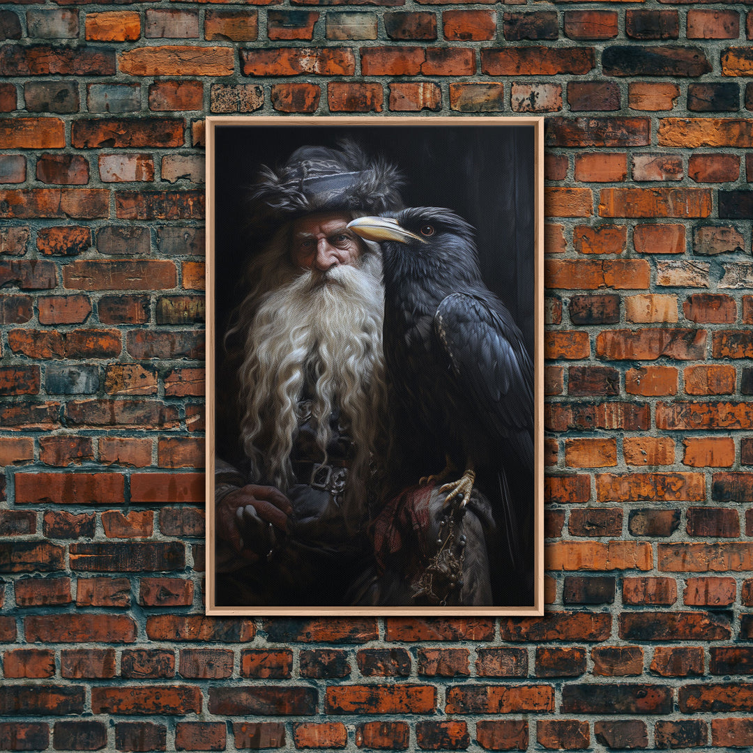 Gothic Raven Vintage Canvas, Art Canvas Print, Framed Canvas, Home Decor, Victorian Crow, Funny Halloween Art, Dark Academia Portrait