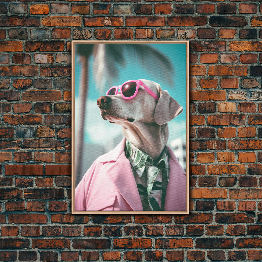 Weimaraner Wall Print, Dog Wall Art, Dog Sunglasses, Pink Suit, Funny Wall Art, Framed Wall Art, Framed Canvas, Wall Print, Wall Canvas