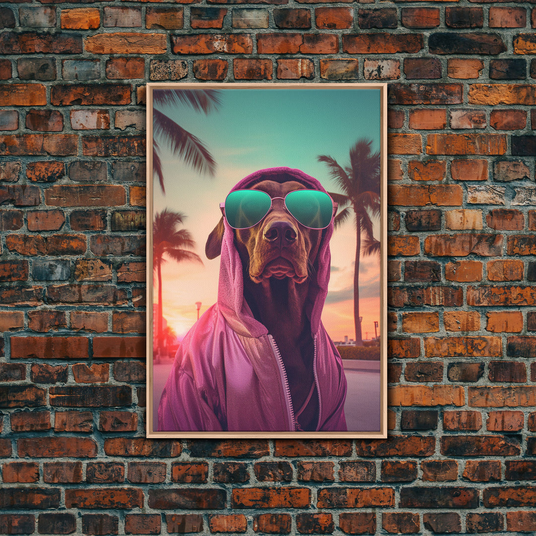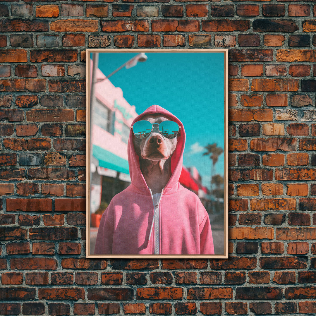 Weimaraner Wall Print, Dog Wall Art, Dog Sunglasses, Dog In Pink Hoodie, Funny Art, Framed Wall Art, Framed Canvas, Wall Print, Wall Canvas