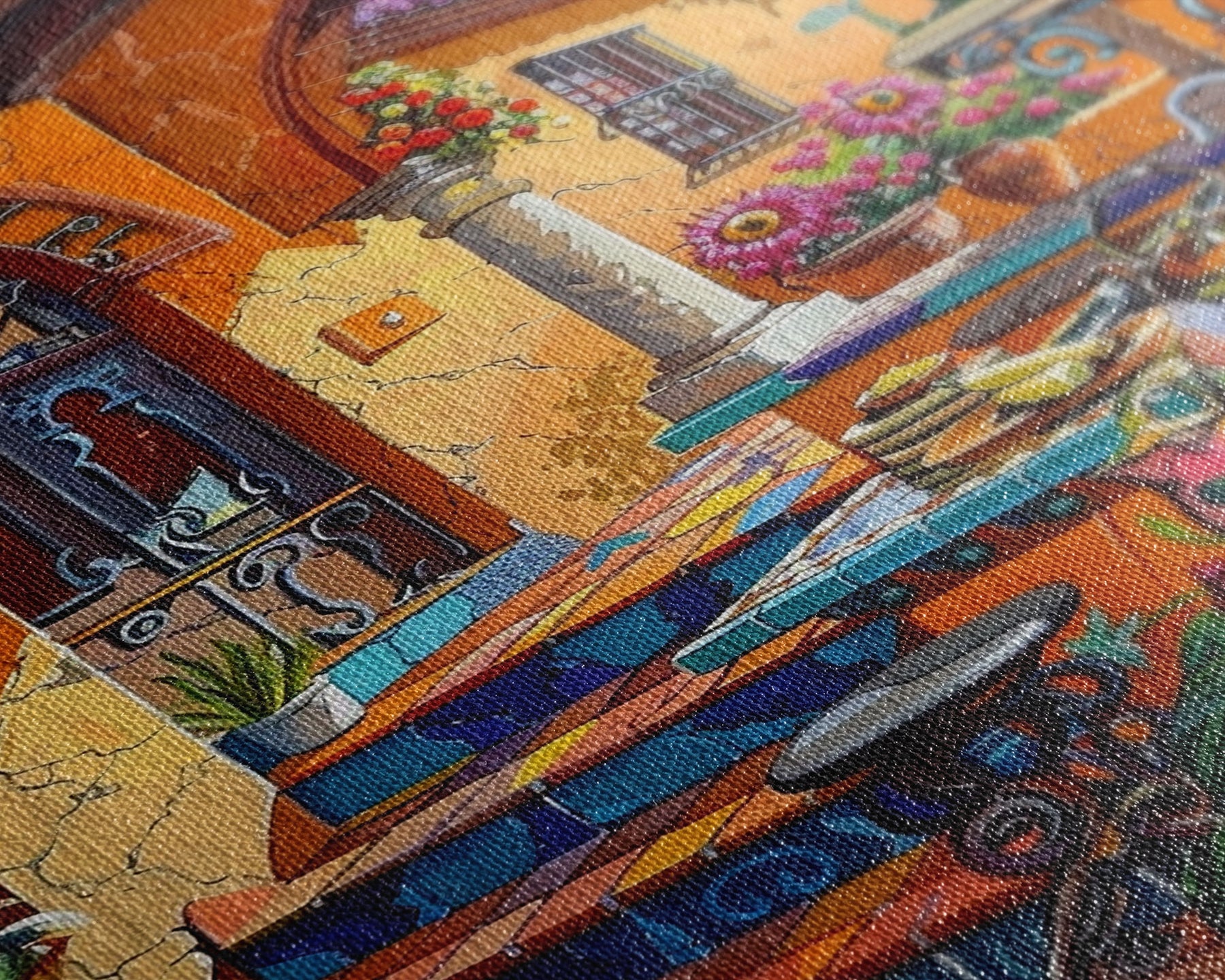 Most of our canvases are made in the USA, with the exception of canvases ordered with the light oak unstained frames, and any large canvases (24x48, 30x60, 16x48 and 20x60) ordered WITH a frame. These are temporarily made in and shipped from Europe, while we try to find a more consistent supplier in the USA.