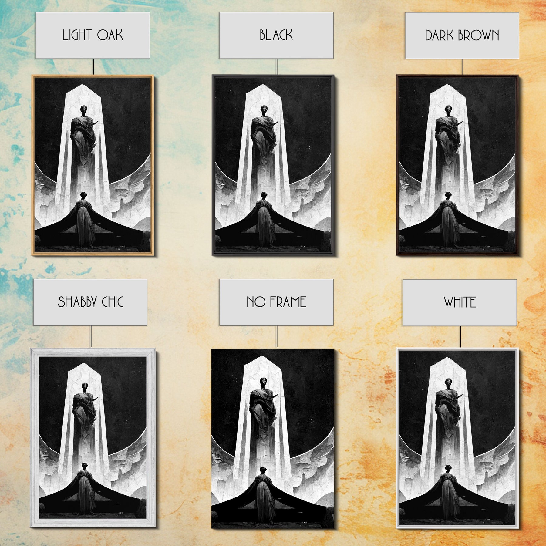 Hello and thank you for taking the time to view our modern high quality giclée artwork! We offer both posters and stretched canvas prints. Our posters are printed on Ultra Matte 60 lb / 230 GSM high quality photo paper, with a thickness of 10 mil. Our canvases are printed on museum grade 350 GSM canvas material with ECO friendly archival grade ink, then hand stretched and stapled over premium, FSC certified and shrink resistant frames. Designed and built to last a lifetime.