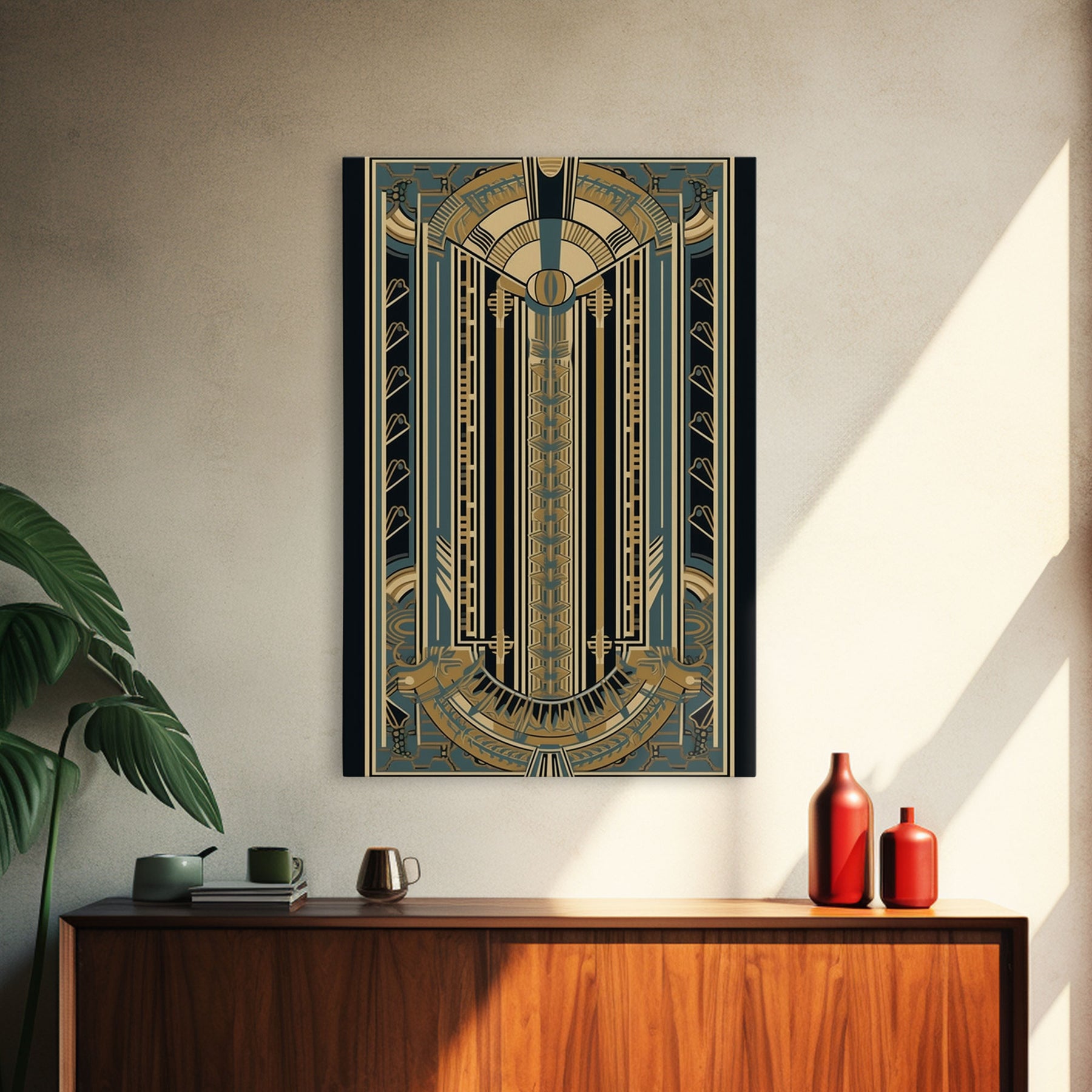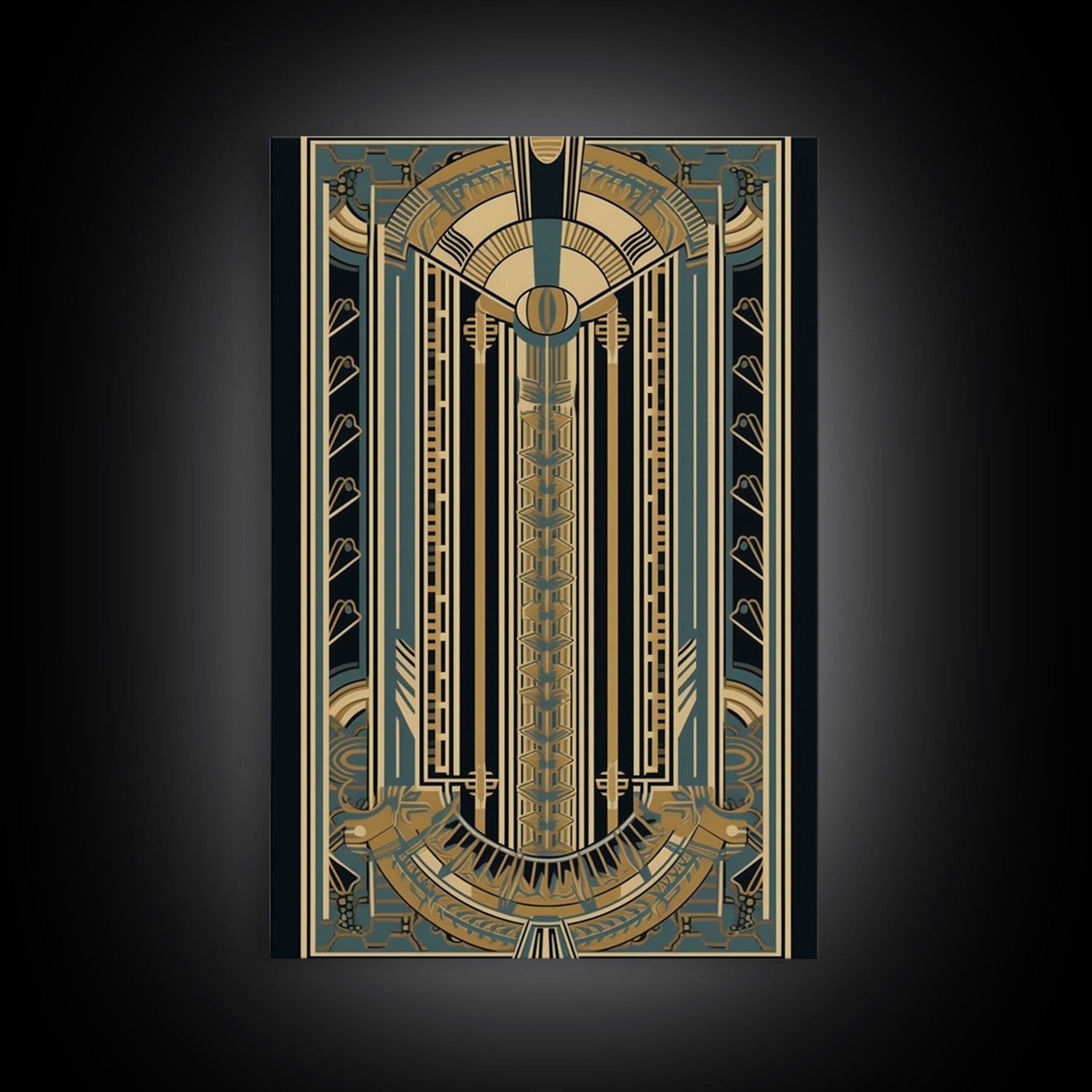Art Deco Pattern Wall art | Framed Canvas Print | Art Deco | Gold & blue art | Wonderful art | Lines art | Geometric art | Living room art