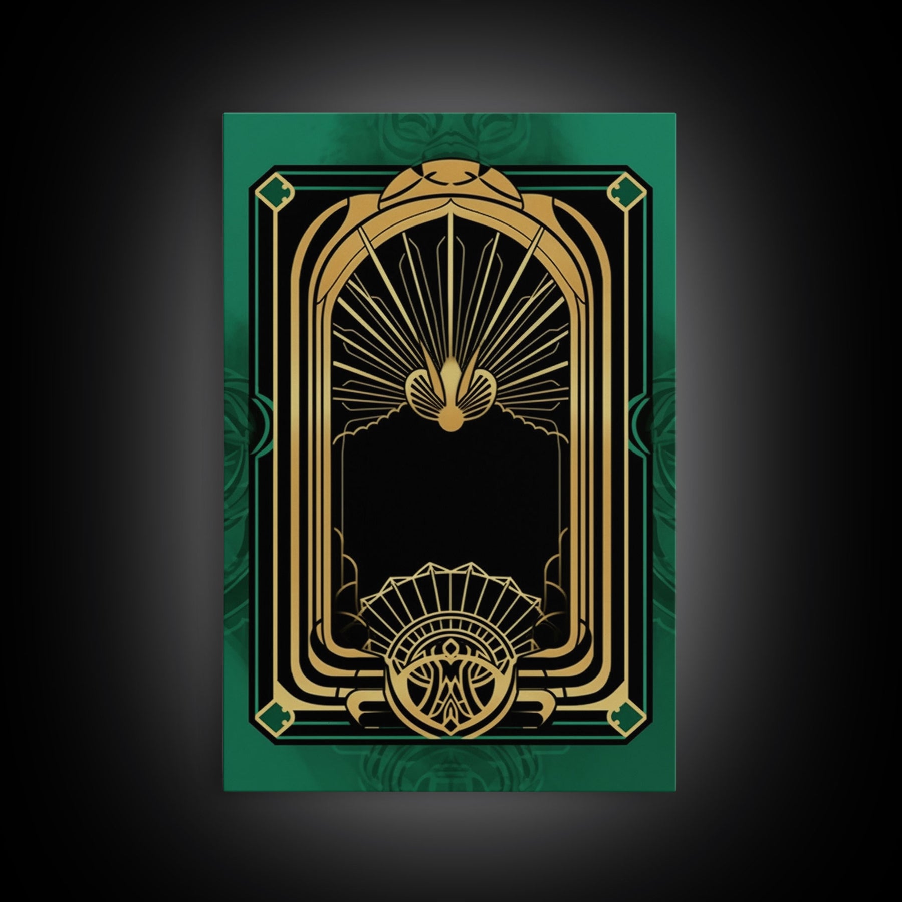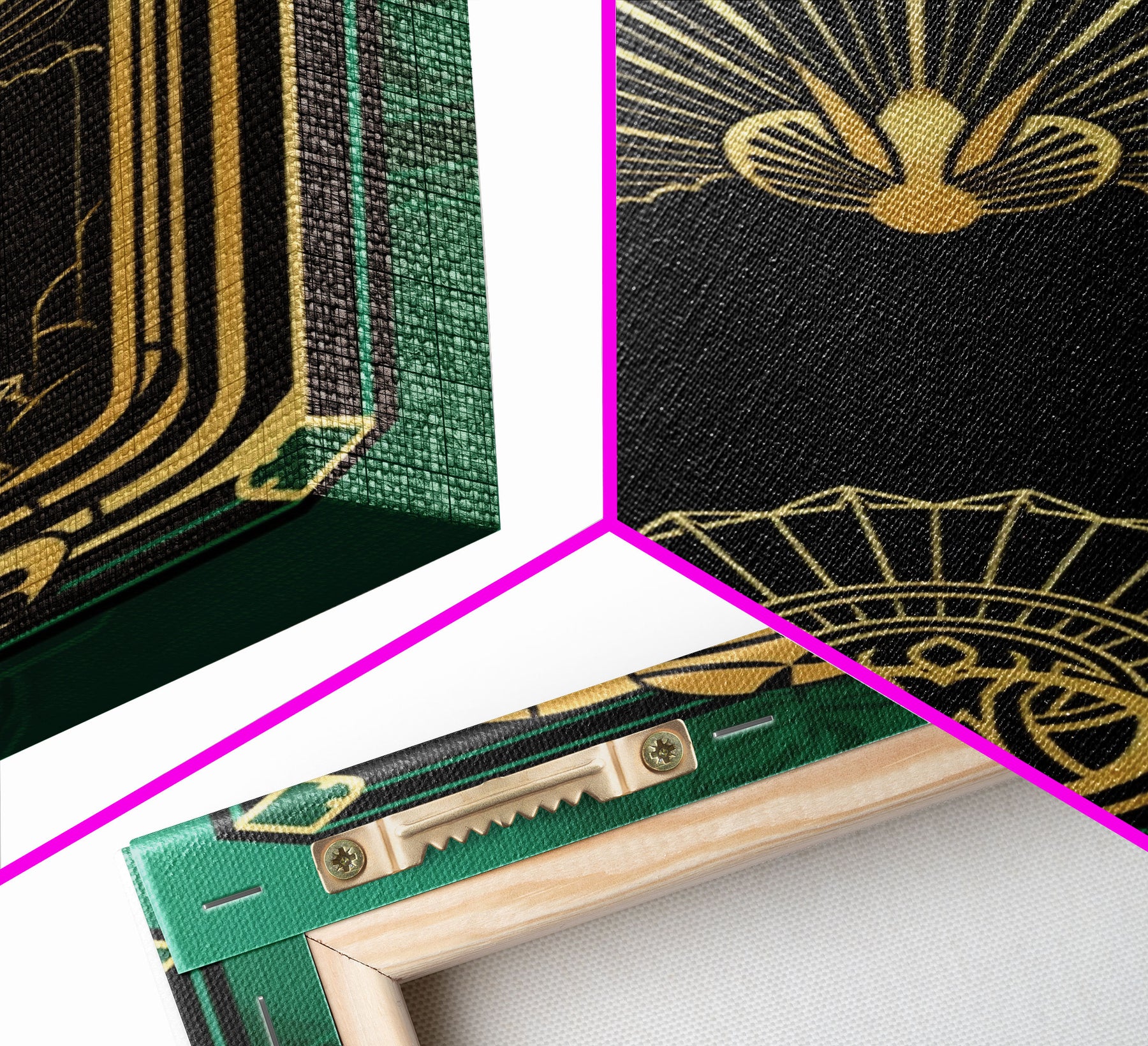 Art Deco Wall art, Framed Canvas Print, Art Deco, Gold & green art, Living room art, Abstract art, Beautiful art, Colorful painting