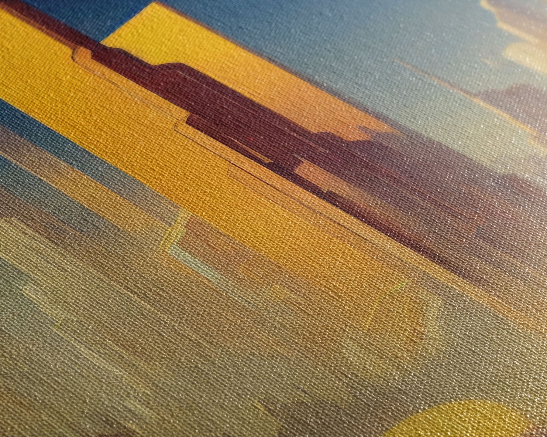 Most of our canvases are made in the USA, with the exception of canvases ordered with the light oak unstained frames, and any large canvases (24x48, 30x60, 16x48 and 20x60) ordered WITH a frame. These are temporarily made in and shipped from Europe, while we try to find a more consistent supplier in the USA.