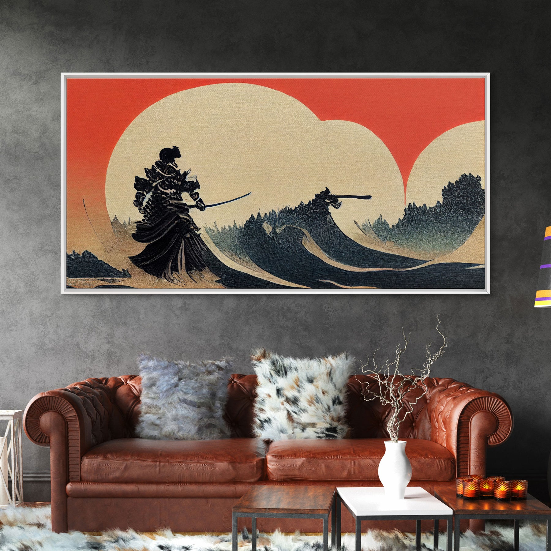 Japanese Samurai Fighting A Tidal Wave, ready to hang canvas print wall art, framed canvas wall art, mancave decor