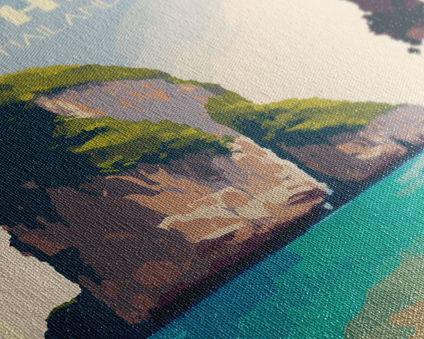 Most of our canvases are made in the USA, with the exception of canvases ordered with the light oak unstained frames, and any large canvases (24x48, 30x60, 16x48 and 20x60) ordered WITH a frame. These are temporarily made in and shipped from Europe, while we try to find a more consistent supplier in the USA.