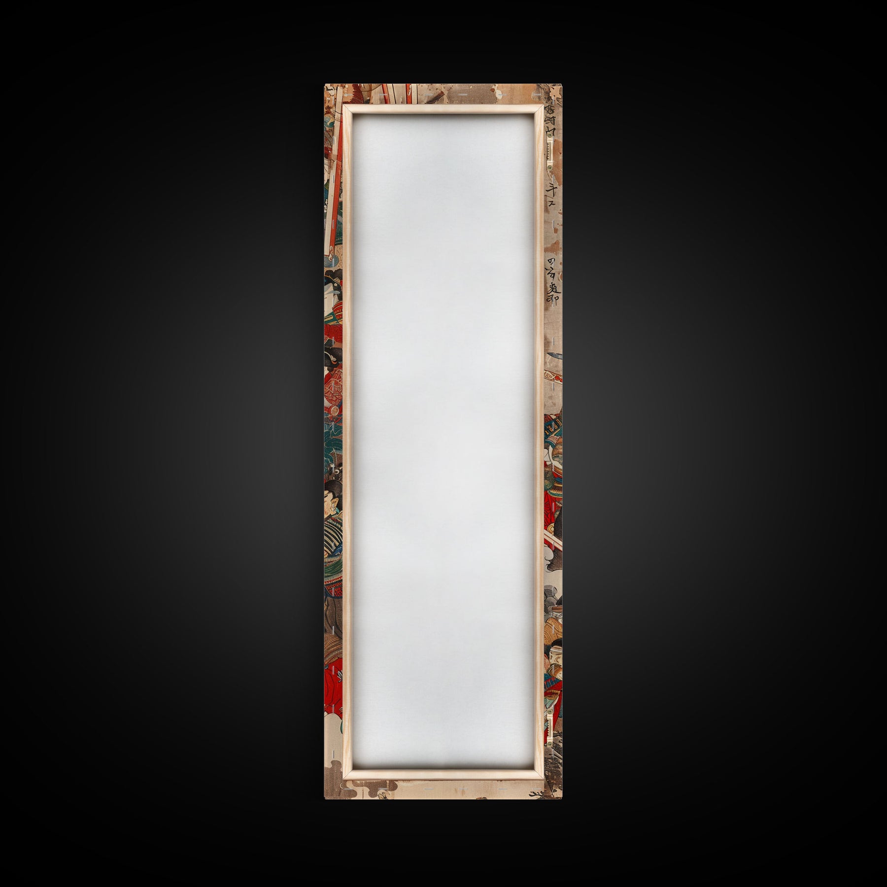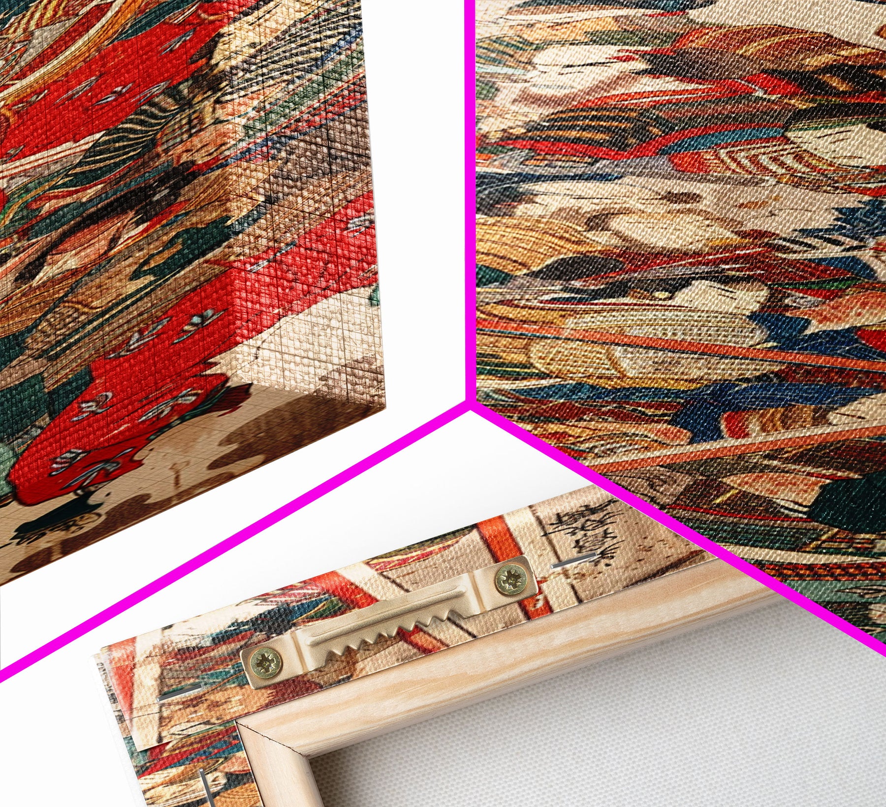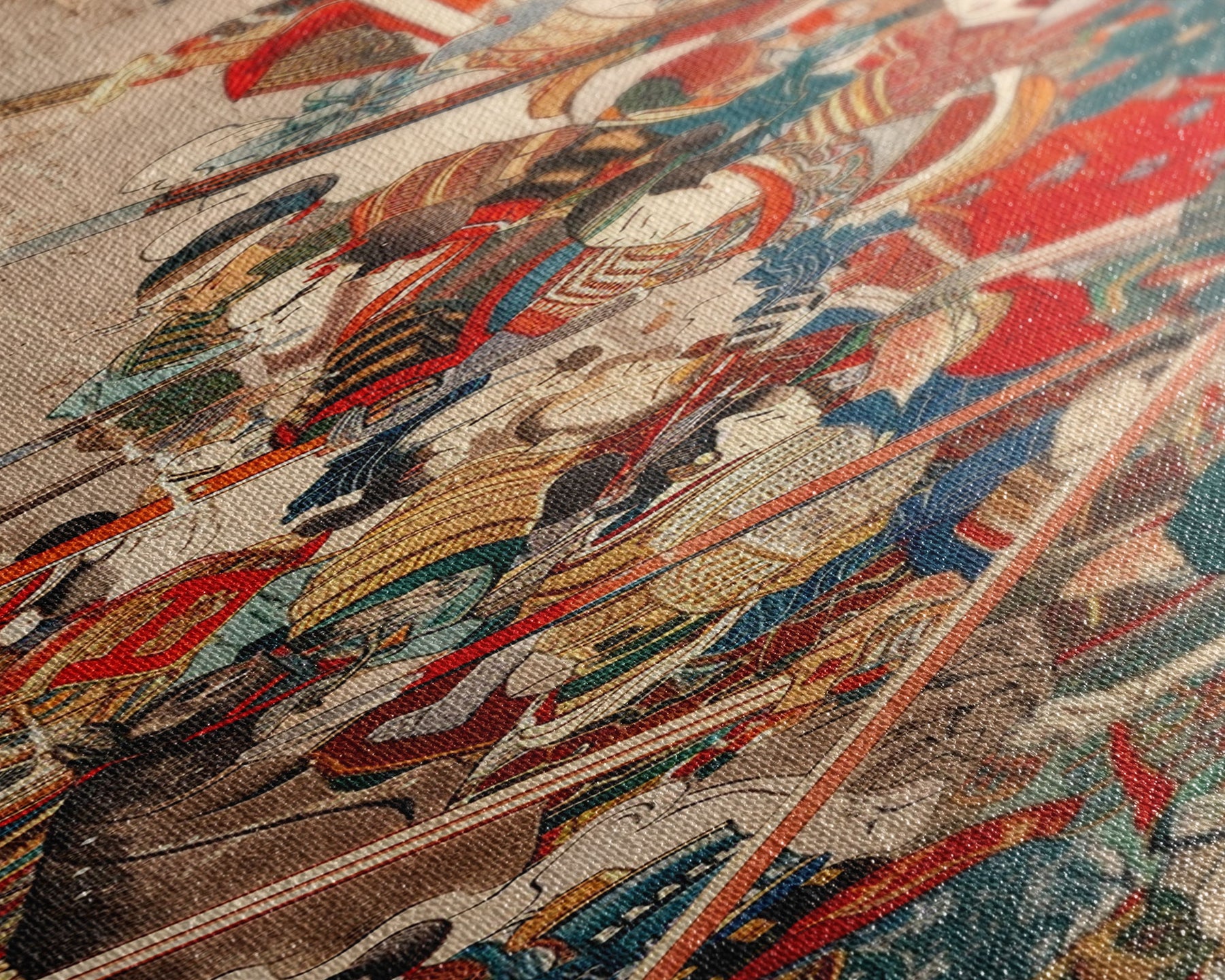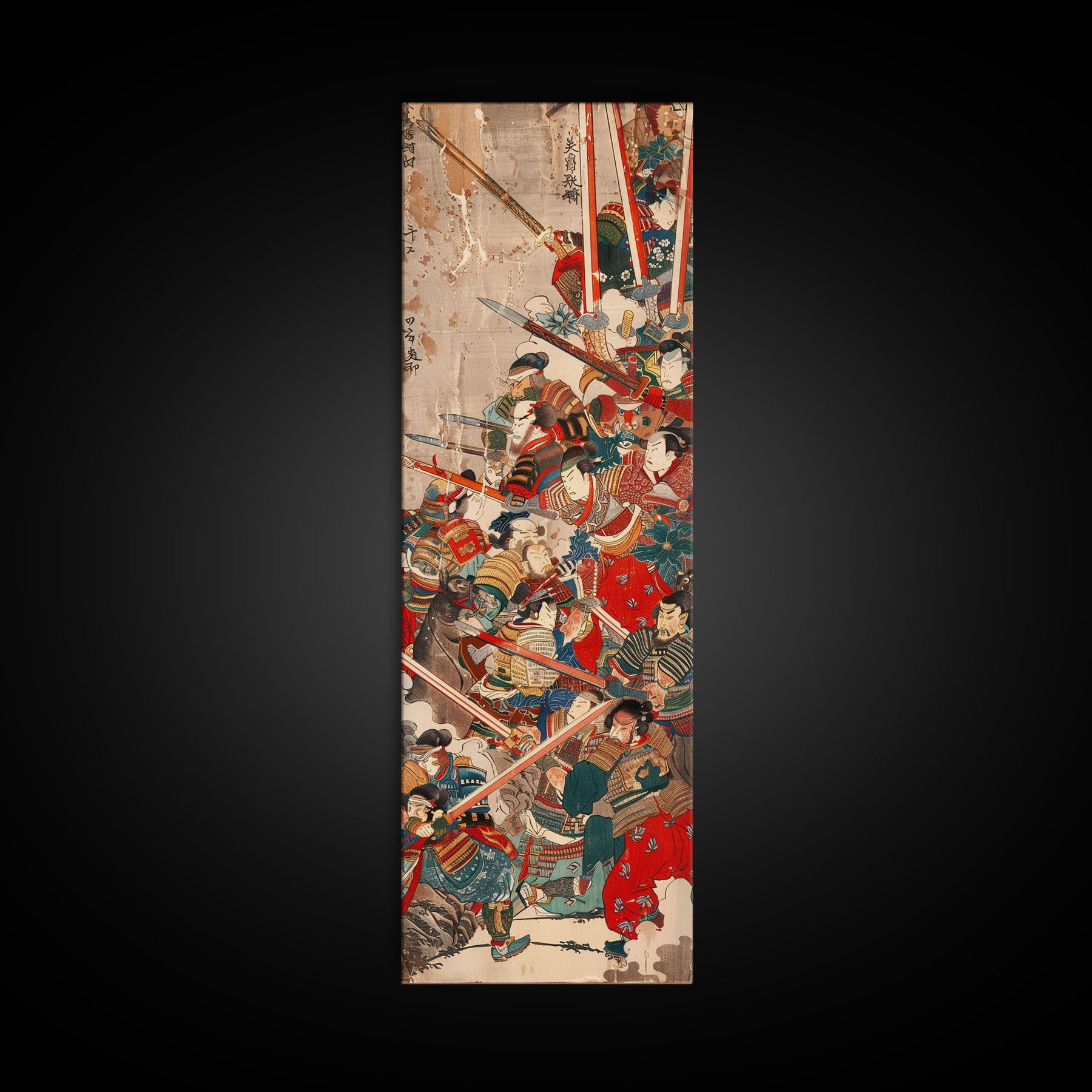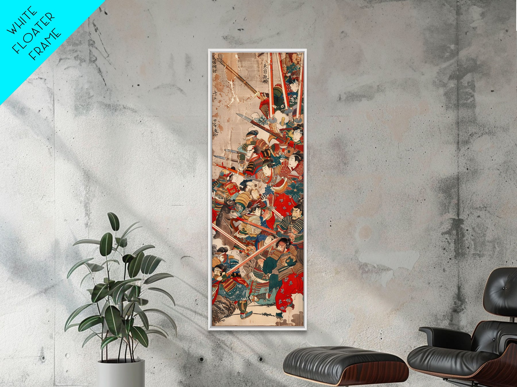 Samurai Warriors in Battle – Traditional Japanese Skinny Art with Historic Details – Framed Canvas Print