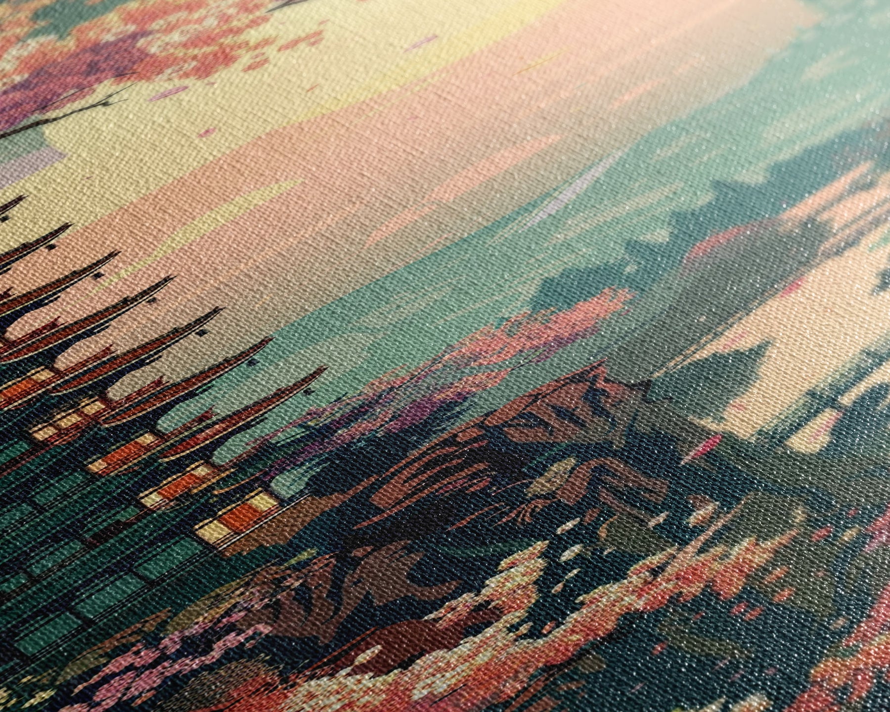 Most of our canvases are made in the USA, with the exception of canvases ordered with the light oak unstained frames, and any large canvases (24x48, 30x60, 16x48 and 20x60) ordered WITH a frame. These are temporarily made in and shipped from Europe, while we try to find a more consistent supplier in the USA.